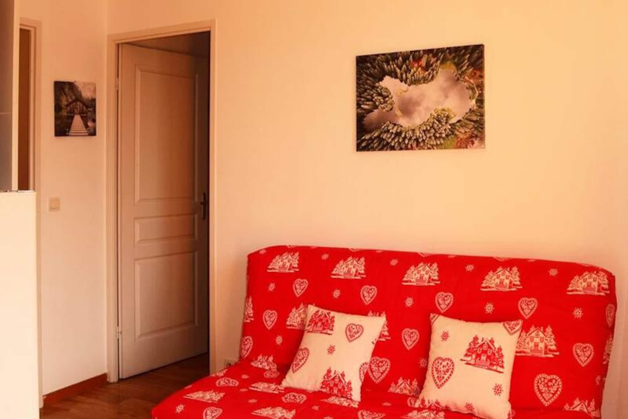 High above the serene slopes of the French Alps, this elegant top-floor apartment offers a perfect blend of luxury and adventure. Imagine waking up to the crisp mountain air and stepping onto your spacious southwest-facing balcony, where panoramic views of the snow-dusted peaks stretch as far as the eye can see. Whether you're seeking a tranquil retreat or an action-packed getaway, this property promises an unforgettable alpine experience. \n\nDesigned to accommodate up to four guests, the apartment boasts a thoughtfully curated layout that combines comfort and style. The cozy living room features a double sofa bed, while the bedroom is furnished with a plush queen-size bed for restful nights. The open-plan kitchen and living area provide a welcoming space to prepare meals and share moments with loved ones. After a day on the slopes, unwind in the heated indoor pool or jacuzzi, accessible directly from the residence. Modern amenities, including a ski locker and ski-in/ski-out access, ensure every detail of your stay is seamless. \n\nLocated just 50 meters from the ski lifts, this property is a gateway to endless winter adventures. In summer, the surrounding trails invite hikers and cyclists to explore the breathtaking landscapes. Nearby villages offer charming restaurants, local markets, and cultural experiences that enrich your stay. \n\nWhether you're here to carve through pristine snow or bask in the alpine sun, this apartment is your ideal base for creating cherished memories in the heart of the French Alps.