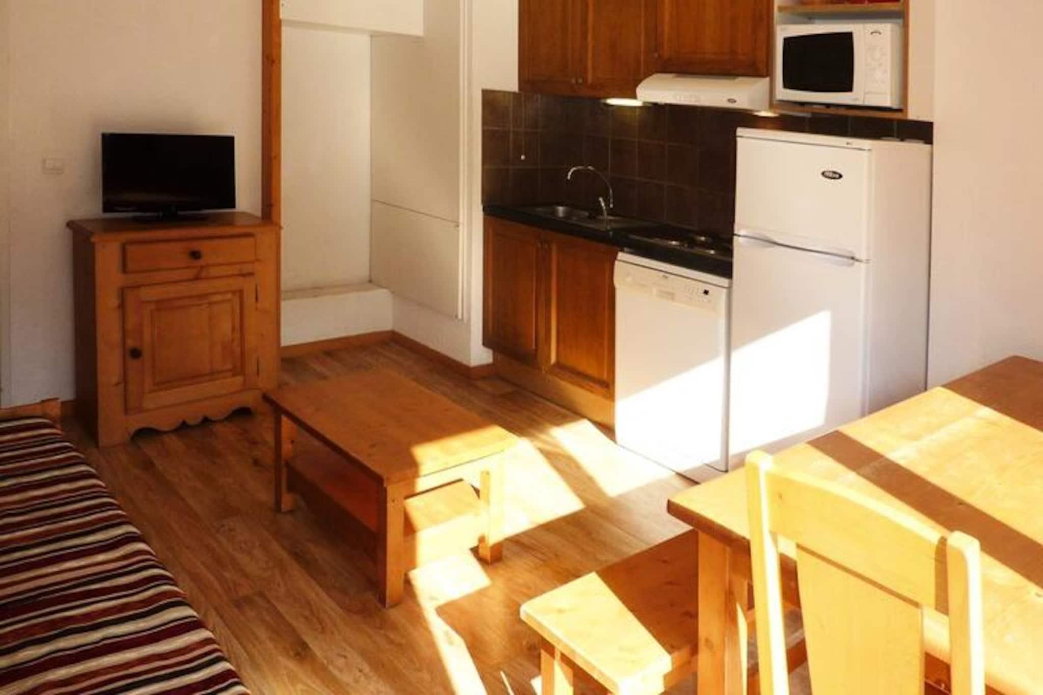 In the heart of the French Alps, where the crisp mountain air meets endless horizons, this spacious 3-room apartment in the prestigious Le Bois Méan residence offers a serene escape for families and groups. Imagine waking up to the golden hues of sunrise on your large east-facing terrace, with the majestic peaks of the Alps as your backdrop. This is a place where comfort and nature blend seamlessly, creating the perfect setting for unforgettable alpine adventures. \n\nDesigned to accommodate up to eight guests, the apartment boasts a thoughtfully arranged layout. The warm and inviting living room features two single pull-out beds, while the fully equipped kitchenette, complete with a dishwasher and microwave, ensures effortless meal preparation. A cozy sleeping alcove with bunk beds, a queen-size bed in the first bedroom, and two single beds in the second bedroom provide ample sleeping options. Two bathrooms, one with a shower and the other with a bathtub, add to the convenience, making it ideal for larger groups. \n\nGuests of Le Bois Méan enjoy exclusive access to the residence's aquatic area, which includes a heated indoor pool and a relaxing jacuzzi – the perfect way to unwind after a day of skiing or hiking. The surrounding area offers a wealth of activities, from exploring scenic trails to discovering charming alpine villages. Whether you're here for the thrill of the slopes or the tranquility of the mountains, this apartment is your gateway to the best of the Alps. \n\nWith its prime location, modern amenities, and breathtaking views, this apartment invites you to create lasting memories in one of France's most picturesque regions. Whether winter or summer, the mountains are calling – and this is your perfect home away from home.