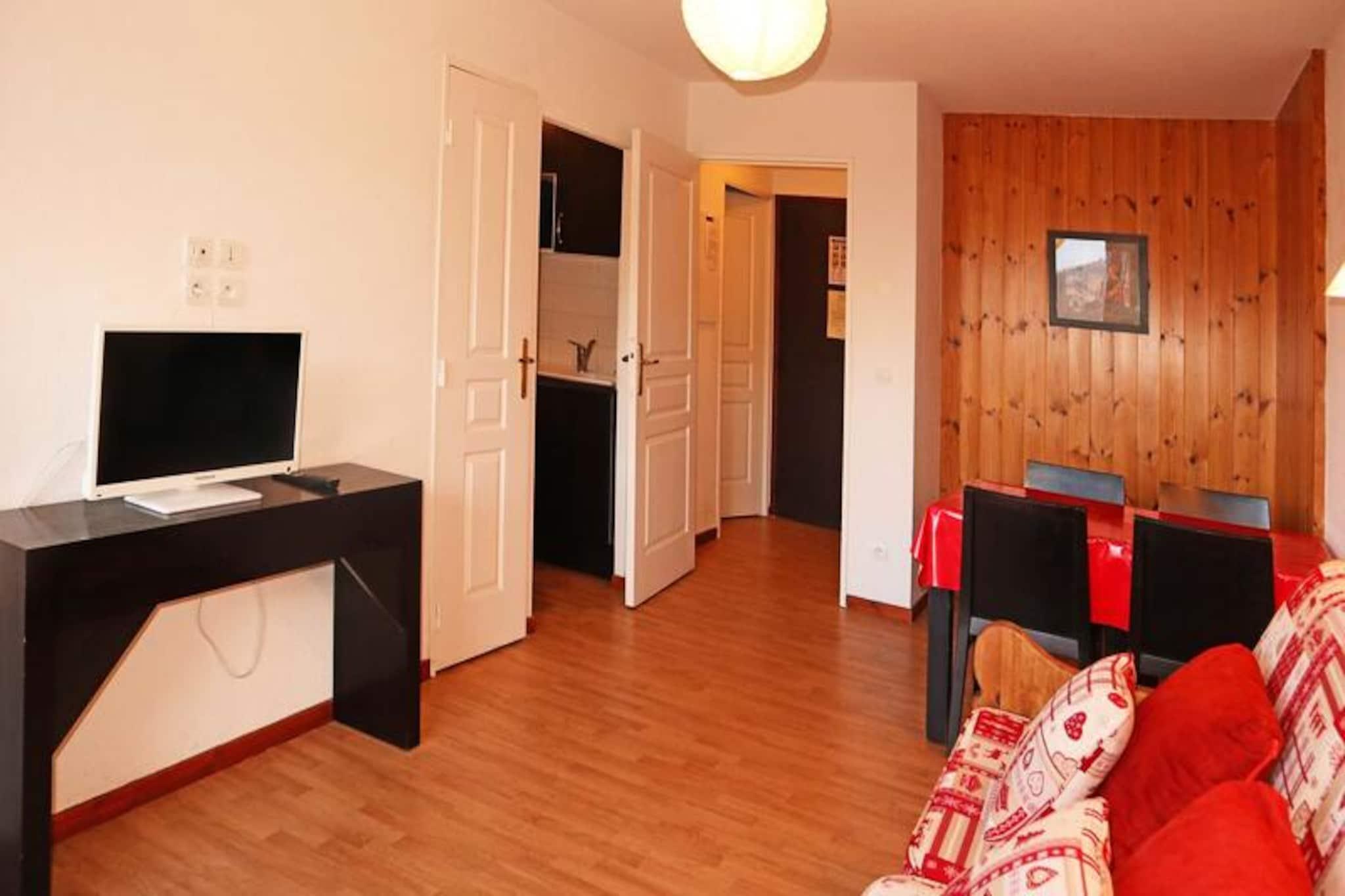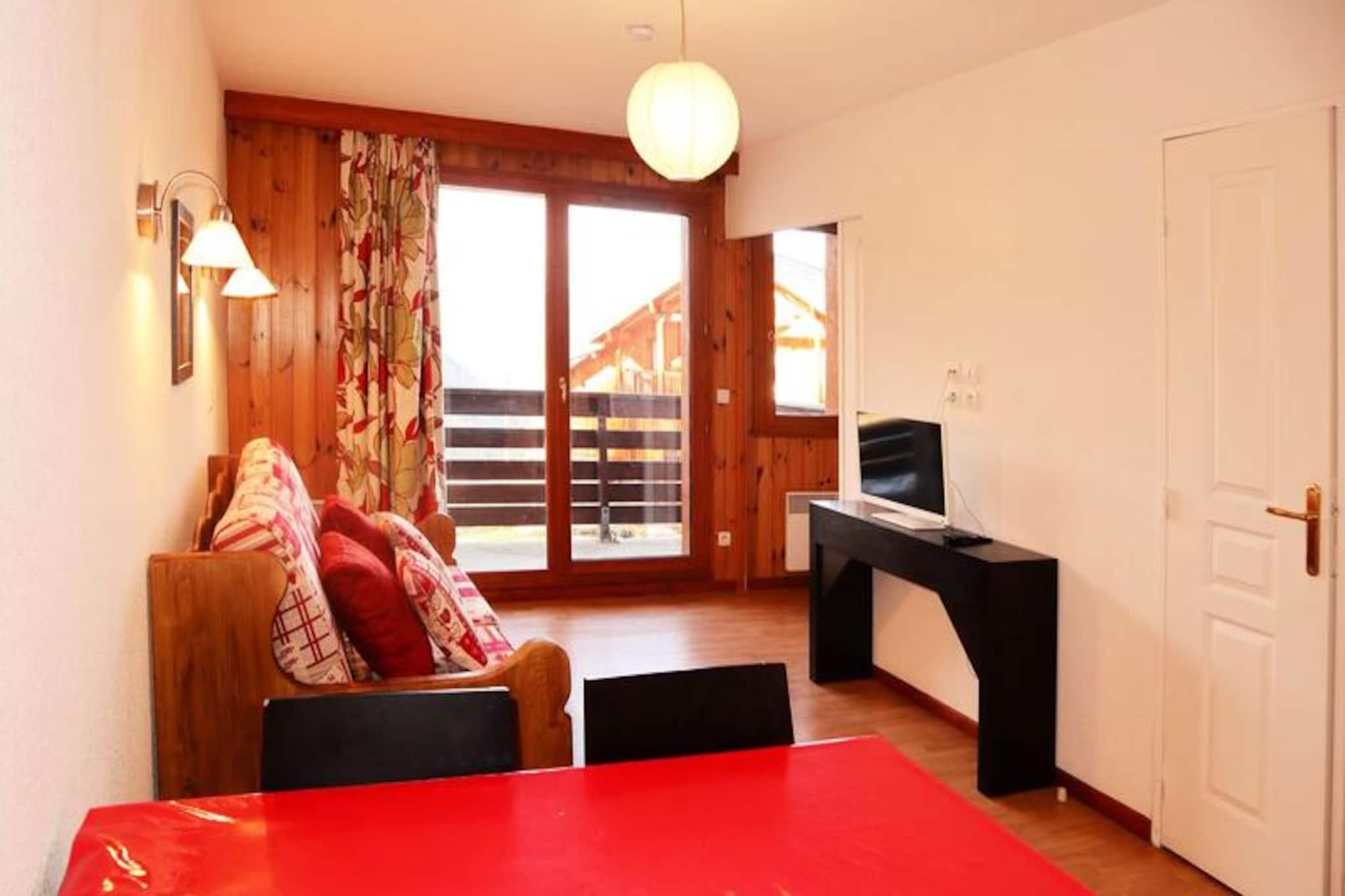 High above the serene Embrun Valley, this elegant apartment in the heart of Les Orres 1800 offers a perfect alpine retreat for those seeking both adventure and relaxation. With its prime location at the foot of the slopes, you can step out of your door and into a world of snowy excitement during winter or lush mountain trails in summer. The breathtaking views from the large balcony invite you to soak in the beauty of the surrounding peaks and valleys, creating a tranquil escape from everyday life. Designed for comfort and style, the apartment accommodates up to four guests, featuring a cozy living room with a double sofa bed and a bedroom with a luxurious queen-size bed. The open-plan kitchen is fully equipped, making it easy to prepare meals after a day of exploration. Modern amenities such as free Wi-Fi, a spacious bathroom, and a separate WC ensure a convenient and pleasant stay. The residence itself elevates your experience with exclusive access to a heated swimming pool, sauna, and hammam, providing the perfect way to unwind after a day on the slopes or trails. Les Orres 1800 is not just about skiing—it’s a vibrant resort with charming restaurants, shops, and activities for all ages. In summer, discover the region’s hiking paths, mountain biking routes, and the sparkling Serre-Ponçon Lake, ideal for water sports and picnics. The nearby Embrun town adds a touch of history and culture with its quaint streets and local markets. Whether you’re here for the thrill of winter sports or the serenity of alpine summers, this property offers an unforgettable stay in the heart of the French Alps.