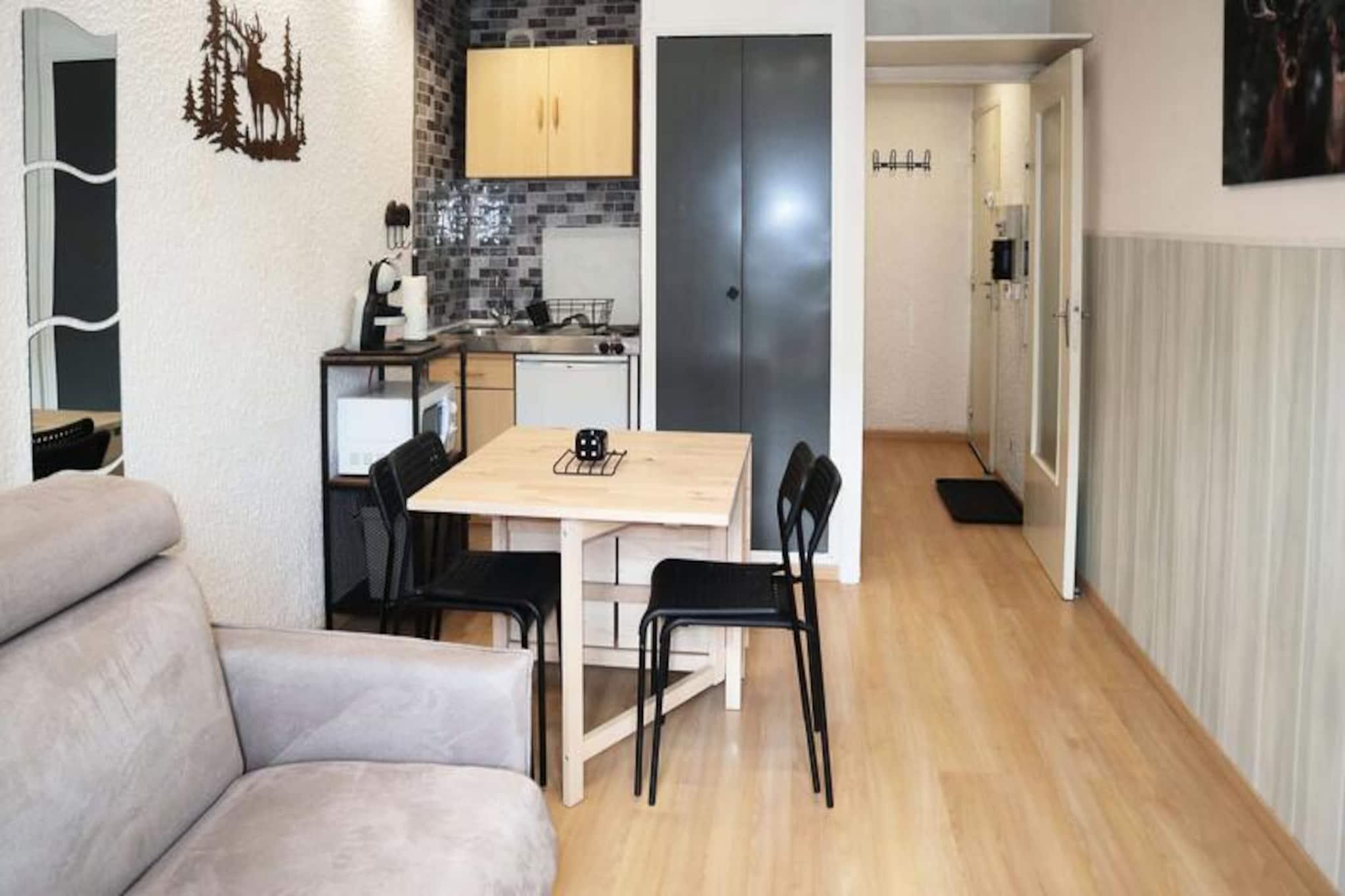 High above the bustling heart of the resort, this charming studio apartment offers a cozy retreat for two, with breathtaking views of the valley and the lively ice rink below. Perfectly situated on the 7th floor, this fully renovated space combines modern comfort with unbeatable convenience, making it an ideal choice for couples seeking a memorable alpine getaway. Whether you're here to ski, explore, or simply relax, this studio places you at the center of it all. Step inside to discover a thoughtfully designed living area featuring a comfortable sofa bed that easily converts into a 160cm double bed. The open-plan kitchenette is fully equipped, allowing you to prepare meals with ease after a day on the slopes. The bathroom, complete with WC, adds to the apartment's practicality, while the warm laminate flooring creates a welcoming ambiance throughout. The south-facing balcony is the perfect spot to unwind, offering uninterrupted views of the surrounding valley and the vibrant activities below. With direct access to the slopes and shops, you'll find everything you need just steps away. Whether you're grabbing a quick coffee before hitting the pistes or exploring the resort's charming boutiques and restaurants, convenience is at your fingertips. In the evenings, enjoy the lively atmosphere of the ice rink or simply relax on your balcony, soaking in the serene alpine scenery. This delightful studio is more than just a place to stay—it's your gateway to an unforgettable mountain escape, where comfort, convenience, and stunning views come together to create the perfect holiday experience.
