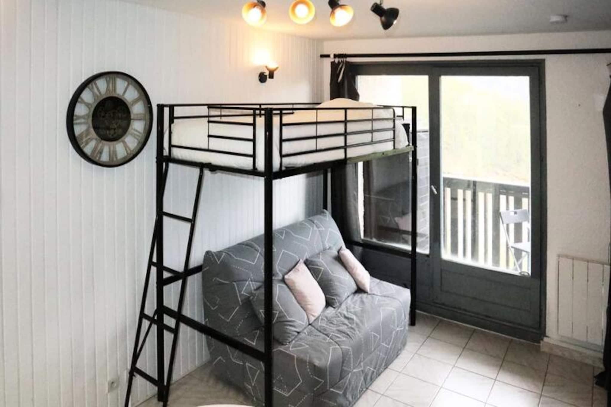 Perched high on the 6th floor of a centrally located residence, this beautifully renovated studio apartment offers an idyllic retreat for two in the heart of the French Alps. With its prime position overlooking the valley and the charming ice rink, the south-facing balcony invites you to soak in the alpine sun and savor the breathtaking views. Whether you're here for a romantic getaway or a peaceful escape, this cozy haven promises a memorable stay. Step inside to discover a thoughtfully designed living space featuring a comfortable double sofa bed and a unique single mezzanine bed, perfect for a restful night's sleep. The open-plan kitchenette is equipped with all the essentials, making it easy to prepare your favorite meals after a day of adventure. The modern shower room with WC ensures convenience and comfort, while the studio’s warm ambiance creates a welcoming atmosphere. The location is truly unbeatable. With direct access to the slopes from the 8th floor of the residence, you can be on the pristine runs in moments, ready to carve through the snow. After a day of skiing, the central square offers a vibrant selection of shops, restaurants, and après-ski activities right at your doorstep. Whether you're exploring the local boutiques or enjoying a hot drink by the ice rink, there's something for everyone. This studio is the perfect choice for travelers seeking a seamless blend of comfort, convenience, and stunning alpine scenery. Create unforgettable memories in this charming retreat, where the mountains are your playground and the beauty of the French Alps is yours to explore.