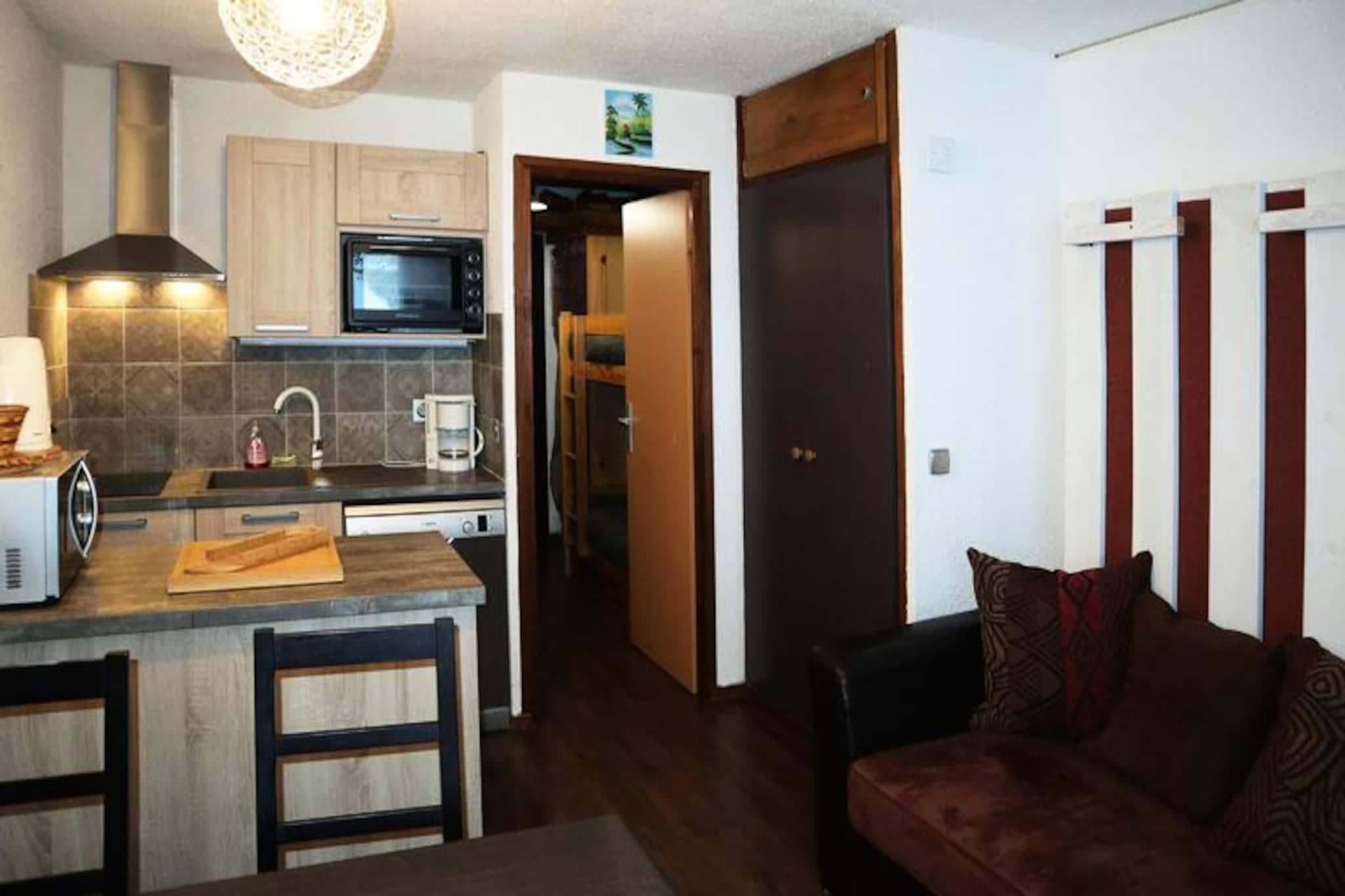 Amidst the vibrant energy of the French Alps, this charming studio apartment offers a cozy retreat with breathtaking views of the slopes. Perfectly situated in the heart of the resort, it invites you to immerse yourself in the alpine lifestyle, with ski lifts and shops conveniently located at the foot of the building. Whether you’re seeking thrilling days on the pistes or tranquil evenings soaking in the mountain atmosphere, this residence is your gateway to unforgettable moments. \n\nDesigned for up to four guests, the studio is both bright and functional, featuring a comfortable living room with a double sofa bed, a well-equipped kitchenette complete with a refrigerator and dishwasher, and a sleeping alcove with two single bunk beds. The bathroom and separate toilet ensure privacy and convenience, while the balcony provides an idyllic spot to admire the snowy slopes and enjoy the crisp mountain air. A ski locker is included, making it easy to store your equipment after a day of adventure. \n\nThe location is unbeatable, with ski lifts just steps away for effortless access to the slopes. Nearby, you’ll find a variety of shops, restaurants, and après-ski options to enhance your stay. In summer, the area transforms into a haven for hikers and nature enthusiasts, offering trails that wind through stunning alpine landscapes. Explore the charm of local villages, savor regional specialties, and discover the beauty of the surrounding mountains. \n\nWhether you’re visiting for winter sports or summer escapes, this studio apartment combines comfort, convenience, and the magic of the Alps, promising a holiday filled with cherished memories.