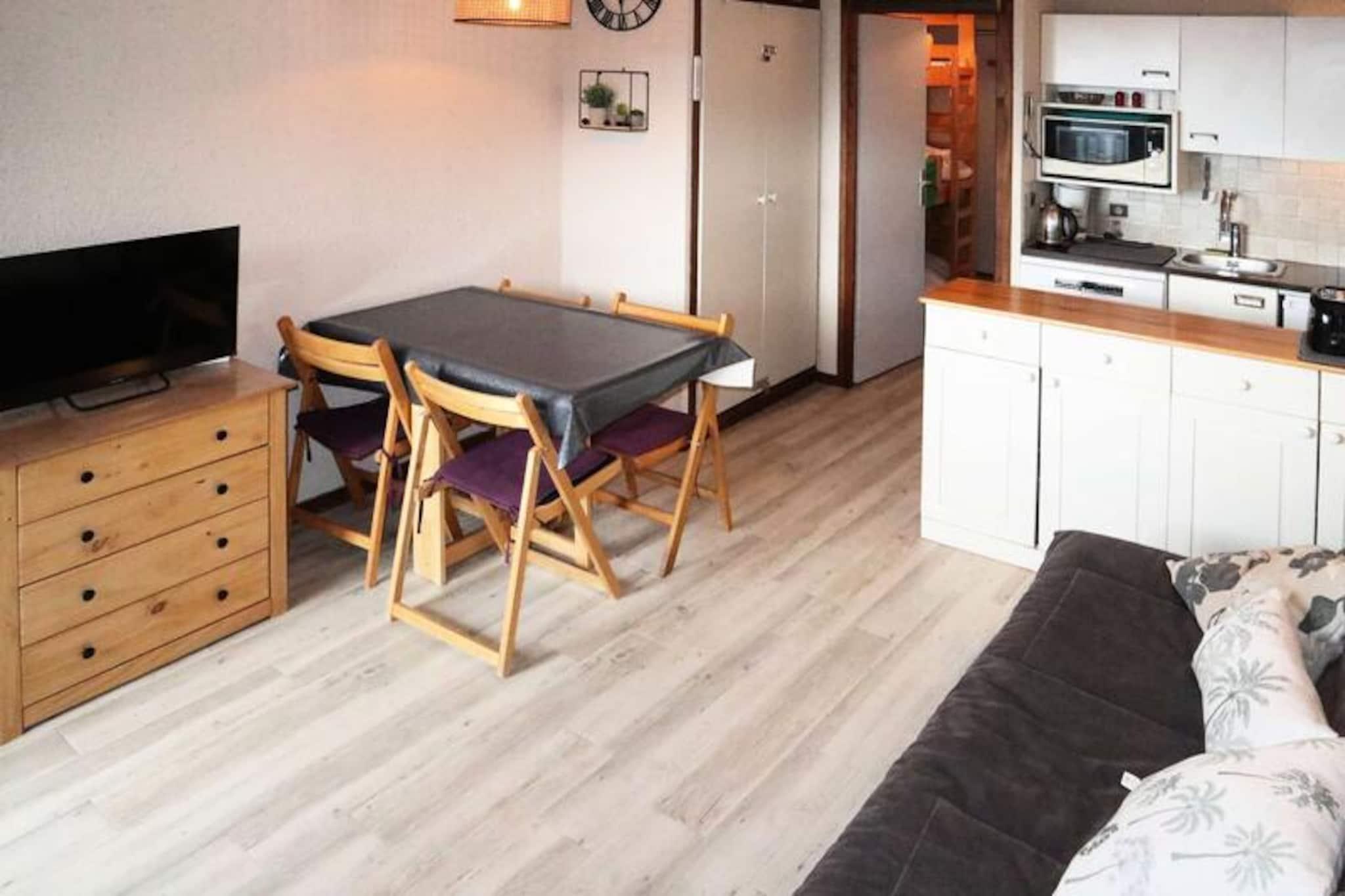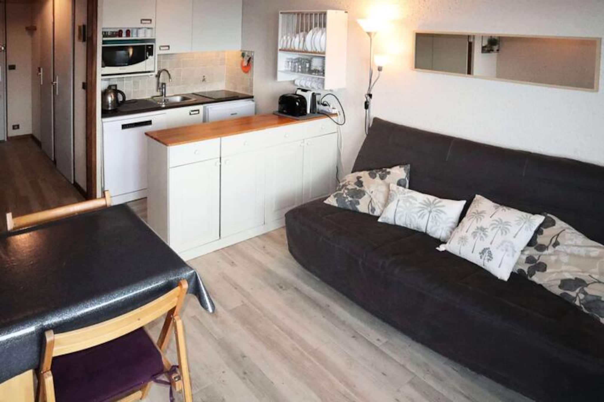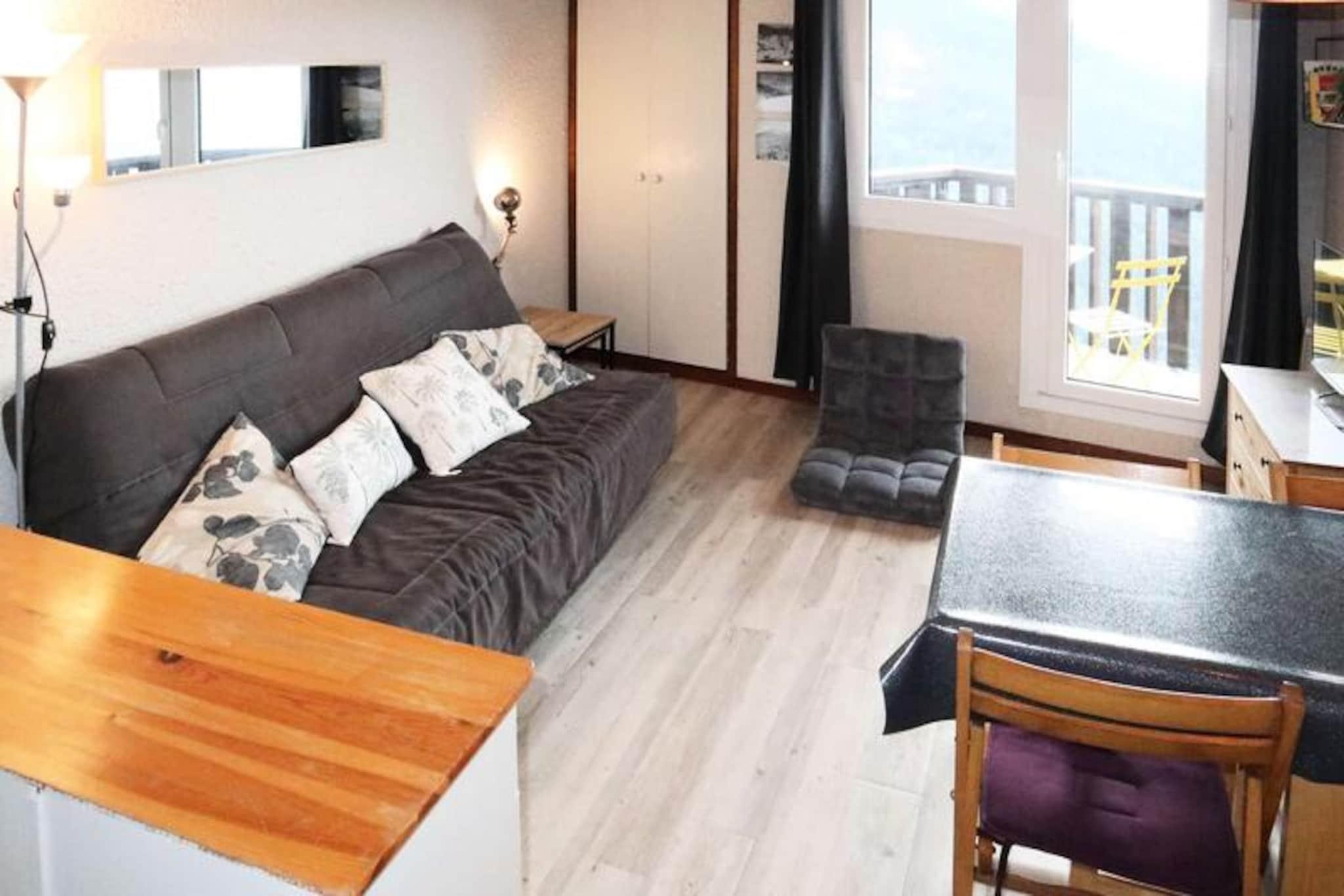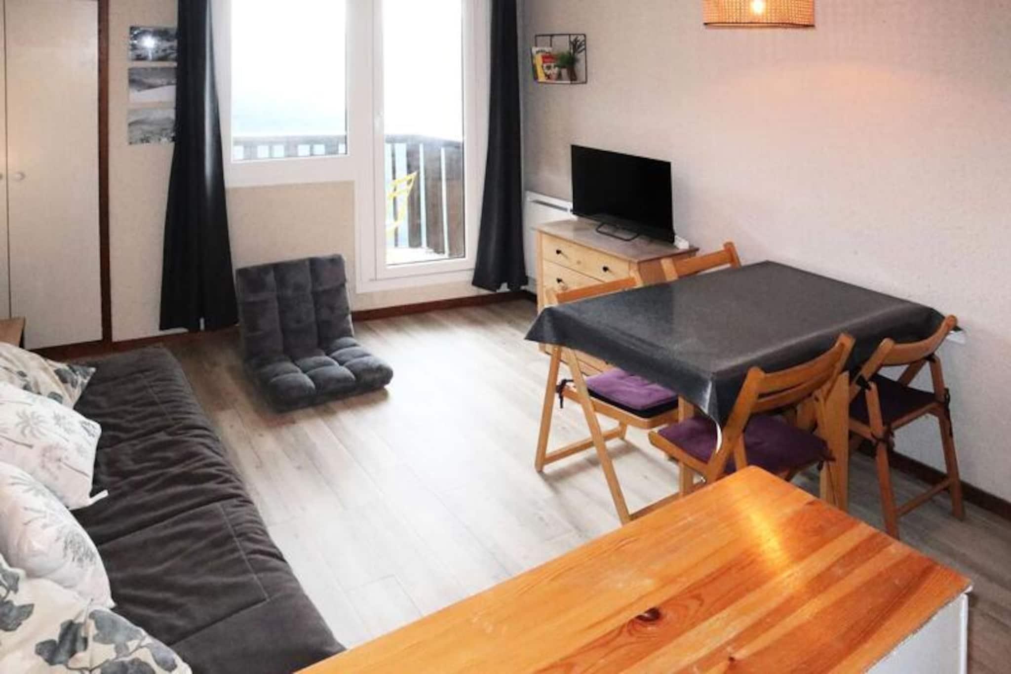 High above the breathtaking valley, this cozy studio apartment offers a serene retreat in the heart of the resort. Imagine stepping onto your west-facing balcony, where sweeping views of the alpine landscape stretch as far as the eye can see. Whether you're here for winter's snowy adventures or summer's sunlit trails, this charming space invites you to immerse yourself in the beauty of the French Alps. With ski-in/ski-out access, your days begin effortlessly as you glide onto the slopes or explore the vibrant resort life just steps away. \n\nDesigned to accommodate up to four guests, the apartment features a thoughtfully arranged sleeping alcove with two single bunk beds and a living room with a comfortable double sofa bed. The kitchenette, open to the living area, is equipped for preparing meals to enjoy after a day of exploration. A separate bathroom and toilet ensure convenience, while the warm ambiance of the space makes it a welcoming haven for families or couples seeking a memorable alpine escape. \n\nThe residence is ideally located on the 9th floor, granting direct access to shops, restaurants, and activities that bring the resort to life. Whether you're seeking après-ski delights, local specialties, or outdoor adventures, everything you need is within easy reach. In summer, the valley transforms into a haven for hikers and cyclists, with trails leading to stunning vistas and hidden gems. \n\nChoose this studio for its unbeatable location, mesmerizing views, and the perfect blend of comfort and convenience. Here, every moment feels like a celebration of alpine living, creating memories that will linger long after your stay.