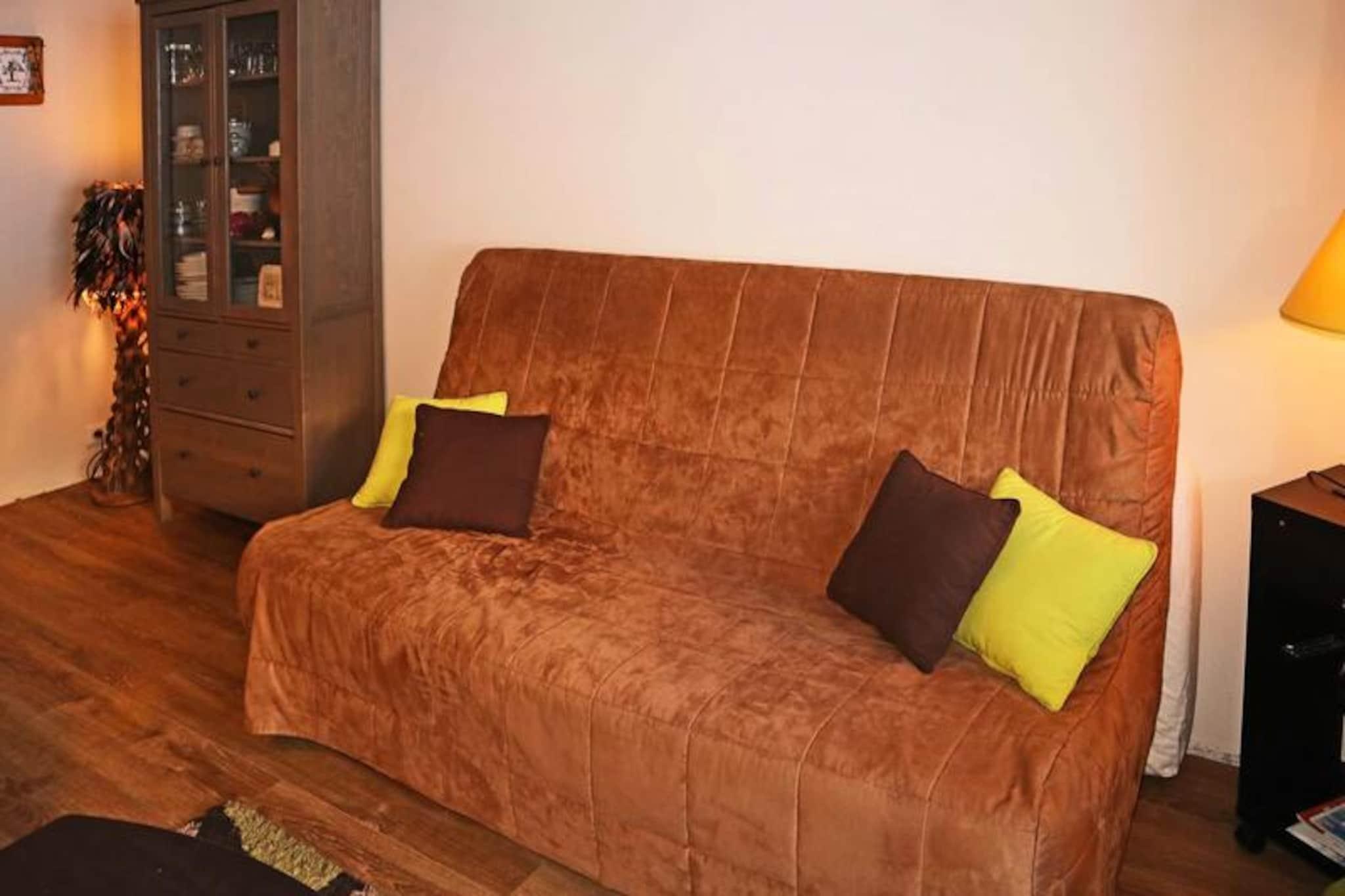 High above the lively streets of the resort, this beautifully renovated studio apartment offers a cozy retreat for up to four guests. Located on the 10th floor of the Résidence Le Cairn, it combines modern comfort with unbeatable convenience, placing you right in the heart of the action with direct access to the slopes. Imagine stepping out onto your south-facing balcony, where the sun bathes the resort and ski runs in golden light, creating the perfect backdrop for your alpine getaway. Whether you're here for thrilling winter sports or serene summer hikes, this apartment ensures you're always close to the adventure. \n\nInside, the studio is thoughtfully designed to maximize space and comfort. A sleeping alcove with a plush double bed provides a peaceful corner to rest, while the living room features a double sofa bed, ideal for relaxing after a day of exploring. The open-plan kitchen is fully equipped, including a dishwasher, making it easy to prepare meals and enjoy cozy evenings in. A modern bathroom and separate toilet add to the convenience, ensuring a smooth and enjoyable stay. \n\nStep outside, and you'll find yourself surrounded by everything you need. From ski schools and rental shops to charming restaurants and après-ski spots, the resort buzzes with energy and excitement. In summer, the area transforms into a haven for hikers and cyclists, with trails leading to breathtaking vistas and hidden alpine treasures. \n\nWhether you're seeking adrenaline-filled days on the slopes or tranquil moments soaking in the mountain views, this studio apartment is the perfect base for your unforgettable alpine adventure.