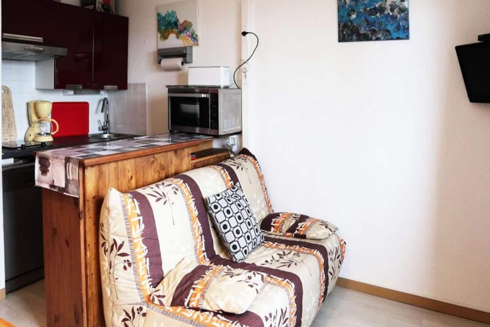 In the heart of the vibrant resort, this charming studio apartment offers a cozy retreat for up to four guests. Located in the Résidence Le Cairn, it provides the perfect base for both winter and summer adventures. With its prime location on a lower floor with elevator access, you’ll enjoy the convenience of being right in the resort center and just steps away from the slopes, making it an ideal choice for ski enthusiasts and mountain lovers alike. The studio is thoughtfully designed to maximize comfort and functionality. It features a sleeping alcove with two single bunk beds, a welcoming living area with a double sofa bed, and a well-equipped kitchenette that opens into the living space, making it easy to prepare meals after a day of exploring. The shower room with WC and parquet flooring adds a touch of warmth and practicality. Step out onto the west-facing balcony to soak in the stunning views of the valley, a perfect spot to unwind and take in the serene alpine atmosphere. Beyond the apartment, the resort offers a wealth of activities and amenities. Whether you’re hitting the slopes in winter or exploring hiking trails in summer, everything you need is within easy reach. The lively resort center is brimming with shops, restaurants, and après-ski options, ensuring your stay is as enjoyable as it is convenient. This delightful studio combines comfort, location, and breathtaking views, making it an excellent choice for couples, small families, or friends seeking an unforgettable alpine getaway.