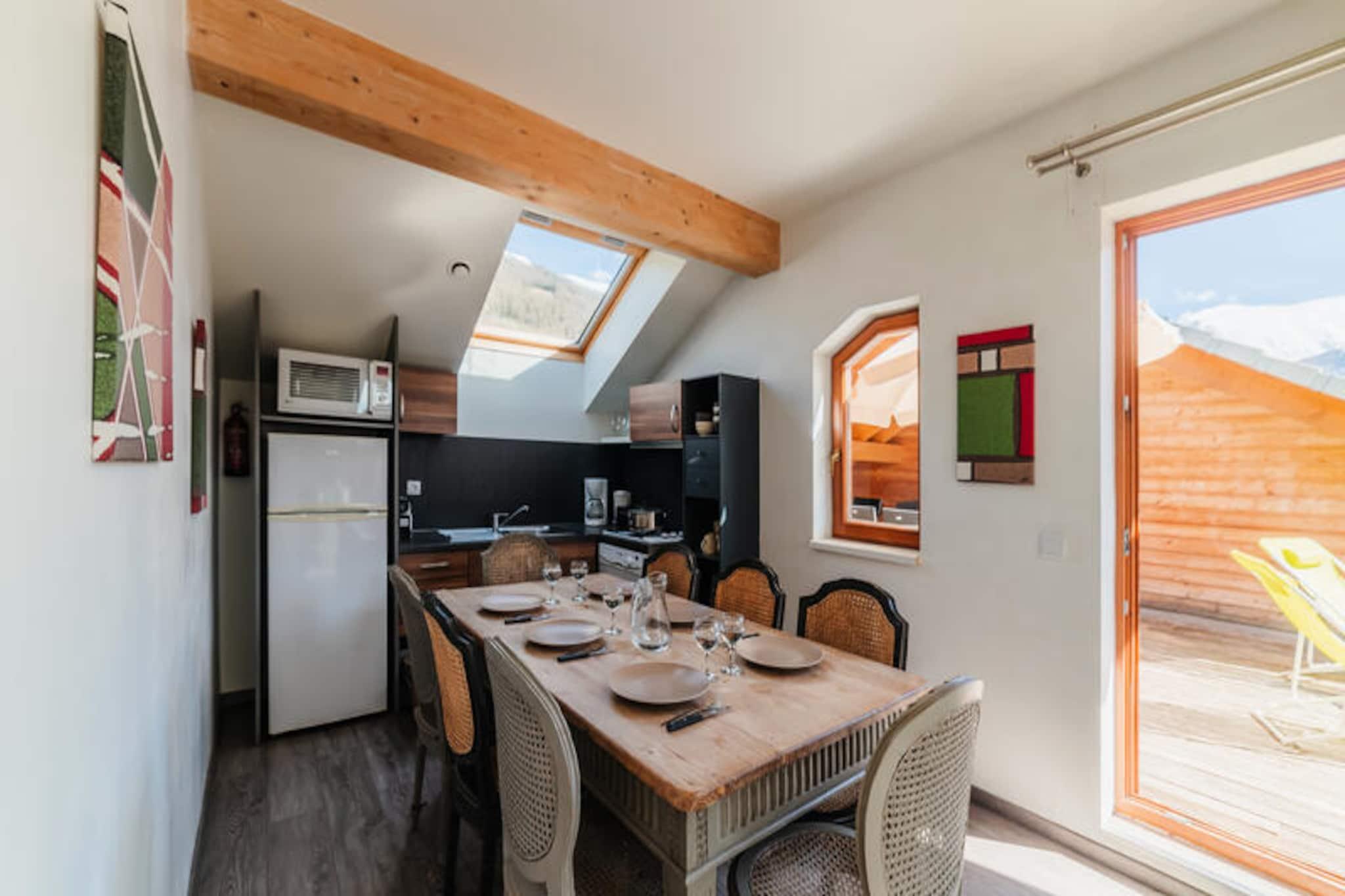Perched above the sparkling waters of Lake Serre-Ponçon, Résidence Les Logis d’Orres*** in the heart of the Hautes-Alpes offers a sun-soaked retreat surrounded by breathtaking mountain vistas. Here, the fresh alpine air and serene natural beauty create the perfect setting for a rejuvenating holiday, whether you’re seeking adventure or relaxation. The residence’s warm, authentic charm welcomes you to a collection of apartments, studios, and individual chalets, each designed to provide comfort and tranquility. The property boasts a range of amenities to enhance your stay. Dive into the heated outdoor swimming pool or unwind in the Nordic bath with space for six, complemented by a soothing sauna. Families and groups will love the on-site entertainment during school holidays, as well as the games room equipped with a ping-pong table and board games. Culinary delights await at the “Le Comptoir des Chalets” restaurant and bar, offering themed meals, set menus, and takeaway options. For added convenience, a bread delivery service ensures fresh pastries every morning. Adventure is just steps away with a footbridge providing direct access to ski lifts, only 200 meters from the residence. During peak snow periods, enjoy ski-in/ski-out access for seamless alpine exploration. In summer, the area transforms into a haven for hiking, cycling, and water sports on the lake. The spacious accommodations, ranging from 70 to 75 m², feature fully equipped kitchens, cozy living areas, and private terraces or garden levels, ensuring a home-away-from-home experience. Whether you’re soaking in the pool, savoring a raclette dinner, or exploring the stunning Hautes-Alpes, Résidence Les Logis d’Orres*** promises an unforgettable escape where every moment is steeped in natural beauty and comfort.