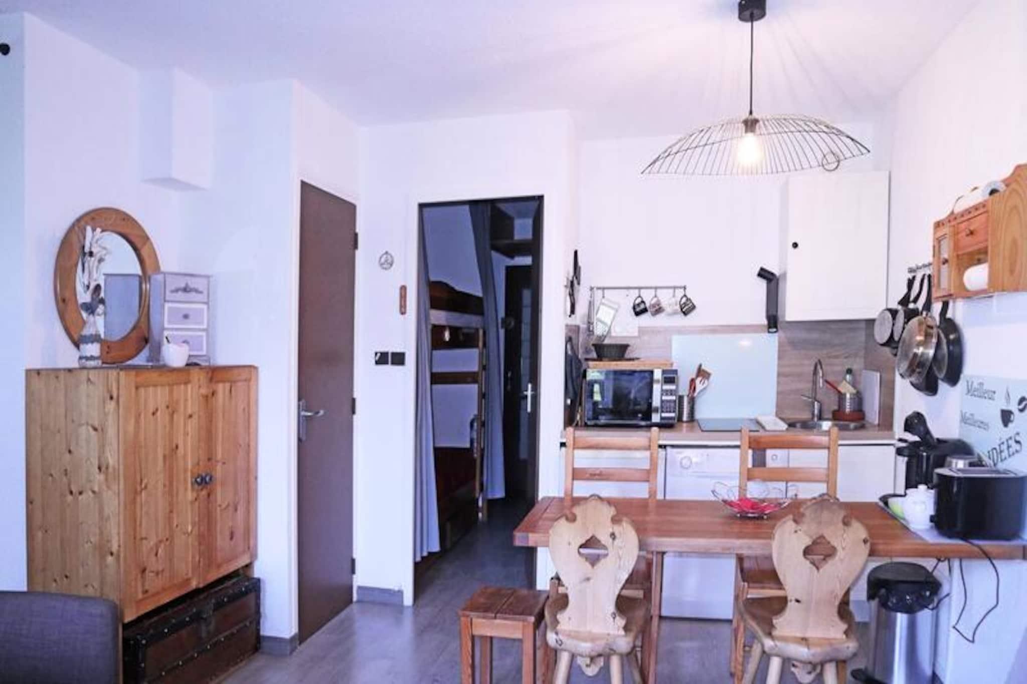 High above the serene alpine landscapes of the French Alps, this charming studio apartment offers a perfect retreat for families and small groups seeking both adventure and tranquility. Located in a peaceful neighborhood with true ski-in/ski-out access, this property ensures you can step directly onto the slopes and immerse yourself in the pristine beauty of the mountains. Just a one-minute walk from local shops, it combines convenience with the allure of alpine seclusion. From your south-west facing balcony, enjoy breathtaking views of the surrounding peaks as the sun sets over the horizon. Thoughtfully renovated and designed for comfort, the studio accommodates up to six guests. The layout includes an entrance hall with two single bunk beds, a cozy living room featuring a double sofa bed, and a sleeping alcove with a double bed for restful nights. The open-plan kitchen and living area invite you to prepare hearty meals and relax after a day of skiing or exploring. A separate bathroom and toilet provide added convenience, while the 7th-floor location, accessible by elevator, ensures stunning vistas and a sense of privacy. The property’s location is ideal for those who want to experience the best of the French Alps. With ski slopes at your doorstep and local shops just moments away, you’ll have everything you need within easy reach. Whether you’re here to carve through fresh powder in winter or explore scenic hiking trails in summer, this apartment serves as the perfect base for your alpine adventures. Choose this cozy retreat for its unbeatable location, modern comforts, and unforgettable mountain views. Create cherished memories with loved ones in a setting that truly captures the magic of the Alps.