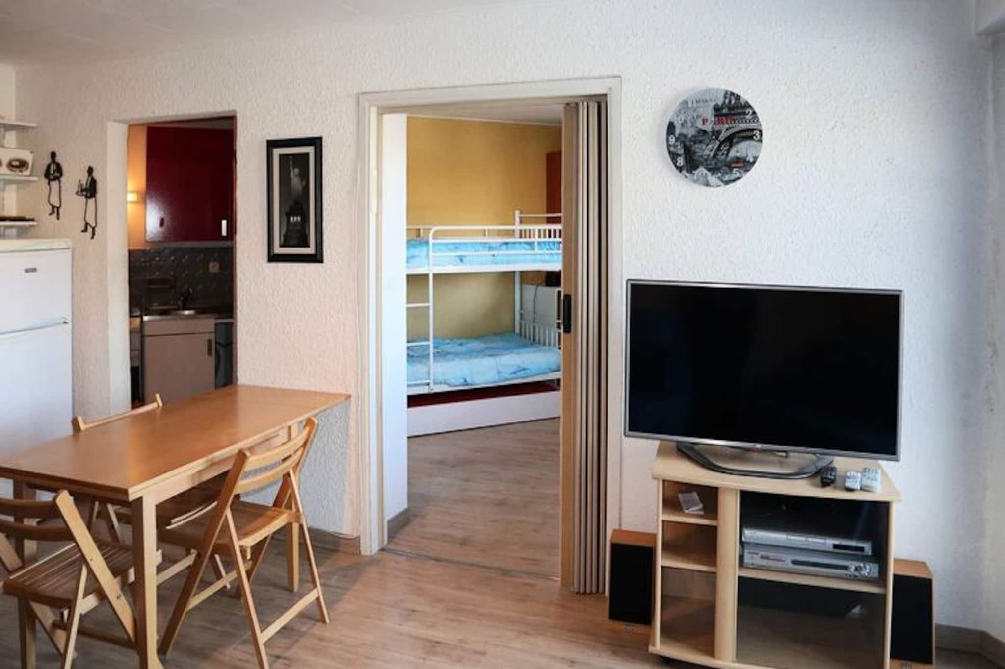 High above the bustling streets of the resort, this charming apartment in the Les Cembros residence offers a cozy retreat for families and friends seeking the perfect alpine getaway. Perched on the second floor, it boasts a west-facing balcony with breathtaking views of the valley, where sunsets paint the sky in warm hues and the crisp mountain air invigorates your senses. Whether you're planning a winter escape or a summer adventure, this property promises a memorable stay in the heart of the French Alps. \n\nInside, the apartment is thoughtfully designed to accommodate up to six guests. The living room features two comfortable double sofa beds, while a separate bedroom offers two single bunk beds, making it ideal for families with children or small groups. The kitchenette is equipped for preparing hearty meals after a day of exploration, and the bathroom with a separate toilet ensures convenience for all. Fiber optic Wi-Fi keeps you connected, while the cozy interiors provide a warm and inviting atmosphere to unwind after a day on the slopes or hiking trails.\n\nLocated directly above the shopping center, you'll have easy access to a variety of shops, restaurants, and essential services, making your stay as convenient as it is enjoyable. The resort's vibrant energy is just steps away, with ski lifts, trails, and recreational activities within easy reach. In summer, the area transforms into a haven for nature lovers, with hiking paths, mountain biking trails, and scenic vistas waiting to be discovered.\n\nWhether you're here to carve through powdery slopes, explore alpine meadows, or simply relax and soak in the serene beauty of the mountains, this apartment is your gateway to an unforgettable holiday experience.