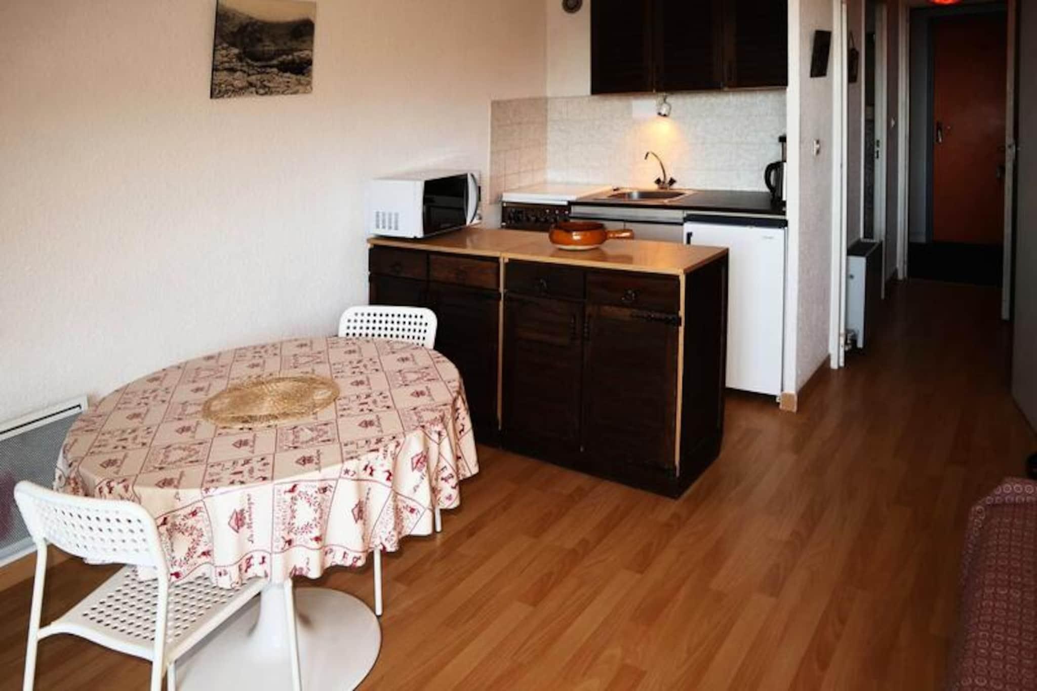 High above the bustling shopping center in the Les Carlines residence, this charming studio apartment offers a cozy alpine retreat with unbeatable ski-in/ski-out convenience. Imagine stepping out of your door and onto the slopes, ready to embrace the crisp mountain air and exhilarating runs of the French Alps. Perched on the seventh floor, the west-facing balcony provides a stunning panorama of the valley, perfect for unwinding after a day of adventure. Whether you're sipping a warm drink as the sun sets or simply soaking in the serene views, this is your gateway to alpine tranquility. Designed to comfortably accommodate up to four guests, the studio features a thoughtful layout that maximizes space and comfort. The sleeping alcove includes two single bunk beds, while the living room boasts a double sofa bed, creating a versatile and welcoming environment for families or small groups. The kitchenette, open to the living area, is fully equipped for preparing hearty meals to fuel your mountain escapades. A modern shower room with toilet ensures all the essentials are covered, while the residence's ski locker adds an extra layer of convenience. Located in the heart of the resort, you'll find everything you need just steps away, from shops and dining options to après-ski activities. The residence's prime location makes it an excellent base for exploring the surrounding slopes and trails, whether you're here for winter sports or summer hikes. With its blend of comfort, practicality, and breathtaking views, this studio promises a memorable stay in the French Alps.