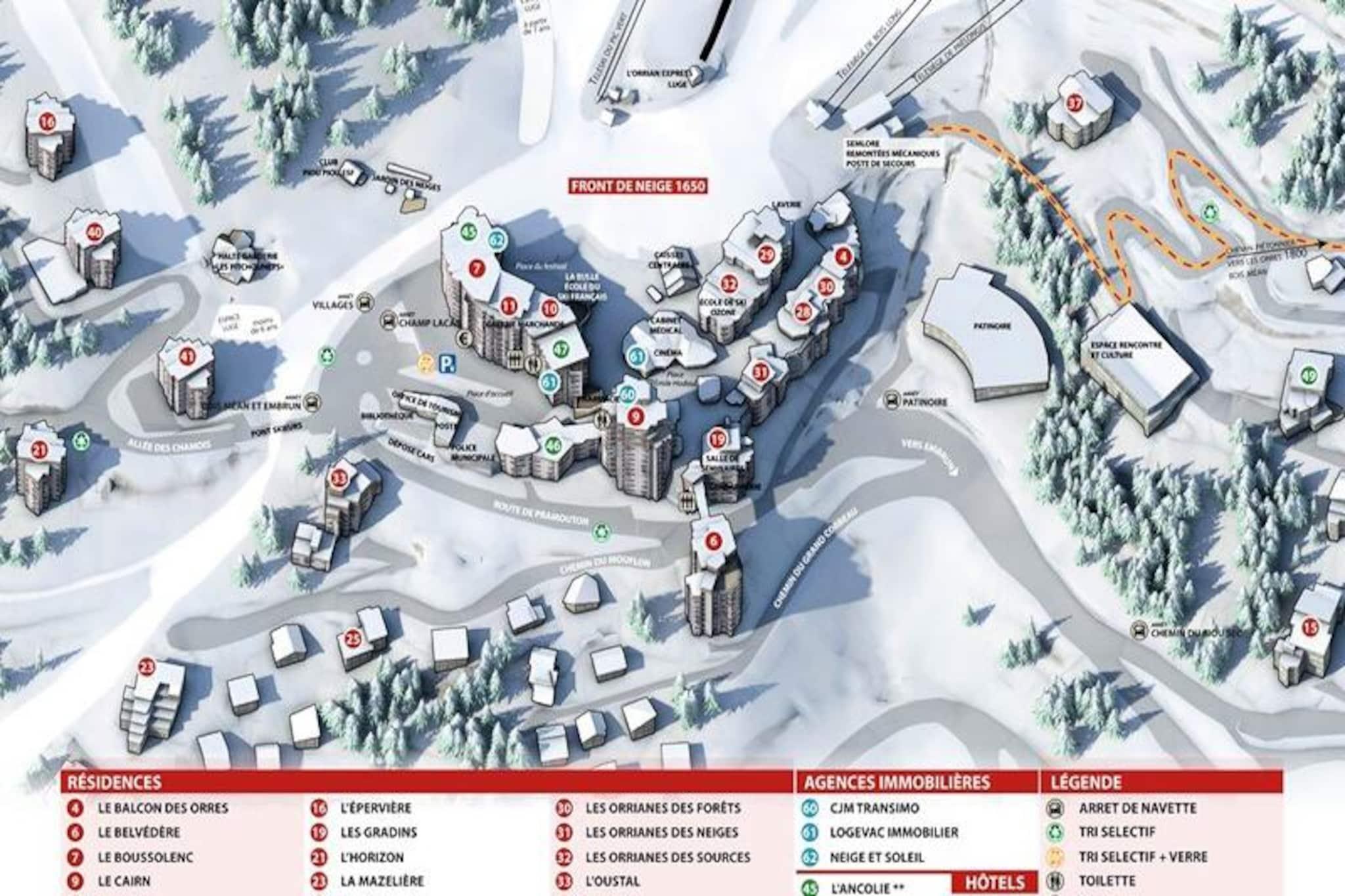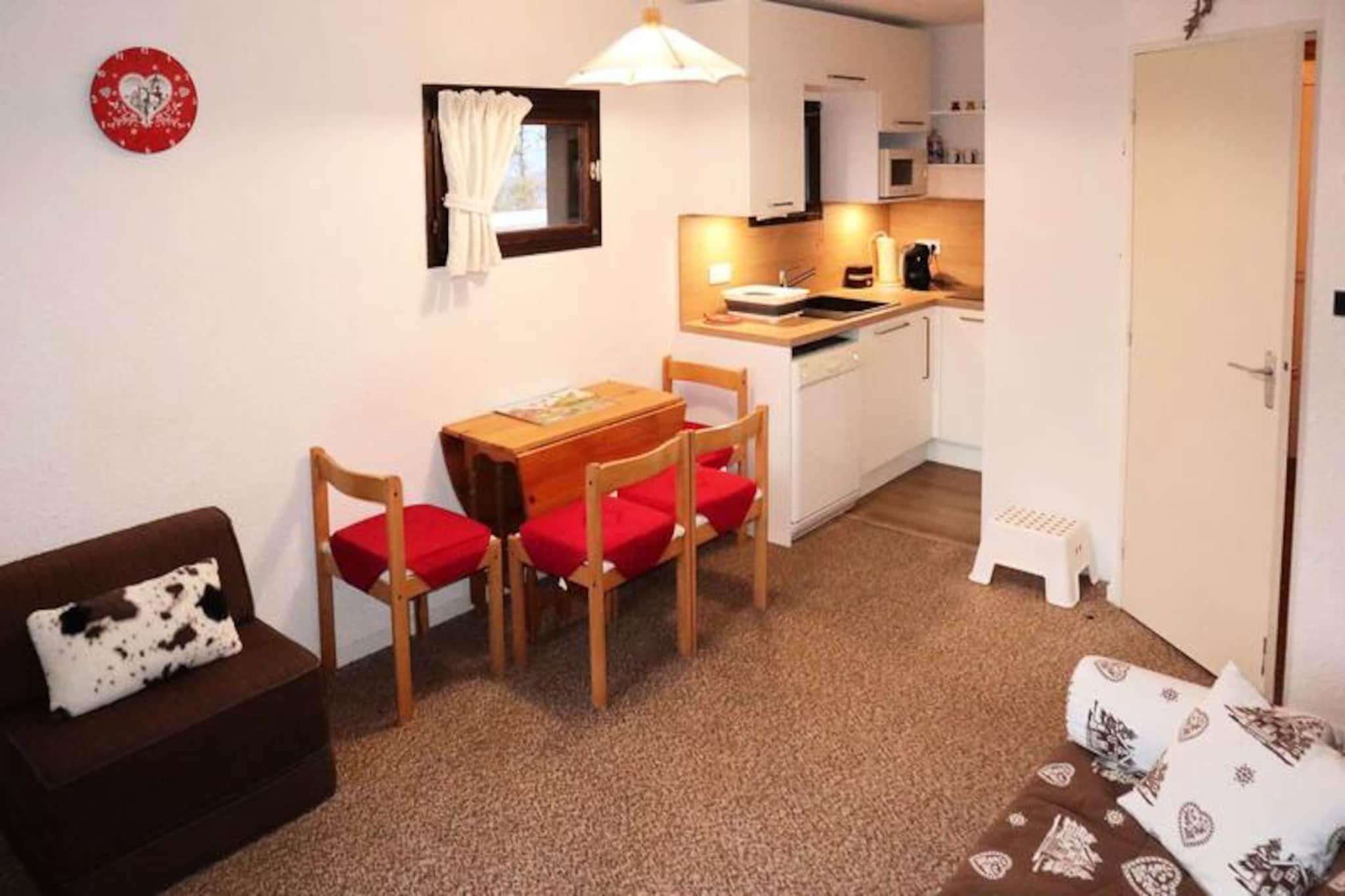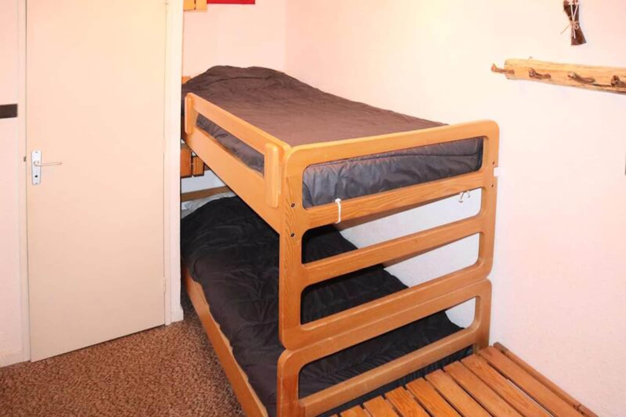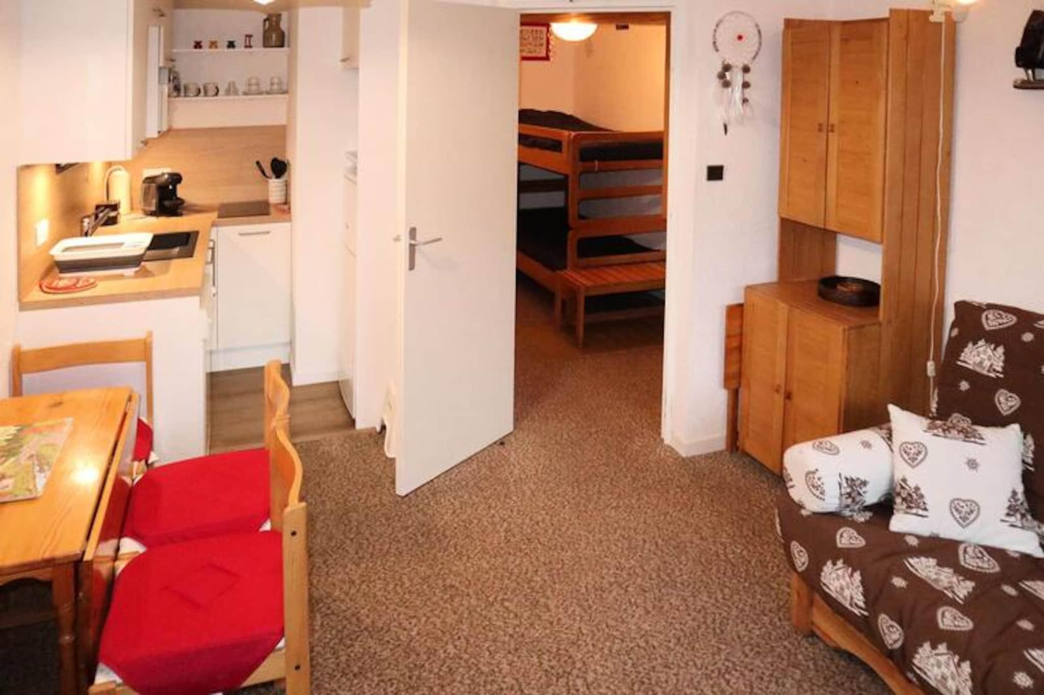 High above the vibrant heart of the resort, this top-floor studio apartment offers a cozy alpine retreat with unparalleled ski-in/ski-out convenience. Located on the 8th floor of a residence with an elevator, it provides direct access to the slopes, ensuring you can step into your skis and onto the mountain in moments. The south-facing balcony invites you to soak in the breathtaking, unobstructed views of the surrounding peaks, making every morning a picturesque start to your day. Whether you're here for thrilling winter sports or serene summer hikes, this studio places you at the center of it all. Designed to comfortably accommodate up to four guests, the apartment features a thoughtfully arranged layout. A sleeping alcove with two single bunk beds offers a cozy nook for restful nights, while the living room includes a sofa bed with two pull-out singles that can be joined for added flexibility. The open-plan kitchen is fully equipped, allowing you to prepare hearty meals after a day of adventure. A modern bathroom and separate WC add to the convenience, ensuring a comfortable stay for families or small groups. Step outside, and you'll find yourself surrounded by the resort's lively atmosphere. Shops, restaurants, and activity hubs are all within easy reach, making it effortless to explore the local culture and cuisine. In winter, the slopes beckon with pristine snow, while summer transforms the area into a haven for hikers and nature enthusiasts. Whether you're chasing powder or basking in the alpine sun, this studio offers the perfect base for your mountain escape.
