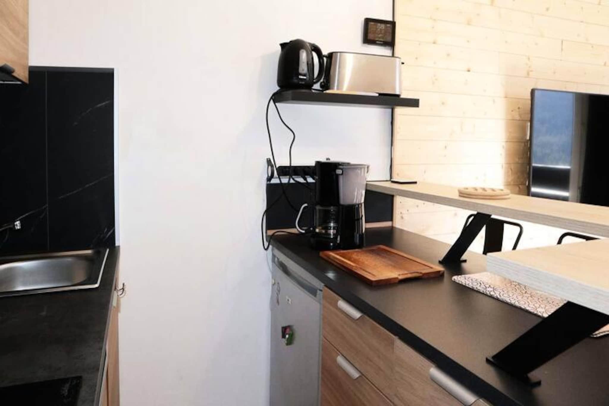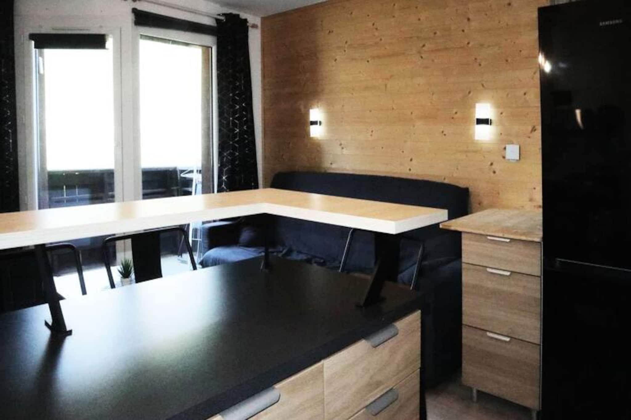 High above the vibrant heart of the resort, this charming studio apartment on the 8th and top floor offers a serene retreat with breathtaking south-facing views. Imagine waking up to the sun rising over the mountains, stepping out onto your private balcony, and breathing in the crisp alpine air before heading straight to the slopes thanks to its convenient ski-in/ski-out access. Whether you're here for the thrill of skiing or the lively atmosphere of the resort, this cozy haven is perfectly positioned to make the most of your stay. Thoughtfully renovated and designed for comfort, the studio accommodates up to four guests. The sleeping alcove features two single bunk beds, while the living room offers a comfortable sofa bed for two. The open-plan kitchen is fully equipped, making it easy to prepare meals after a day of adventure. Modern amenities such as a washing machine, dryer, and a separate WC ensure a hassle-free stay, while the stylish shower room adds a touch of luxury. Step outside, and you'll find yourself surrounded by the resort's vibrant energy. Shops, restaurants, and activities are all just steps away, offering everything from local delicacies to après-ski entertainment. In the summer, the area transforms into a paradise for hikers and nature enthusiasts, with trails leading to stunning alpine vistas. Whether you're seeking an action-packed getaway or a peaceful escape, this studio combines convenience, comfort, and stunning views to create an unforgettable alpine experience.