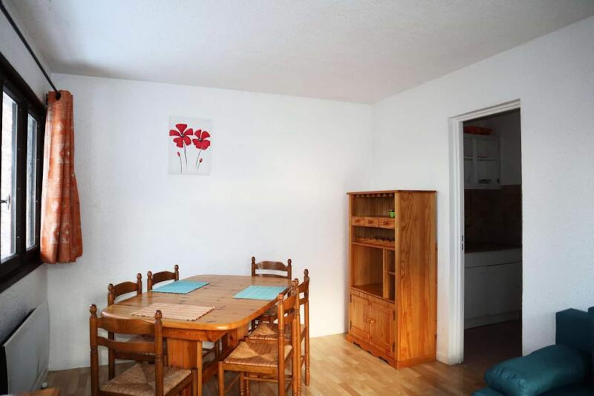Imagine waking up to the serene beauty of the French Alps, where this cozy studio apartment offers a tranquil escape with stunning valley views from its spacious south-west facing balcony. Located on the first floor of a peaceful residence, this charming retreat is perfect for couples or small families seeking a blend of comfort and convenience. The residence is ideally situated just a short stroll from the resort center and shops, while also providing the luxury of ski-in/ski-out access for winter sports enthusiasts. \n\nInside, the apartment is thoughtfully designed to maximize space and comfort. The sleeping alcove features two single bunk beds, while the large living area includes a comfortable double sofa bed, making it perfect for up to four guests. The separate kitchenette is equipped for preparing meals after a day of adventure, and the bathroom and separate toilet add to the practicality. Parquet flooring adds a warm and inviting touch to the interiors, creating a cozy alpine ambiance. A ski locker is also included, ensuring your gear is safely stored and easily accessible.\n\nBeyond the residence, the surrounding area is a haven for outdoor enthusiasts. In winter, the ski-in/ski-out access allows you to hit the slopes with ease, while summer transforms the region into a paradise for hikers and nature lovers. The nearby resort center offers a variety of shops, restaurants, and après-ski options, ensuring you have everything you need at your fingertips. Whether you're here for the thrill of skiing or the tranquility of alpine summers, this studio apartment is your gateway to unforgettable mountain memories.