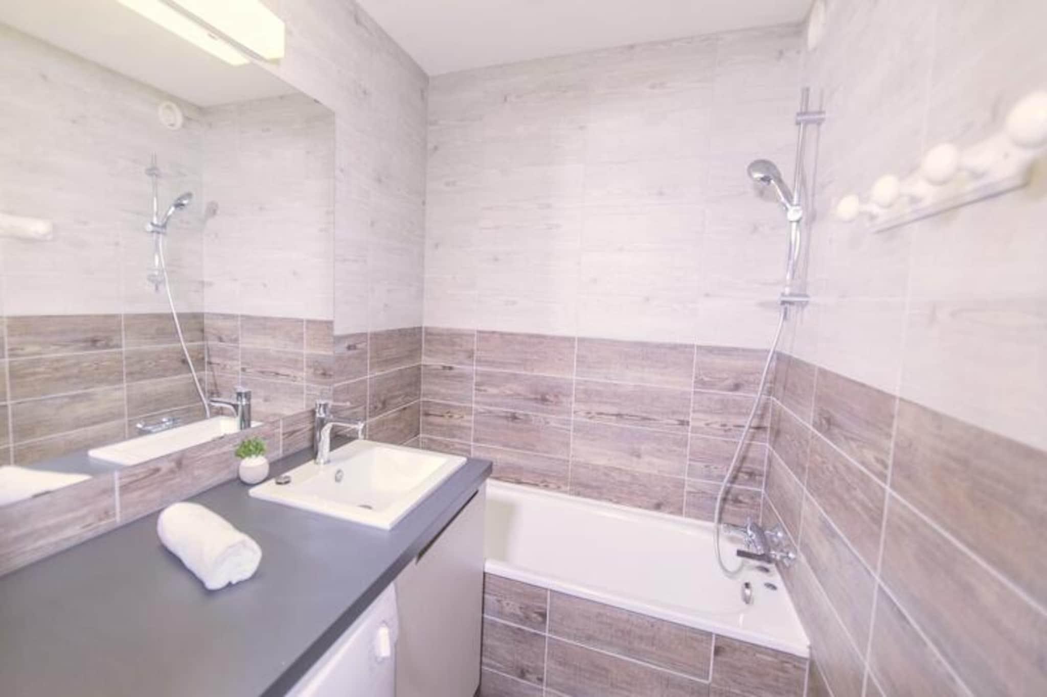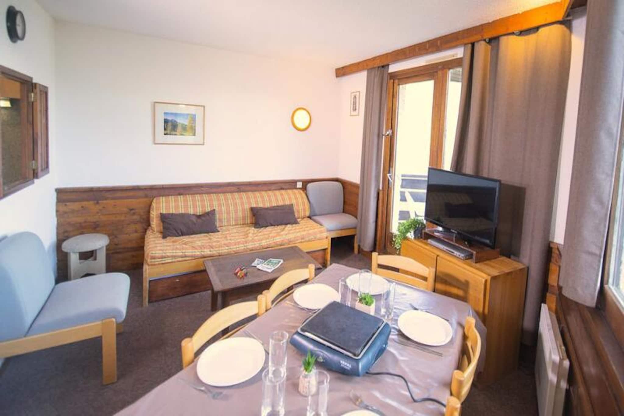 High above the picturesque Embrun valley, this elegant apartment in Les Orres 1650 invites you to experience the magic of the Hautes-Alpes. With breathtaking panoramic views and a prime location just steps from the snow front, this residence combines alpine charm with modern convenience. Imagine mornings spent gazing at the majestic peaks from your balcony, followed by effortless access to chairlifts via the unique 19-meter-high walkway. After a day of skiing or exploring, unwind by the cozy fireplace or challenge friends to a game of billiards, while the solarium offers the perfect spot to soak up the region’s renowned sunshine. \n\nSpanning 45m², this thoughtfully designed apartment accommodates up to six guests, making it ideal for families or small groups. The mountain alcove features bunk beds, a separate bedroom offers twin beds, and the living room includes a pull-out sofa bed, ensuring flexible sleeping arrangements for all. The fully equipped kitchen boasts a dishwasher, microwave/grill, and hot stone grill, perfect for preparing hearty meals to share after an active day. The bathroom’s inviting bathtub provides a soothing retreat, while the private ski locker adds convenience to your stay. \n\nSituated in the heart of Les Orres 1650, you’ll find everything you need within 100 meters: shops, bakeries, restaurants, and thrilling activities like snow sports, mountain biking, zip lining, and treetop adventure courses. Whether you’re seeking adrenaline-filled days or tranquil evenings under the stars, this residence offers a seamless blend of comfort and adventure. Let the beauty of the Embrun valley and the warmth of Les Orres create memories you’ll treasure forever.