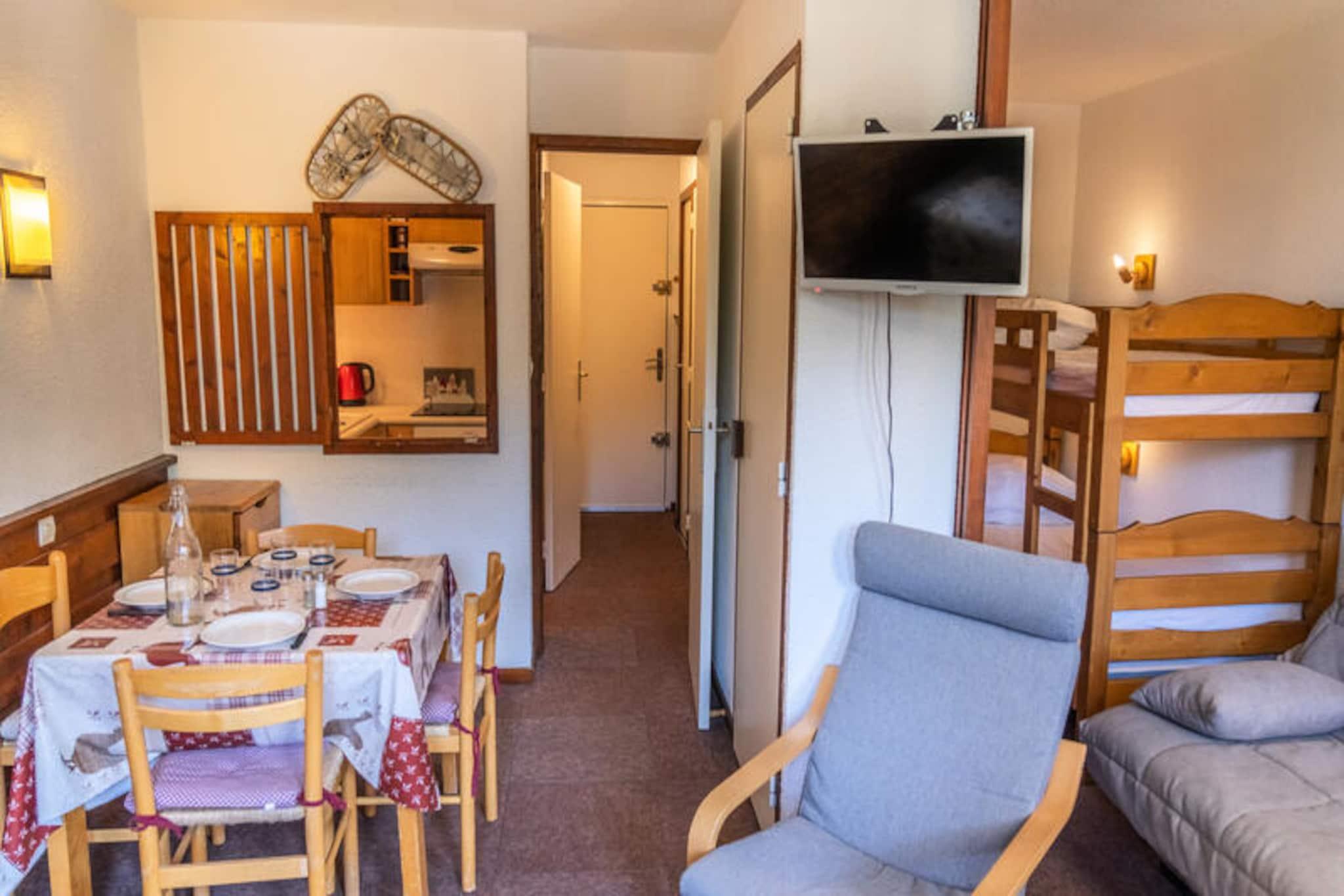 High above the picturesque Embrun valley, this elegant studio apartment in Les Orres 1650 offers a serene mountain escape with breathtaking panoramic views. Imagine waking up to the golden rays of the Hautes-Alpes sun streaming through your southeast-facing balcony, where you can sip your morning coffee while gazing at the majestic peaks. Whether you're seeking thrilling snow sports or tranquil alpine moments, this residence places you at the heart of it all. \n\nThe 30 m² studio is thoughtfully designed to accommodate up to six guests, making it perfect for families or small groups. The cozy sleeping alcove features a bunk bed ideal for children, while two comfortable double sofa beds provide additional sleeping options. The fully equipped kitchen, complete with a dishwasher and microwave, ensures you can prepare hearty meals after a day of adventure. The renovated bathroom with a bathtub offers the perfect spot to unwind and relax. \n\nLocated on the 9th floor, the apartment provides easy access to the snow front and chairlifts via a 19-meter-high walkway, making your ski days effortless. After an active day, retreat to the residence's inviting common areas, where you can enjoy a cozy fireplace, a game of billiards, or the sunny solarium. With shops, restaurants, and activities like mountain biking, zip-lining, and treetop courses just steps away, there's something for everyone to enjoy. \n\nComplete with a private underground parking space and a ski locker, this property ensures a stress-free holiday experience. Whether you're here to carve the slopes or soak in the alpine charm, this residence promises unforgettable memories in the heart of Les Orres 1650.