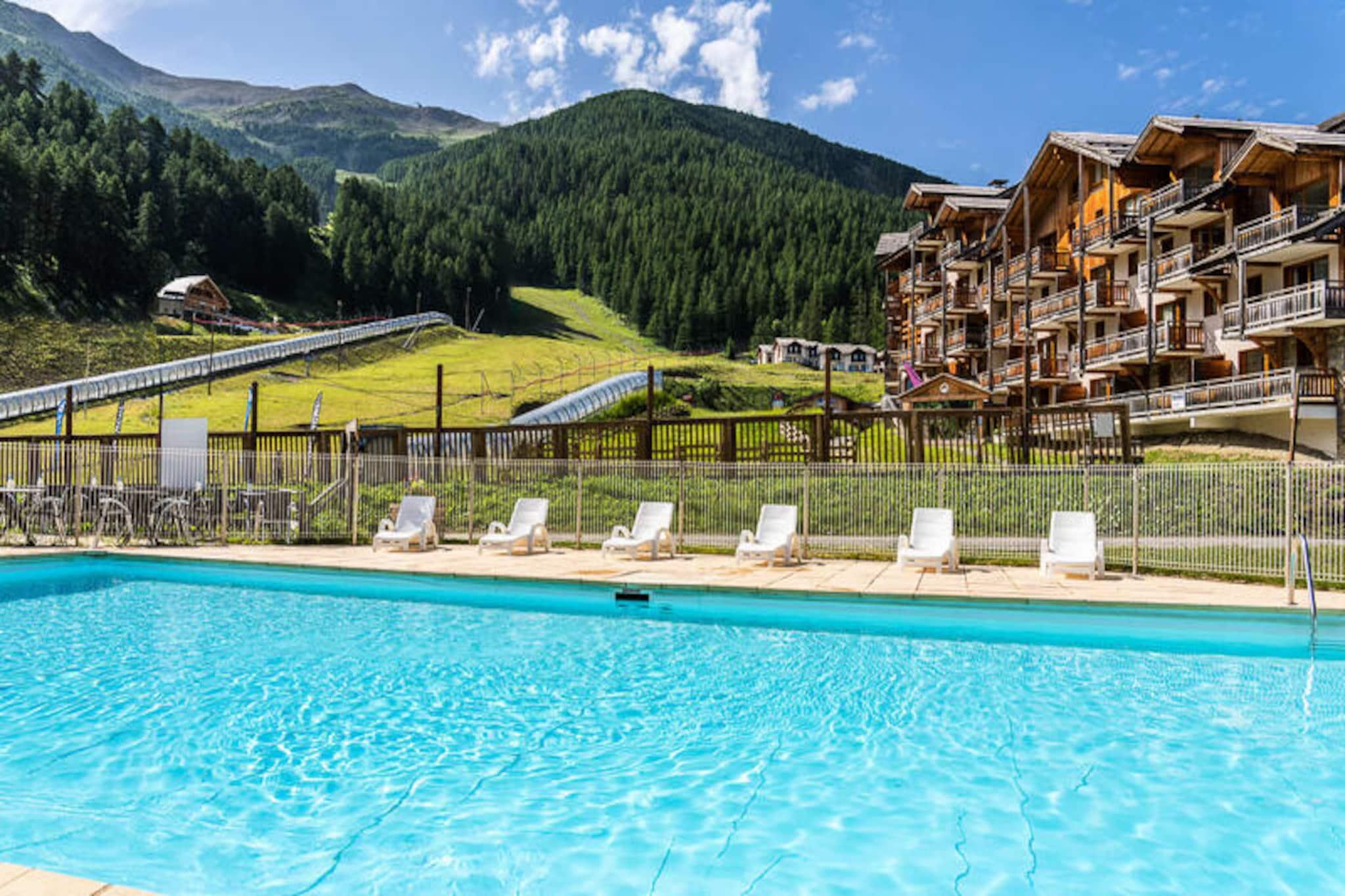 High above the serene alpine landscapes at 1,800 meters, the Hauts de Préclaux residence offers an unforgettable escape in the heart of Bois Méan. Here, the rhythm of mountain life unfolds around the lively central square, where charming shops, cozy bars, and inviting restaurants create a vibrant atmosphere. Whether you're visiting for a winter wonderland or a summer retreat, this destination blends natural beauty with modern comforts. From your west-facing balcony, take in the picturesque views of the bustling square, a hub of activity and charm in Orres 1800. \n\nThis thoughtfully designed 35 m² apartment accommodates up to six guests, making it perfect for families or small groups. The layout includes a cozy bedroom with a double bed, a sleeping alcove with two single beds, and a comfortable double sofa bed in the living room. The fully equipped kitchen invites you to prepare hearty meals, while the lounge area with a television ensures relaxation after a day of adventure. A bathroom with a bathtub and a separate toilet add to the convenience, and ample storage space keeps everything organized during your stay.\n\nStep outside and experience the ultimate ski-in/ski-out convenience. With direct access to the snow front and slopes, your alpine adventures begin the moment you leave the ski locker. After a thrilling day on the pistes, unwind in the residence’s heated outdoor swimming pool or relax in the sauna cabins, open seasonally to enhance your stay. \n\nWhether you're carving through fresh powder, exploring scenic trails, or simply soaking in the tranquil mountain atmosphere, the Hauts de Préclaux residence offers the perfect base for an unforgettable alpine getaway. Let the charm of Orres 1800 and its breathtaking surroundings create memories to last a lifetime.