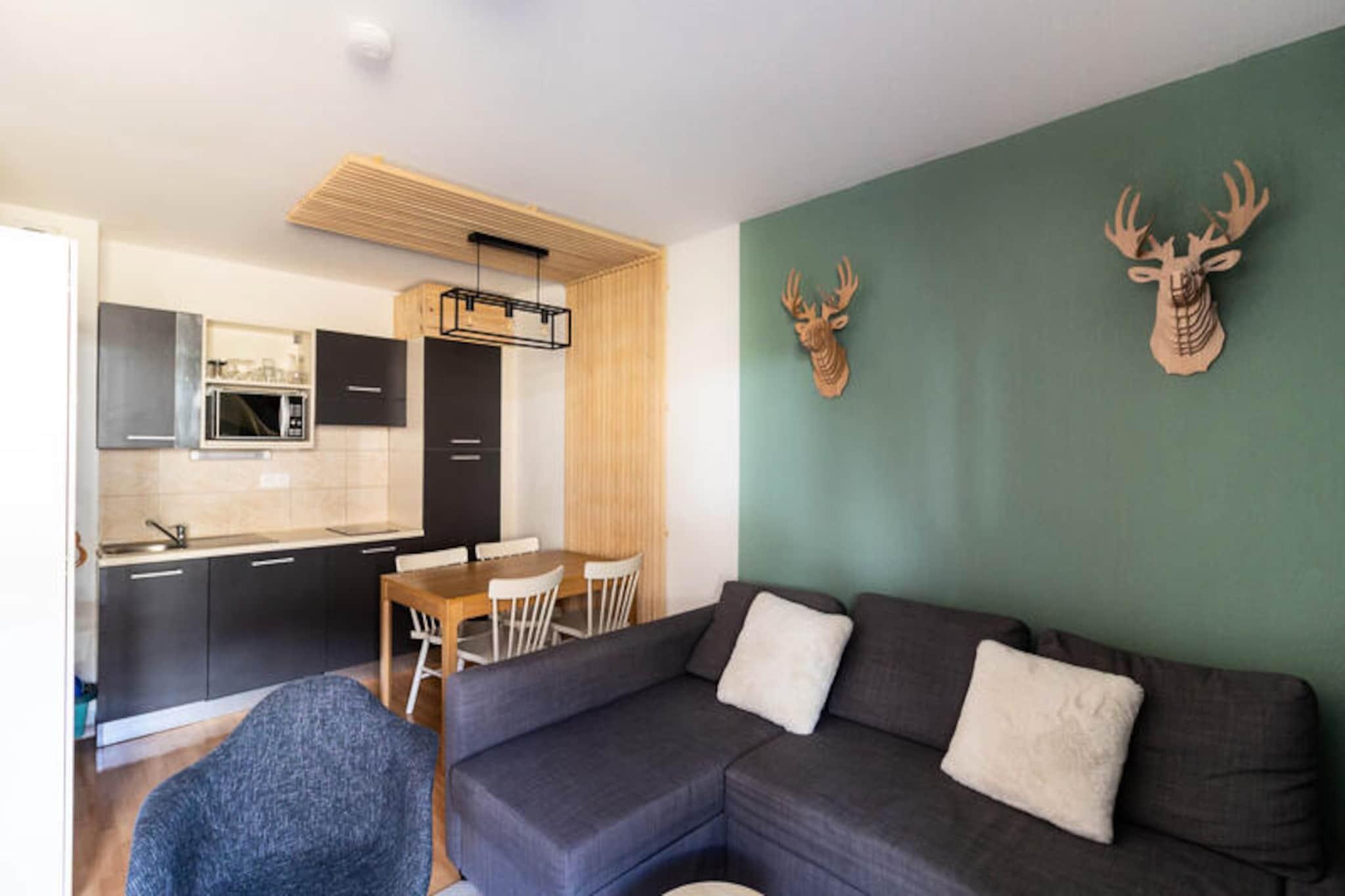 High above the picturesque hamlet of Bois Méan at 1800 meters, this charming apartment in Les Terrasses du Soleil d’Or offers a serene mountain escape with direct access to the slopes. Imagine waking up to breathtaking alpine views, stepping onto your private balcony to sip coffee in the crisp morning air, and heading straight to the Préclaux magic carpet lift or Prébois chairlift just steps away. Perfectly situated for families, the residence is conveniently located opposite the daycare center and snow garden, making it easy to drop off little ones before embarking on your own adventures. \n\nThis fully renovated 36 m² southeast-facing apartment comfortably accommodates up to five guests. The cozy living area features a sofa bed, a smart TV, and an electric fireplace, creating a warm and inviting atmosphere for relaxing evenings. The well-equipped kitchen provides everything you need to prepare delicious meals, while the sleeping arrangements include a double bedroom with a 140cm bed and a sleeping alcove with three single bunk beds. The bathroom is equipped with a bathtub, perfect for unwinding after an active day. \n\nGuests can enjoy the residence’s heated indoor pool with a whirlpool and an outdoor terrace, open seasonally for year-round relaxation. Shops, restaurants, and equipment rentals are just steps away, with the ESF ski school and ski lift ticket offices conveniently located nearby. For a leisurely stroll, a scenic footpath through the larch trees connects to the 1650 resort, offering a tranquil escape into nature. \n\nWhether you’re skiing, snowshoeing, or mountain biking, this apartment provides the perfect base for exploring the stunning landscapes of Les Orres. End your day with a sunset aperitif on the balcony, soaking in the beauty of the mountains. A private ski locker ensures your equipment is always ready for the next adventure.