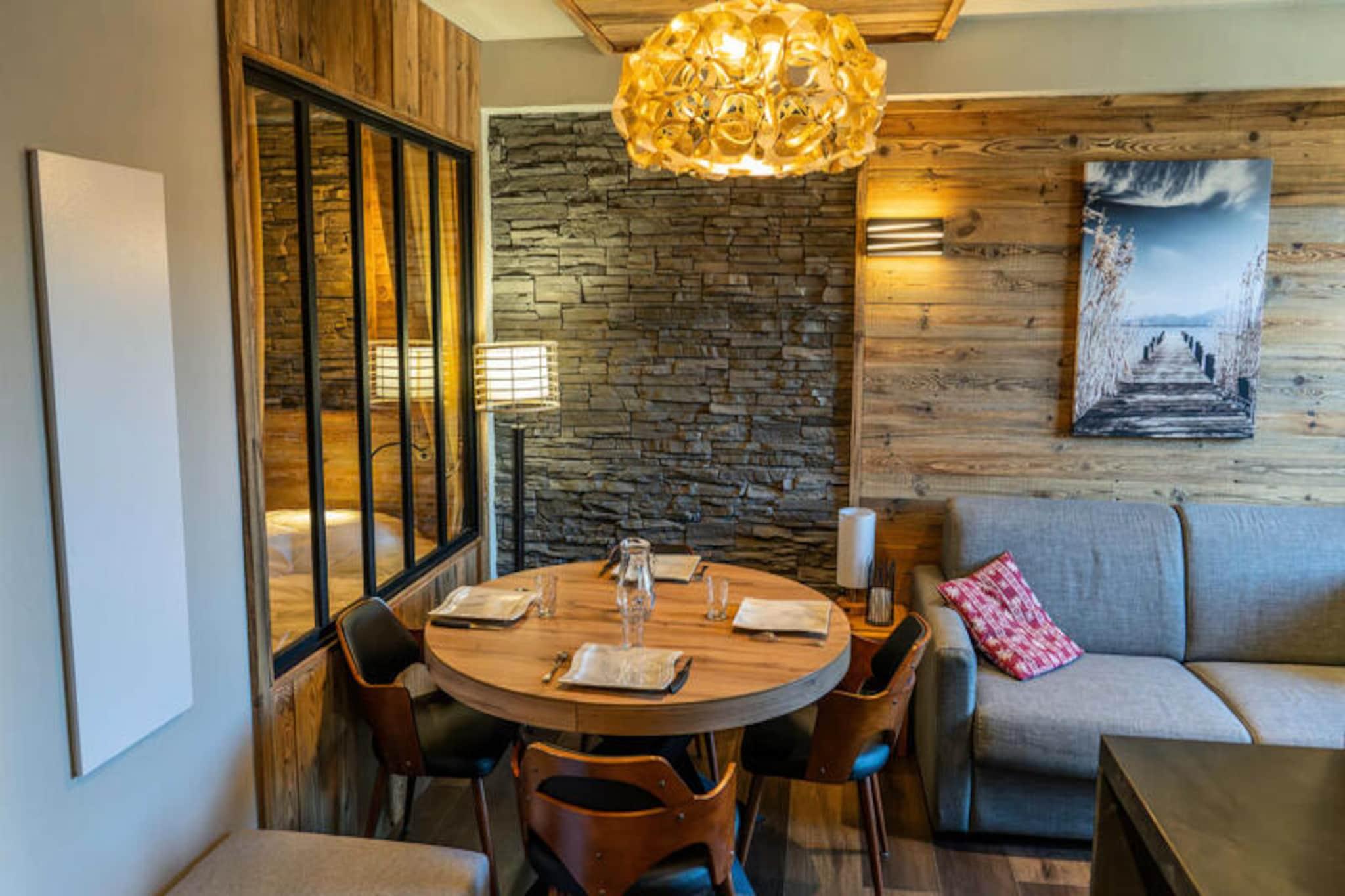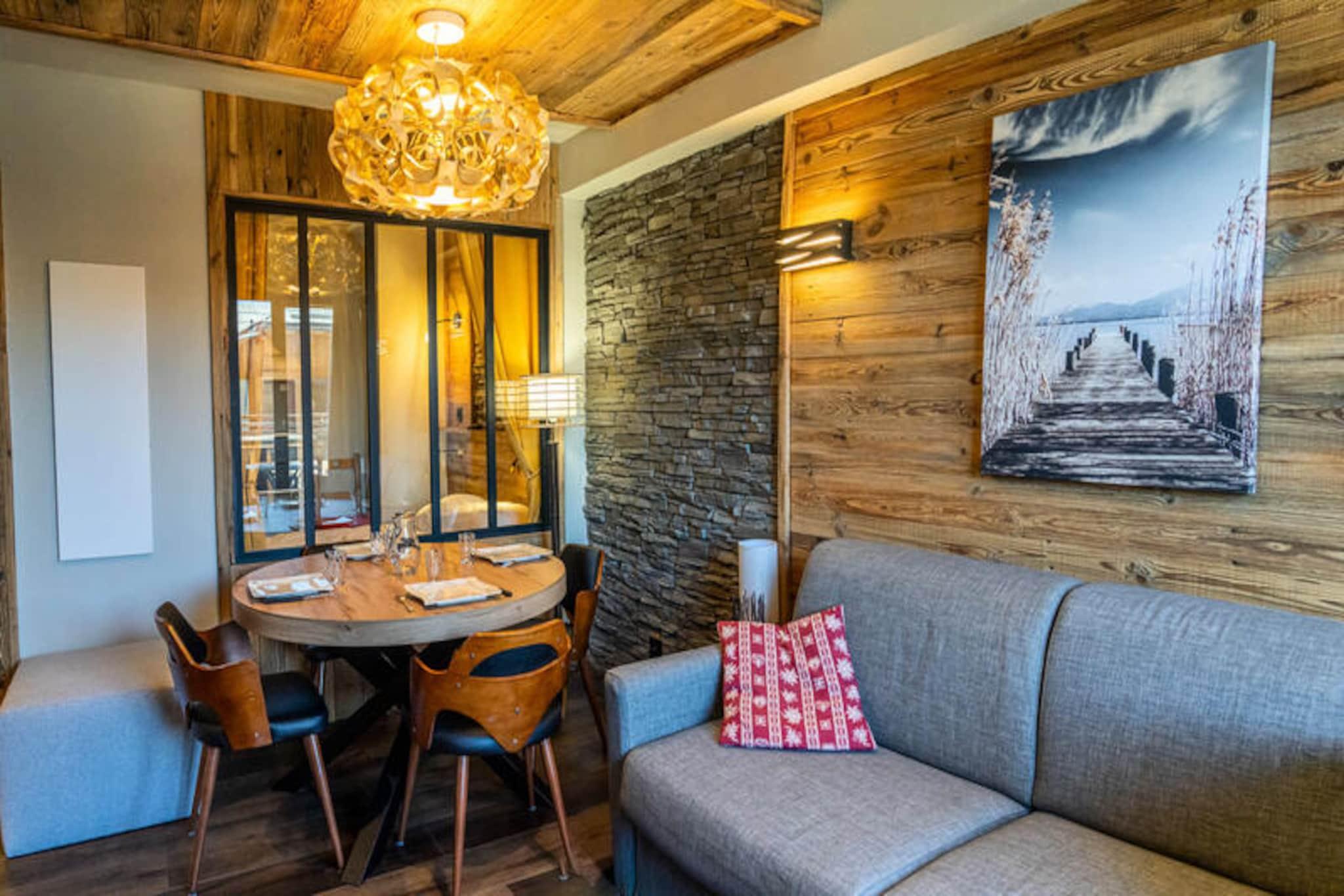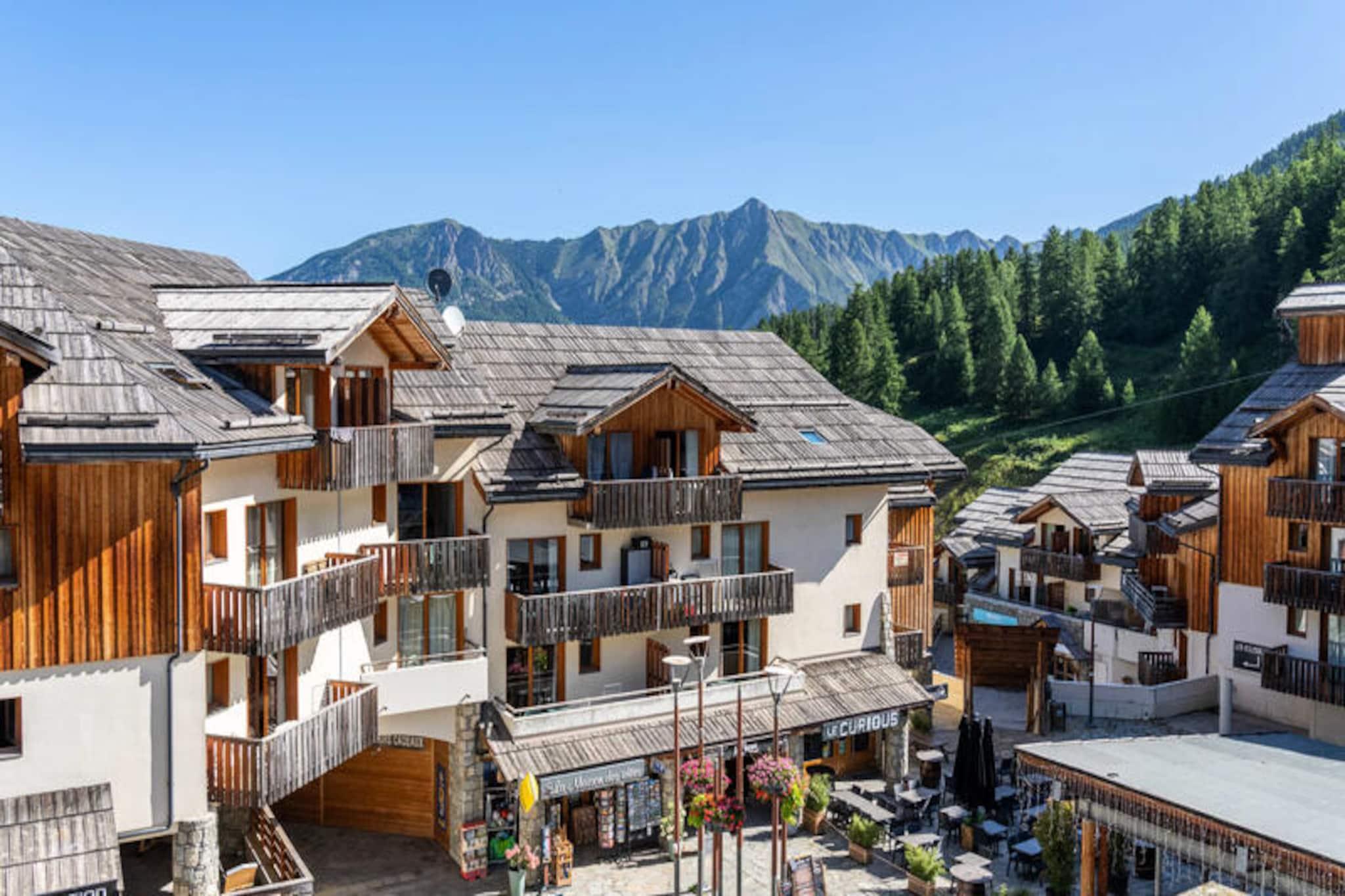 At the heart of the picturesque Bois Méan area, this charming apartment in the Edelweiss building of the Hauts de Préclaux residence invites you to experience the perfect alpine getaway. Situated at an altitude of 1,800 meters, the residence surrounds a lively central square where shops, bars, and restaurants create a vibrant atmosphere, making it an ideal destination for both relaxation and adventure. Whether you're visiting in winter or summer, the breathtaking mountain views and fresh alpine air set the tone for an unforgettable stay. \n\nThis beautifully renovated 35 m² apartment, completed in autumn 2023, combines modern comfort with rustic mountain charm. Designed to accommodate up to 4 guests, it features a cozy living room with a television and an electric fireplace, perfect for unwinding after a day on the slopes. The fully equipped kitchen includes a coffee maker, kettle, toaster, dishwasher, microwave, fondue set, and raclette grill, ensuring you can enjoy delicious meals in the comfort of your home away from home. The northwest-facing balcony, furnished with garden furniture, offers a delightful view of the bustling main square of Les Orres.\n\nSleeping arrangements include a sleeping alcove with a bunk bed and two single beds, as well as a separate area with a comfortable double bed. The apartment also boasts a bathroom with a bathtub and a separate toilet for added convenience. Guests will appreciate the private ski locker and direct access via elevator to the residence's heated outdoor swimming pool, sauna, and fitness room, open seasonally for both summer and winter enjoyment.\n\nLocated less than 50 meters from the slopes and all essential amenities, including a mini-market, restaurants, equipment rental, and local produce shops, this apartment offers unparalleled convenience. Whether you're here for skiing, hiking, or simply soaking in the serene mountain ambiance, this accommodation provides the perfect base for your alpine adventure.