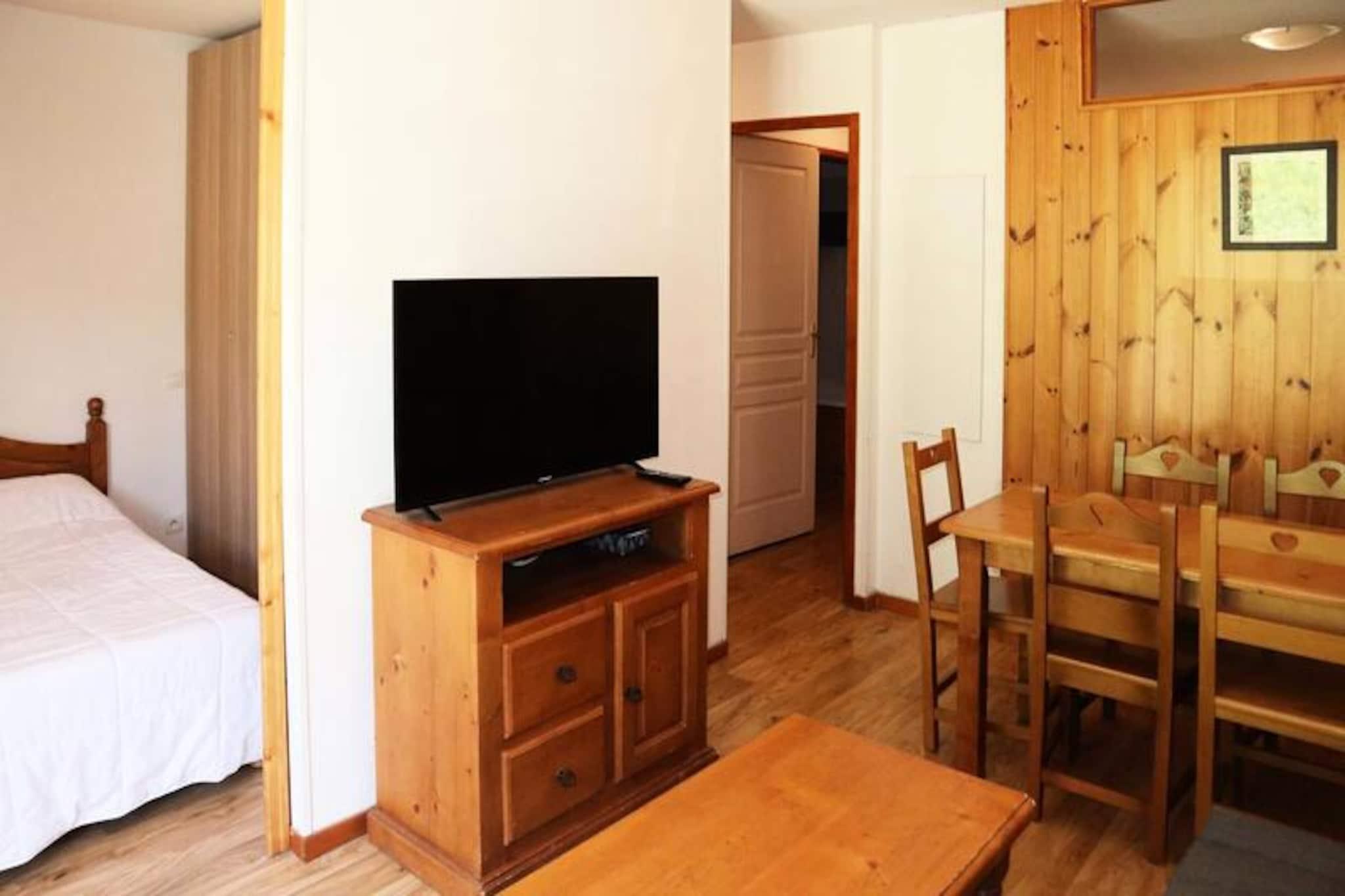 High above the serene alpine landscapes of Les Orres, this elegant two-room apartment in the prestigious Les Colchiques residence offers a perfect blend of comfort and convenience. With ski-in/ski-out access, you can step directly onto the slopes and immerse yourself in the pristine beauty of the French Alps. The east-facing balcony invites you to start your mornings with breathtaking views of the sun rising over the snow-capped peaks, setting the tone for an unforgettable day in the mountains. Designed to accommodate up to six guests, this thoughtfully arranged apartment features a cozy bedroom with a double bed, a small entrance room with two single bunk beds, and a comfortable double sofa bed in the living area. The fully equipped kitchenette allows you to prepare hearty meals after a day of skiing or hiking, while the modern bathroom and separate toilet ensure added convenience. Guests also enjoy complimentary access to the residence’s heated outdoor pool and sauna, perfect for unwinding and rejuvenating after an active day. Situated in the heart of Les Orres, the residence provides easy access to local amenities, including charming restaurants, shops, and ski rental services. In the warmer months, the area transforms into a haven for hikers and mountain bikers, with trails that weave through lush forests and offer panoramic views of the surrounding valleys. Whether you’re here for winter sports or summer adventures, the location ensures you’re always close to the action. With its prime location, luxurious amenities, and warm alpine charm, this apartment is the ideal retreat for families and friends seeking a memorable escape in the French Alps. Let the magic of Les Orres captivate you, and create memories that will last a lifetime.