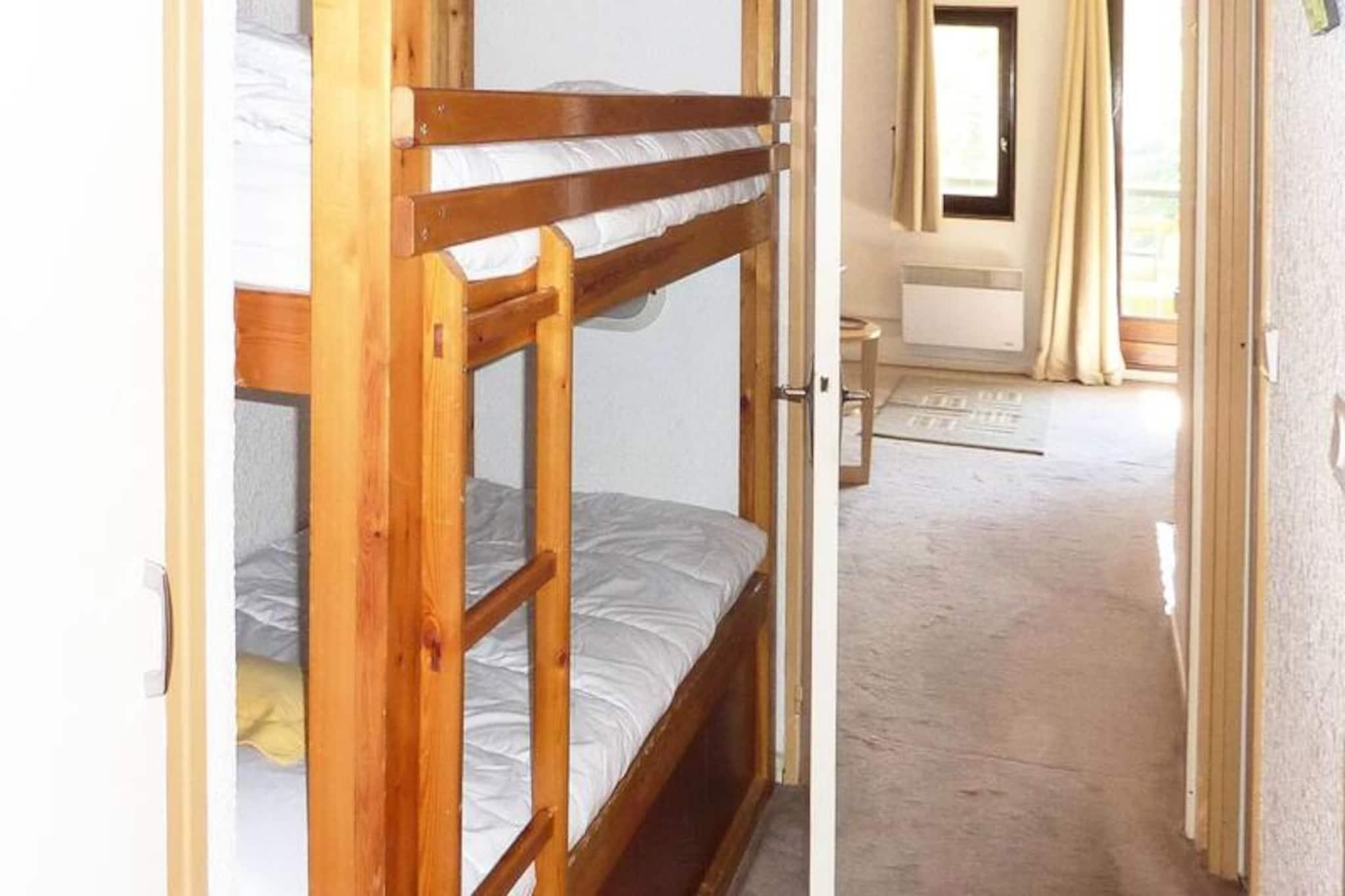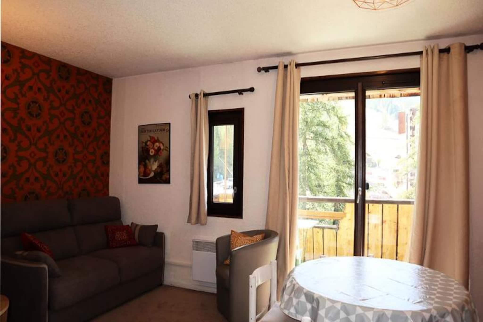 High above the bustling heart of the French Alps, this charming studio apartment offers a cozy retreat for up to four guests with unparalleled ski-in/ski-out convenience. Perched on the 5th floor of a modern residence with elevator access, it welcomes you to wake up to breathtaking south-facing views of the resort and slopes, where the sun bathes the landscape in golden hues. Whether you're here to carve through pristine powder or simply soak in the alpine ambiance, this property is the perfect base for your mountain adventures. \n\nInside, the apartment is thoughtfully designed for comfort and functionality. The entrance hall features two single bunk beds, ideal for children or friends, while the living room boasts a double sofa bed that transforms into a restful haven after a day on the slopes. The open-plan kitchen is fully equipped, inviting you to prepare hearty meals to enjoy before stepping out onto the balcony to admire the panoramic views. A separate bathroom and toilet ensure privacy and convenience, while the heating system keeps the space warm and inviting during the colder months. \n\nSituated just steps away from local shops, restaurants, and ski facilities, everything you need is within easy reach. In winter, the slopes are your playground, while summer transforms the region into a haven for hiking, biking, and exploring the natural beauty of the Alps. The nearby trails and scenic vistas promise unforgettable moments for outdoor enthusiasts and nature lovers alike. \n\nWhether you're seeking thrilling alpine sports or tranquil moments surrounded by majestic peaks, this studio apartment offers a gateway to the best of the French Alps. Make your stay unforgettable with the perfect blend of comfort, convenience, and awe-inspiring views.