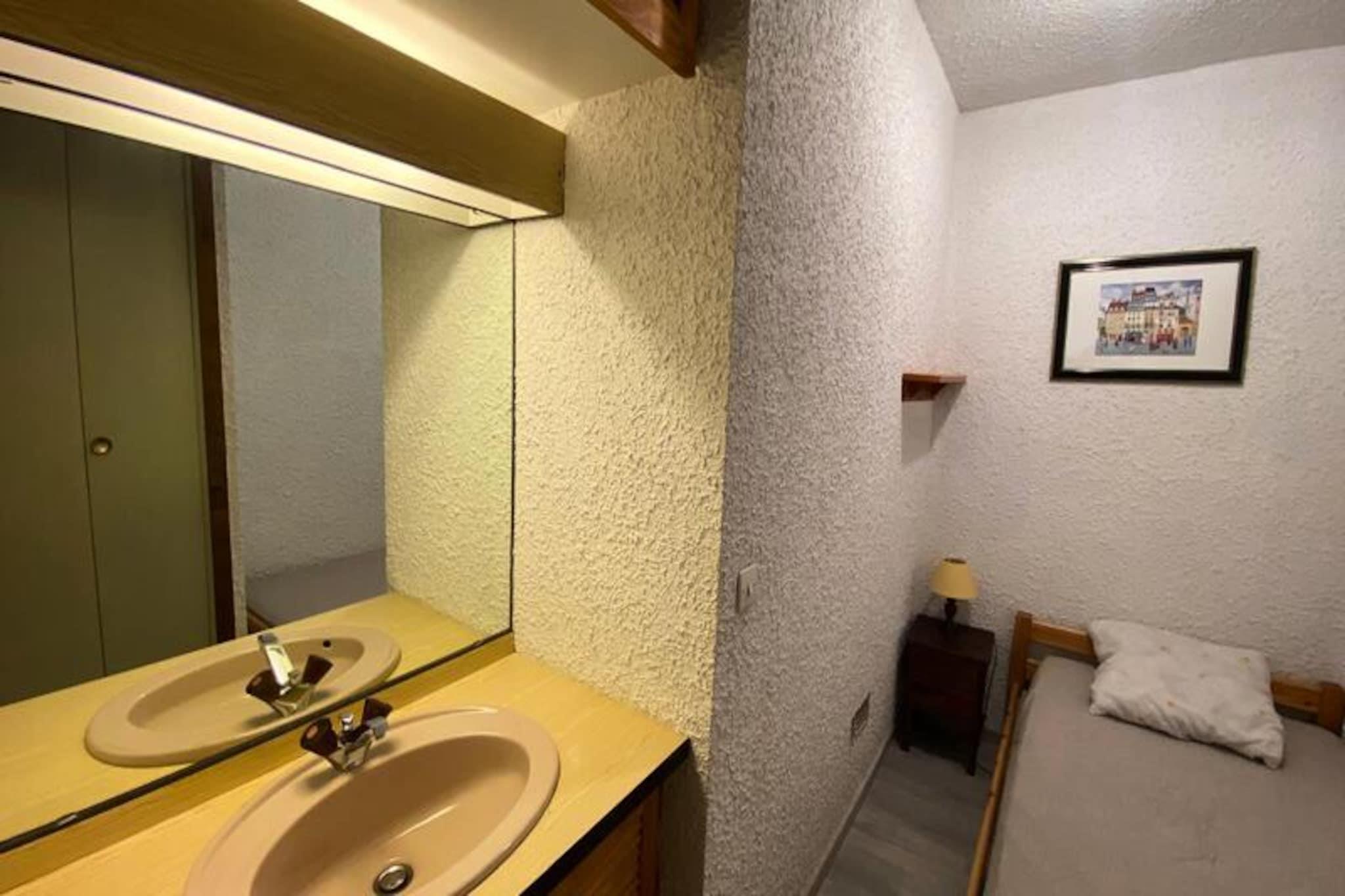 High above the serene valleys of Les Orres 1650, this charming apartment invites you to immerse yourself in the magic of the French Alps. With breathtaking west-facing views from the fifth-floor balcony, every sunset becomes a masterpiece painted across the mountain peaks. Whether you're here for snowy adventures or summer escapades, the vibrant resort atmosphere ensures unforgettable moments for all ages. From torchlight descents and fireworks to thrilling zip lines and treetop courses, excitement is always within reach. \n\nSpanning 48 m², this thoughtfully designed two-room apartment comfortably accommodates up to seven guests. The living room, featuring a cozy sofa bed and television, is perfect for unwinding after a day of exploration. A separate, fully equipped kitchen—complete with a dishwasher, oven, coffee maker, and toaster—makes preparing meals a delight. Sleeping arrangements are versatile, with a double bed in the bedroom, bunk beds in the alcove, a single bed in a second alcove with its own sink, and the sofa bed in the living room. The bathroom, equipped with a relaxing bathtub, offers the perfect retreat after mountain biking, skiing, or hiking. \n\nSituated less than 100 meters from the slopes, shops, and restaurants, convenience is at your doorstep. Whether you're grabbing fresh pastries from the bakery, exploring souvenir shops, or gearing up for snow sports, everything you need is just a short stroll away. Two private ski lockers provide secure storage for your equipment, ensuring a hassle-free stay. \n\nChoose this alpine haven for its unbeatable location, cozy ambiance, and access to year-round activities. Whether you're chasing powdery slopes or basking in summer sunshine, Les Orres 1650 promises memories that will linger long after your holiday ends.