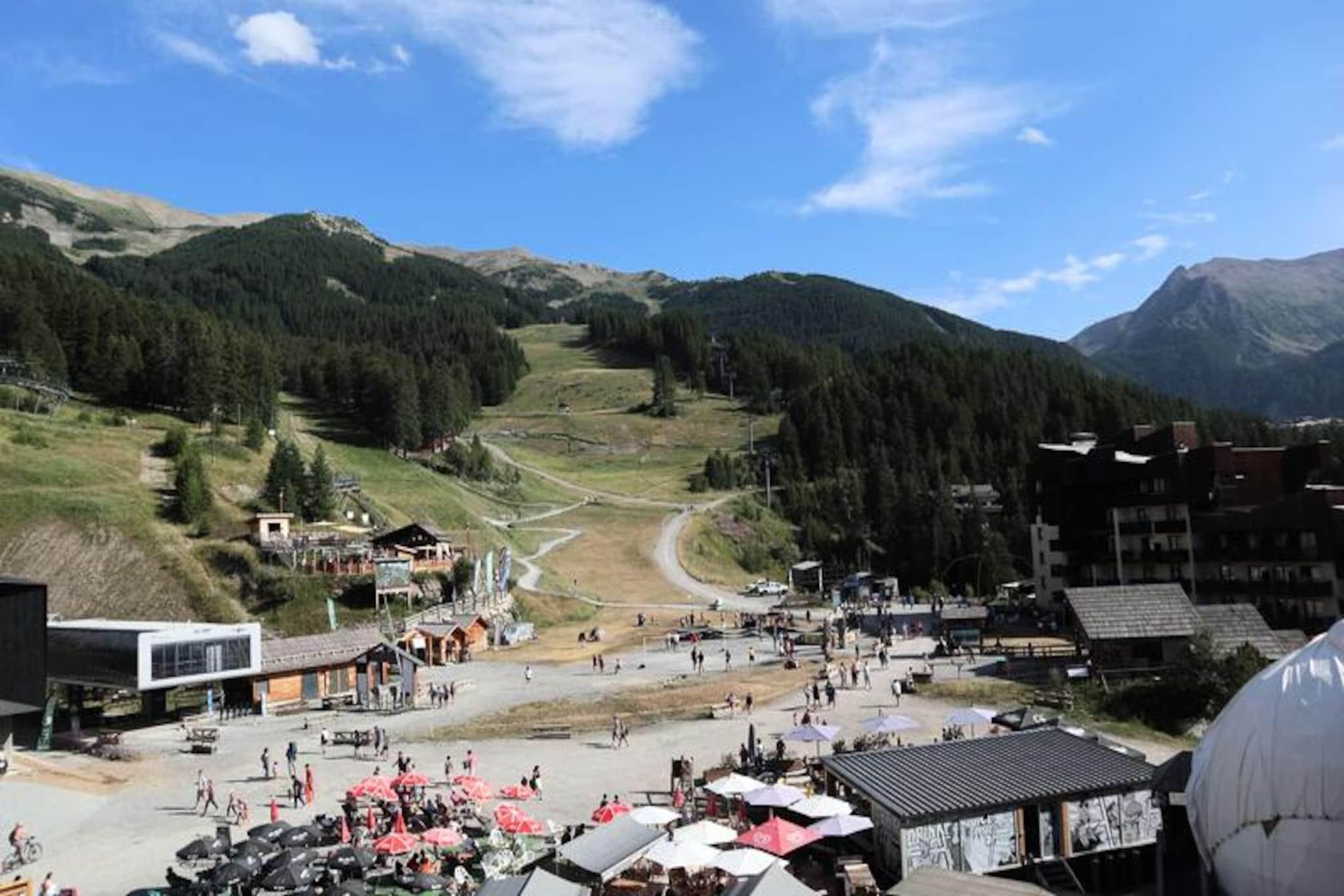 High above the lively shopping arcade in the Boussolenc residence, this charming studio apartment invites you to experience the perfect alpine getaway. With ski-in/ski-out access right from the sixth floor, you’ll wake up to breathtaking views of the slopes from your south-facing balcony and step directly into the heart of the action. Whether you’re here for winter sports or summer adventures, this cozy retreat offers an unbeatable location in the center of the resort. The atmosphere is warm and welcoming, making it an ideal choice for couples or solo travelers seeking comfort and convenience. \n\nInside, the studio has been tastefully renovated to combine modern amenities with alpine charm. The living room features a comfortable double sofa bed, perfect for relaxing after a day on the slopes. The open-plan kitchen is fully equipped, allowing you to prepare meals with ease, while the stylish shower room with WC ensures a refreshing start to your mornings. A ski locker on the ground floor adds practicality, making your stay seamless and stress-free. \n\nStep outside and immerse yourself in the vibrant resort life. With the shopping center just below, you’ll find everything you need, from restaurants and cafes to ski rental shops and boutiques. The slopes are right at your doorstep, offering endless opportunities for skiing, snowboarding, or simply soaking in the alpine scenery. In summer, the area transforms into a haven for hiking, mountain biking, and exploring the stunning landscapes of the French Alps. \n\nWhether you’re chasing powdery snow or sunlit trails, this studio apartment is your gateway to unforgettable mountain adventures. Let the charm of the Boussolenc residence and the beauty of the Alps create memories that will last a lifetime.