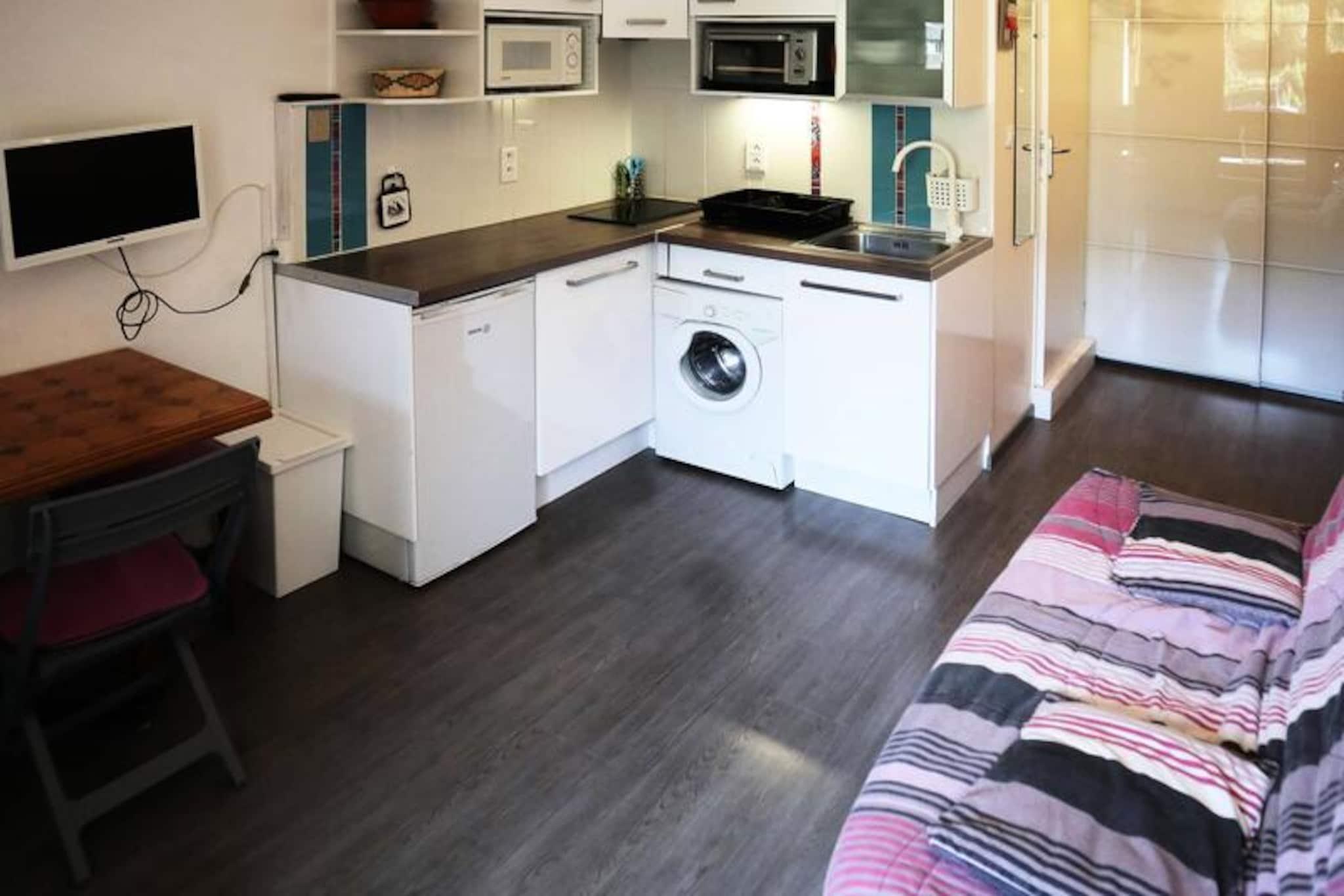 High above the bustling heart of the resort, this fully renovated studio apartment in the Boussolenc residence offers a perfect blend of convenience and alpine charm. Situated on the seventh floor with direct ski-in/ski-out access, this cozy retreat is ideal for couples or small groups seeking an unforgettable mountain getaway. From its south-facing balcony, soak in panoramic views of the slopes while enjoying the crisp mountain air and the vibrant energy of the resort below. Whether you're here for winter sports or summer hikes, this location places you right in the center of it all. \n\nInside, the studio is thoughtfully designed to maximize comfort and functionality. The living room features a plush double sofa bed (160 cm) that ensures restful nights after days of adventure. The open-plan kitchen is fully equipped, making it easy to prepare hearty meals to fuel your activities. A modern shower room with WC and the added convenience of a washing machine complete the amenities, ensuring a hassle-free stay. Warm and inviting, the apartment is a welcoming haven after a day on the slopes or trails. \n\nThe Boussolenc residence is perched just above the shopping arcade, giving you immediate access to a variety of shops, restaurants, and services. Whether you need ski equipment, groceries, or a cozy café to unwind, everything is just steps away. The ski locker on the ground floor adds practicality, making it effortless to store your gear and head straight to the slopes. \n\nChoose this studio for its unbeatable location, modern comforts, and breathtaking views. Whether you're chasing powdery descents or serene alpine trails, this property offers the perfect base for your adventures in the French Alps.