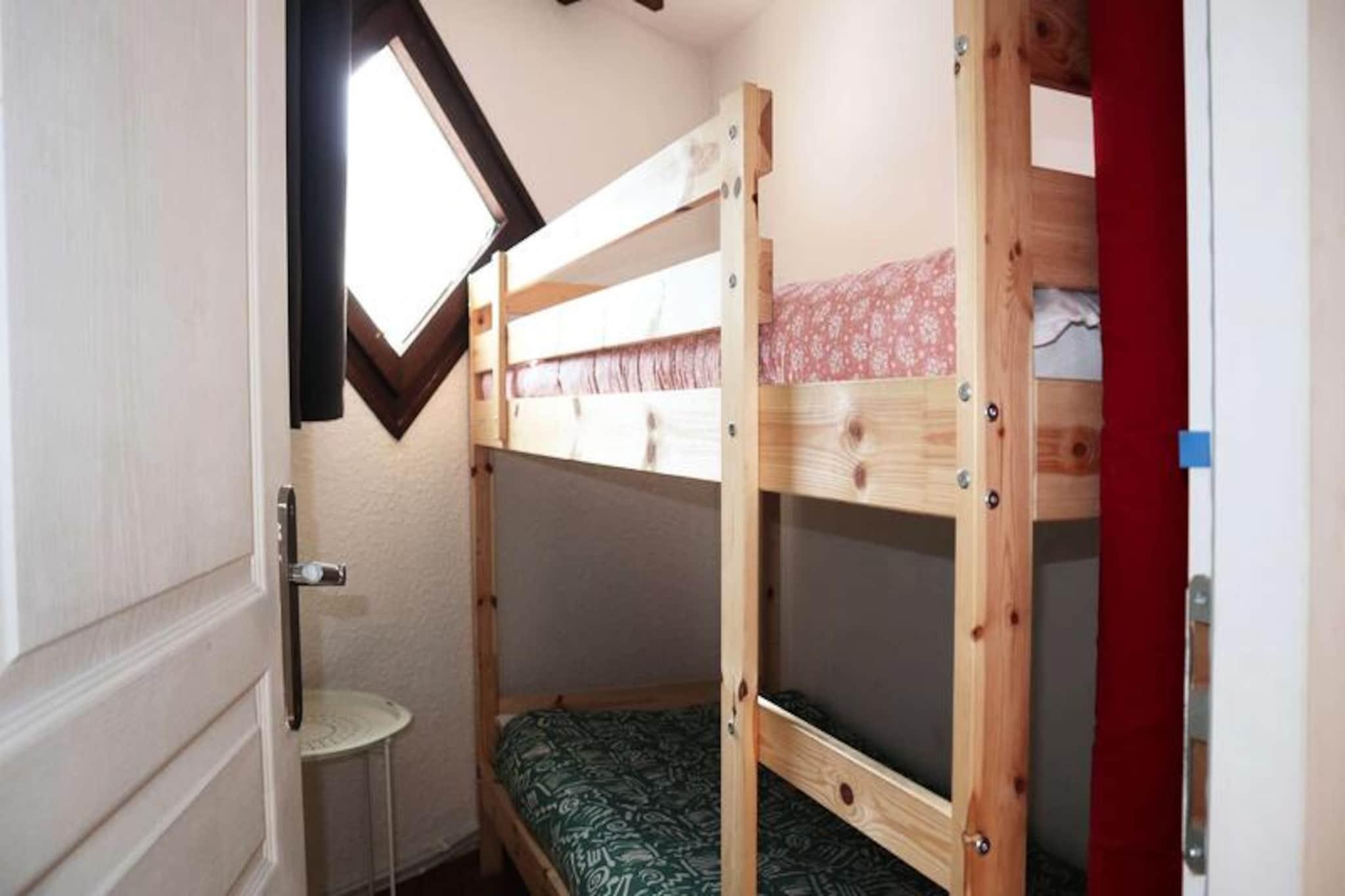 High above the bustling heart of the resort, this delightful studio apartment in the Boussolenc residence offers a cozy retreat with unbeatable ski-in/ski-out convenience. Imagine stepping out directly onto the slopes, with the vibrant energy of the shopping arcade just below, making this the perfect base for your alpine adventure. From the south-facing balcony on the sixth floor, soak in the breathtaking views of the snow-covered pistes as you sip your morning coffee or unwind after a day on the mountain. Designed to comfortably accommodate up to four guests, the studio features a thoughtfully arranged layout. The living room includes a double sofa bed, while a sleeping alcove with two single bunk beds provides a snug and private space for restful nights. The kitchenette is equipped for preparing hearty meals, and the bathroom with toilet ensures all the essentials are at hand. A private ski locker on the ground floor adds to the convenience, making your stay as seamless as possible. Situated in the center of the resort, you'll have everything you need within easy reach. Whether it's ski rentals, local eateries, or après-ski entertainment, the vibrant atmosphere of the area ensures there's never a dull moment. In the summer, the region transforms into a haven for hikers and nature enthusiasts, offering trails that wind through stunning alpine landscapes. Whether you're here for thrilling winter sports or serene summer escapes, this charming studio is your gateway to unforgettable mountain memories.