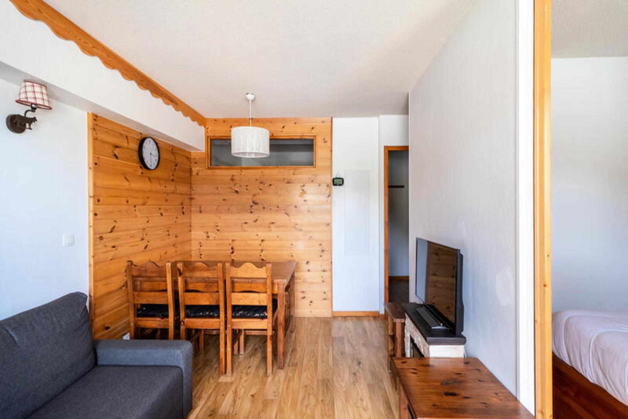 The apartment situated at an altitude of 1,800 meters, is ideally located in the heart of the Bois-Méan resort, surrounding a central square with shops, bars, and restaurants. This vibrant location offers easy access to both the snow front and the slopes, making it a perfect choice for ski enthusiasts. This 2-room apartment, with a surface area of 35m², is designed for up to 6 people. The apartment is equipped with a fully functional kitchen, including a dishwasher, microwave grill, and essential cooking tools, making it ideal for preparing meals with family or friends. The sleeping arrangements include a double bedroom with a 140x190 bed, a sleeping area with two 80x190 single beds, and a sofa bed in the living room. The bathroom features a bathtub, perfect for unwinding after a day of activities. For added convenience, the apartment includes a private ski locker, ideal for storing ski equipment. The residence provides central heating and requires a deposit of 400 euros. Its proximity to shops, services, and direct access to the slopes makes it a highly desirable option for those looking to enjoy both comfort and convenience during their stay.