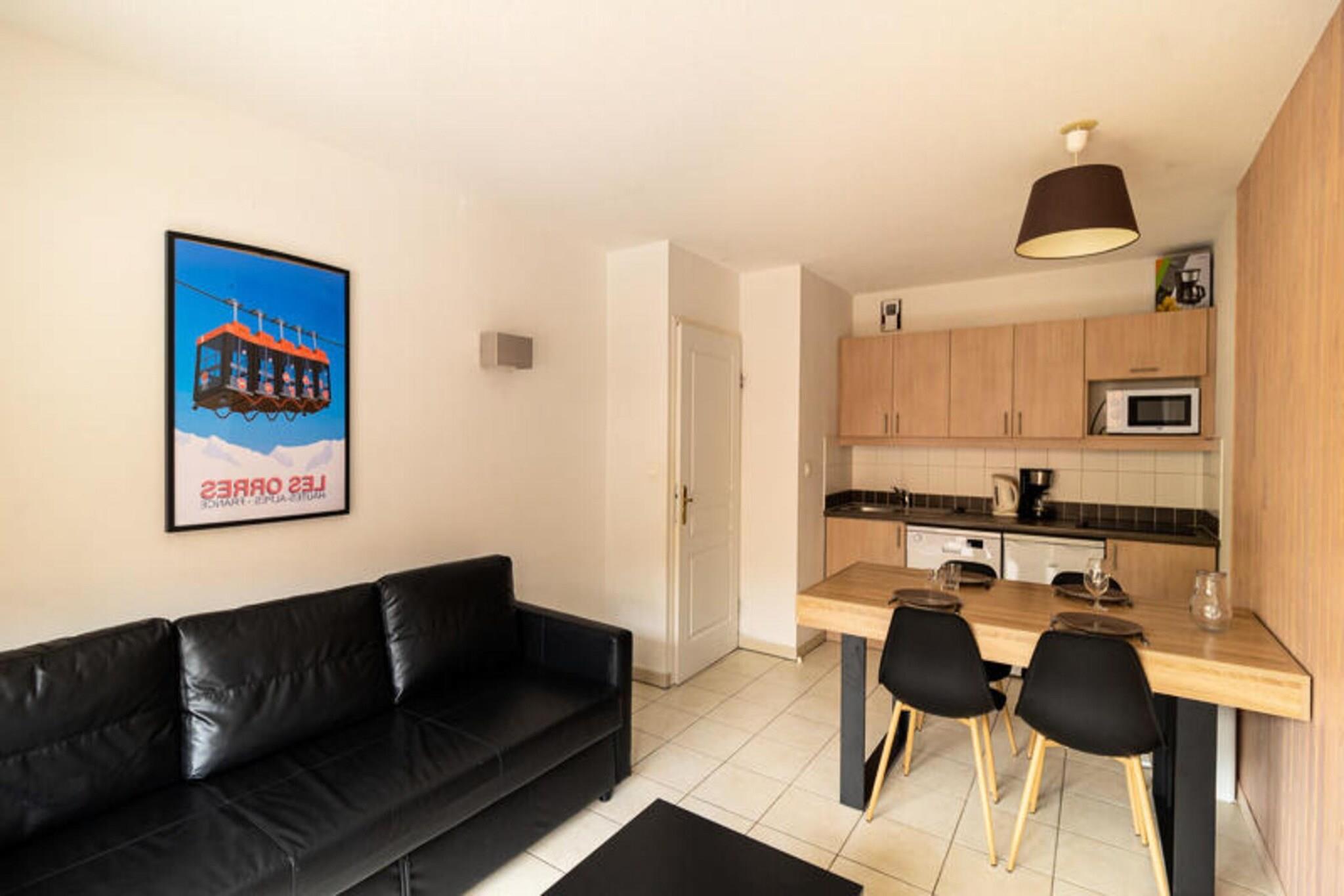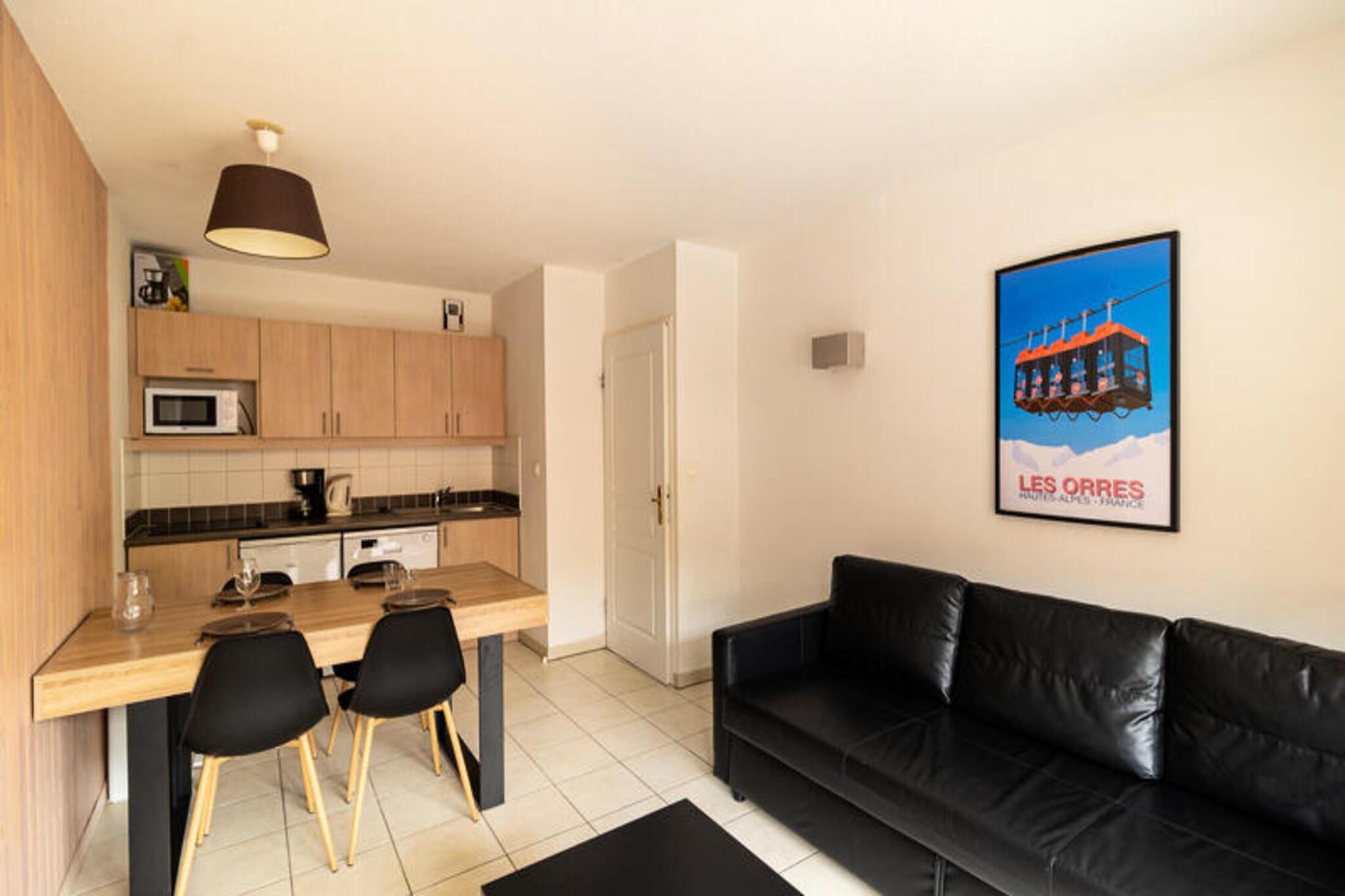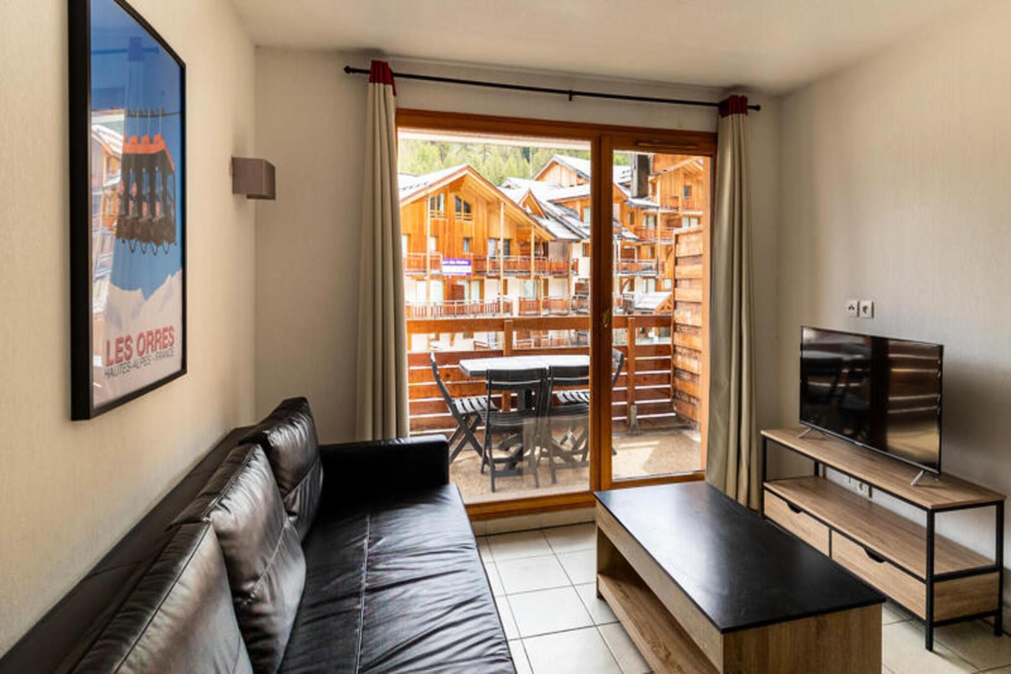 Property along with a serene and modern ambiance offers a cozy retreat for up to 4 guests in a 33m² apartment. The accommodation includes a separate bedroom with a double bed (140x190 cm) and a convertible sofa bed (140x190 cm) in the living room. Guests can relax on the balcony, enjoying views of the valley and Lake Serre-Ponçon. The apartment is non-smoking and does not permit pets. Additional services, such as underground parking spaces, are available for rental. There are no free activities offered directly within the apartment, but the residence provides access to a range of local services and attractions. Nestled at an altitude of 1800 meters, the property is ideally located in the heart of the Orres 1800 resort. It is just steps from the ski slopes, hiking trails, and the main village amenities, including shops, restaurants, and snack bars, all within 200 meters. The tourist office, ESF and ESI offices, and a daycare center are located nearby, making it convenient for families. The apartment also benefits from its proximity to the mountain bike trails and hiking paths during the summer months, and is easily accessible from transport hubs for both winter and summer visits. The apartment features a fully equipped kitchen with all necessary appliances, including a stove, microwave, and refrigerator, providing everything needed for a self-catered stay. A dining area is included, offering ample space for meals and gatherings. The bathroom comes with a bathtub for added comfort, and the residence includes a heated indoor swimming pool (seasonal), ideal for relaxing after a day of outdoor activities. The apartment is accessible via an elevator and offers ample storage space at the entrance for added convenience.