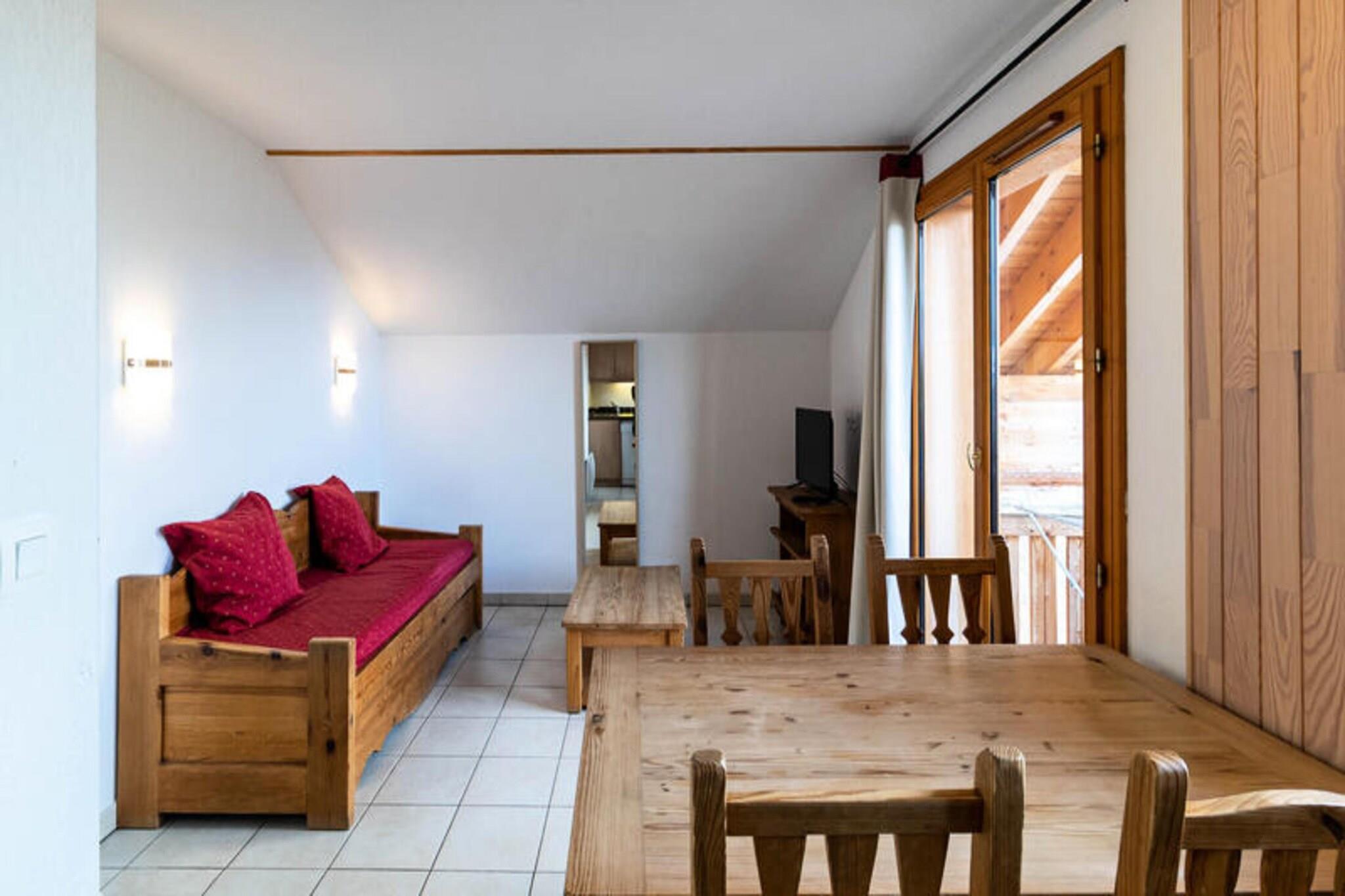 Le Balcon des Airelles is a charming wood and stone residence nestled at an altitude of 1800 meters, offering stunning views of the valley, larch forest, and surrounding mountains. The residence features modern and comfortable accommodations that can host 4 to 10 people, all equipped with a balcony overlooking the breathtaking landscape. Each apartment includes a living area with a sofa bed, a fully equipped kitchen, a bathroom with a bathtub, and storage for your convenience. For those seeking additional comfort, underground parking spaces are available for rent, and a private ski box is provided for ski equipment. Pets are not specified as allowed. Located in the heart of the Orres 1800 resort, the residence is conveniently opposite the tourist office, with the ESF and ESI offices nearby, making it ideal for families and skiers. The resort’s slopes and hiking trails are just a short walk away, ensuring easy access to outdoor activities. The daycare center, also within walking distance, is perfect for families with young children. With a quiet location slightly set back from the shopping square, guests can enjoy a peaceful retreat while being close to the heart of the resort. Guests can relax in the beautiful heated indoor swimming pool, available seasonally during both winter and summer months. The residence provides everything needed for a comfortable stay, including a fully equipped kitchen with essential appliances, and a ski locker for your convenience. The scenic views from the west-facing balcony make it an ideal spot for enjoying sunsets, whether with family or friends.