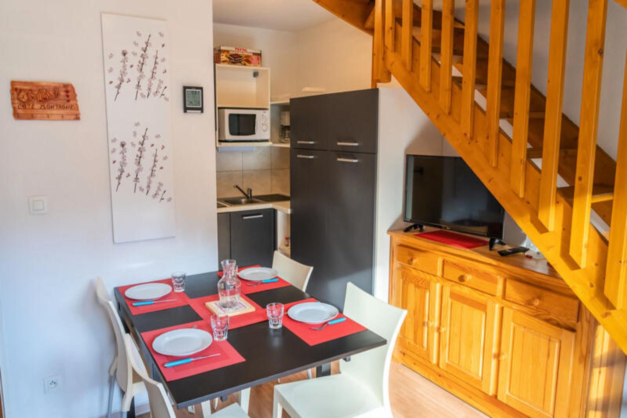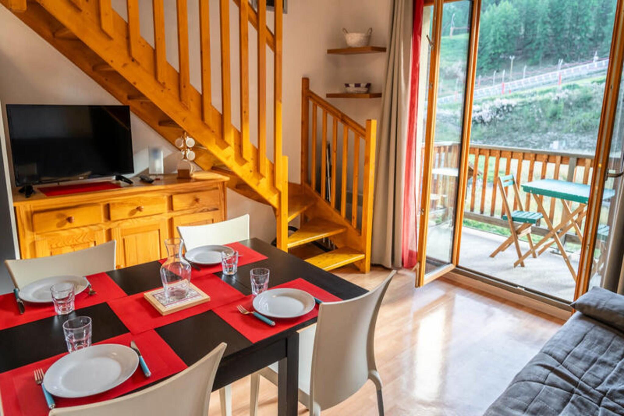It is a family-friendly residence located at the foot of the slopes in the hamlet of Bois Méan, at an altitude of 1800 meters. The 40 m² duplex is ideal for up to 6 people, offering a comfortable living space with a sofa bed in the living room and a fully equipped kitchen (including a dishwasher, microwave grill, coffee machine, kettle, toaster, and raclette machine). The dining table accommodates up to 6 guests for family meals. Perfectly located, the residence offers direct access to the slopes, making it especially convenient for families with young children. It is situated just above the tourist office, ski lift ticket offices, and the ESF des Orres 1800, with shops, equipment rentals, and restaurants located nearby or even on-site. In addition to the comfortable living spaces, the residence offers various amenities for a relaxing stay. Guests can enjoy the heated indoor swimming pool and solarium with deckchairs for lounging. Each morning, you can order fresh bread and pastries from the communal lounge.