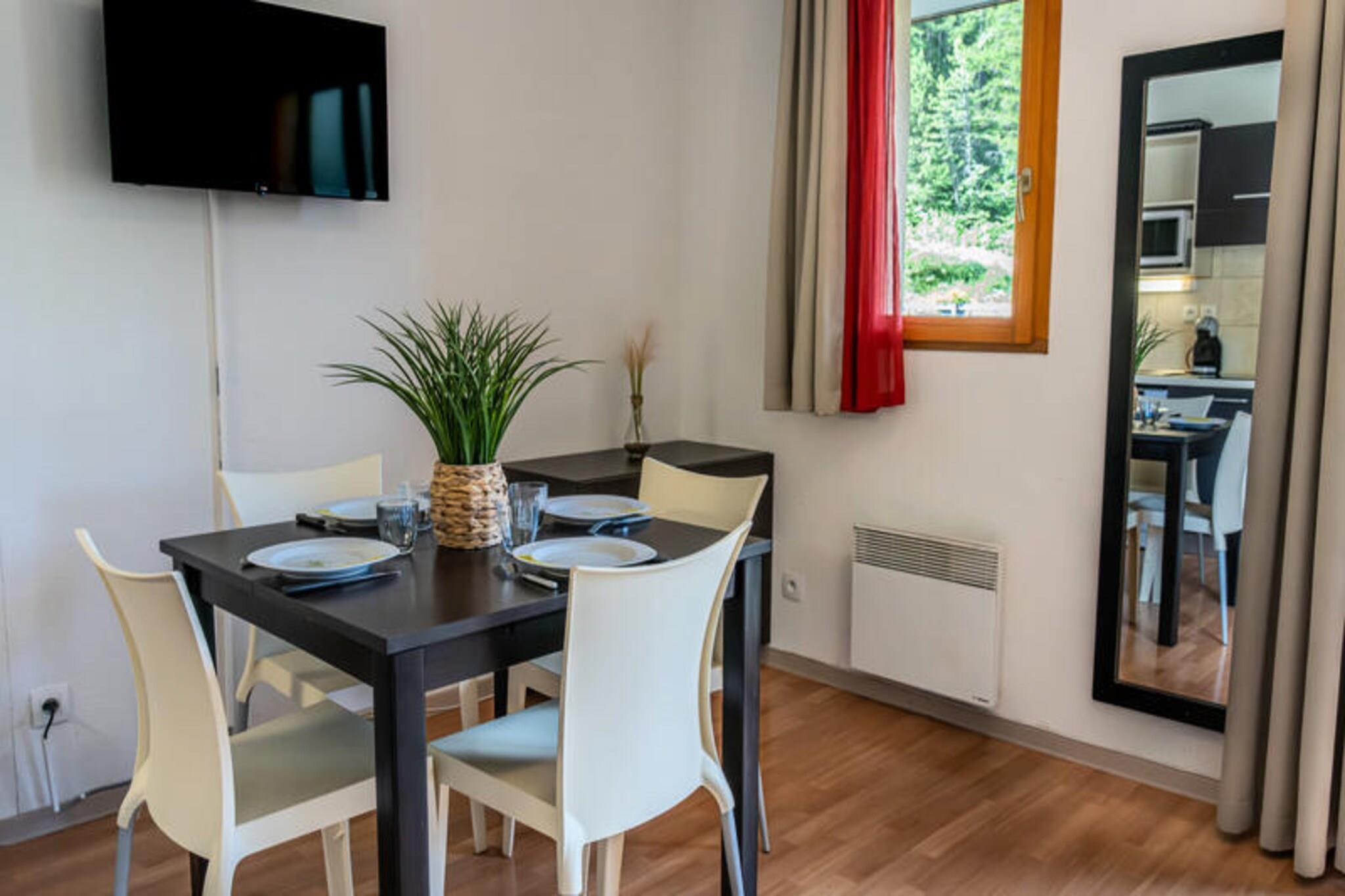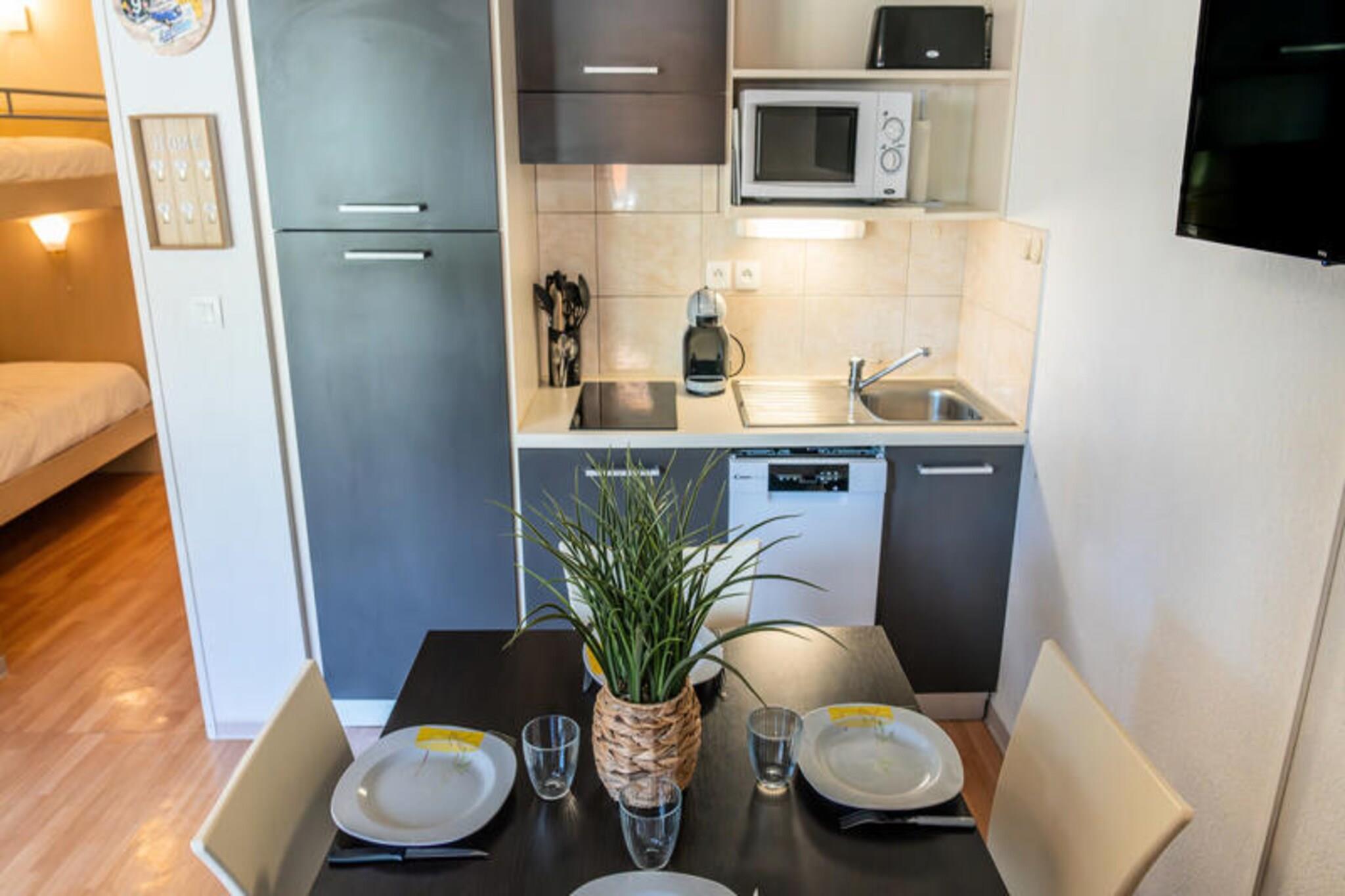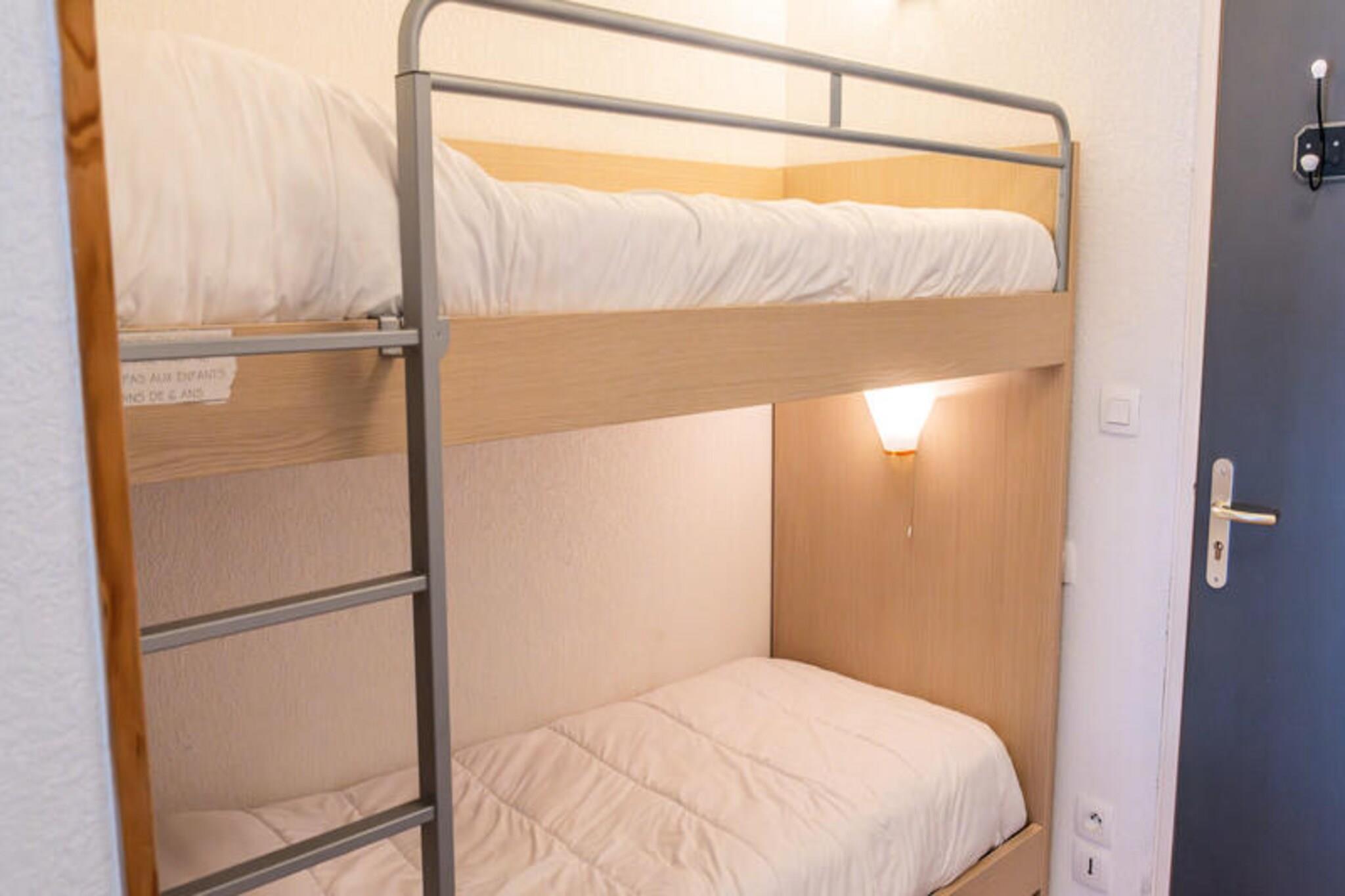 This property, along with its cozy and family-friendly setup, is a west-facing 23 m² studio designed to accommodate up to 4 people. The apartment includes a bedroom area with two bunk beds and a living room with a convertible sofa that can be transformed into a double bed. A private balcony, complete with garden furniture, offers guests the opportunity to relax outdoors. While pets are not specifically mentioned, the apartment provides essential amenities for a comfortable stay, including a television, dishwasher, and a fondue set. The residence also offers a heated indoor swimming pool with a whirlpool, accessible on the same floor as the apartment, though the pool is only available seasonally. Additionally, there is a private ski locker for guests to store their equipment. Free activities are not specified, but the location provides easy access to the slopes, making it ideal for a ski-in/ski-out experience.