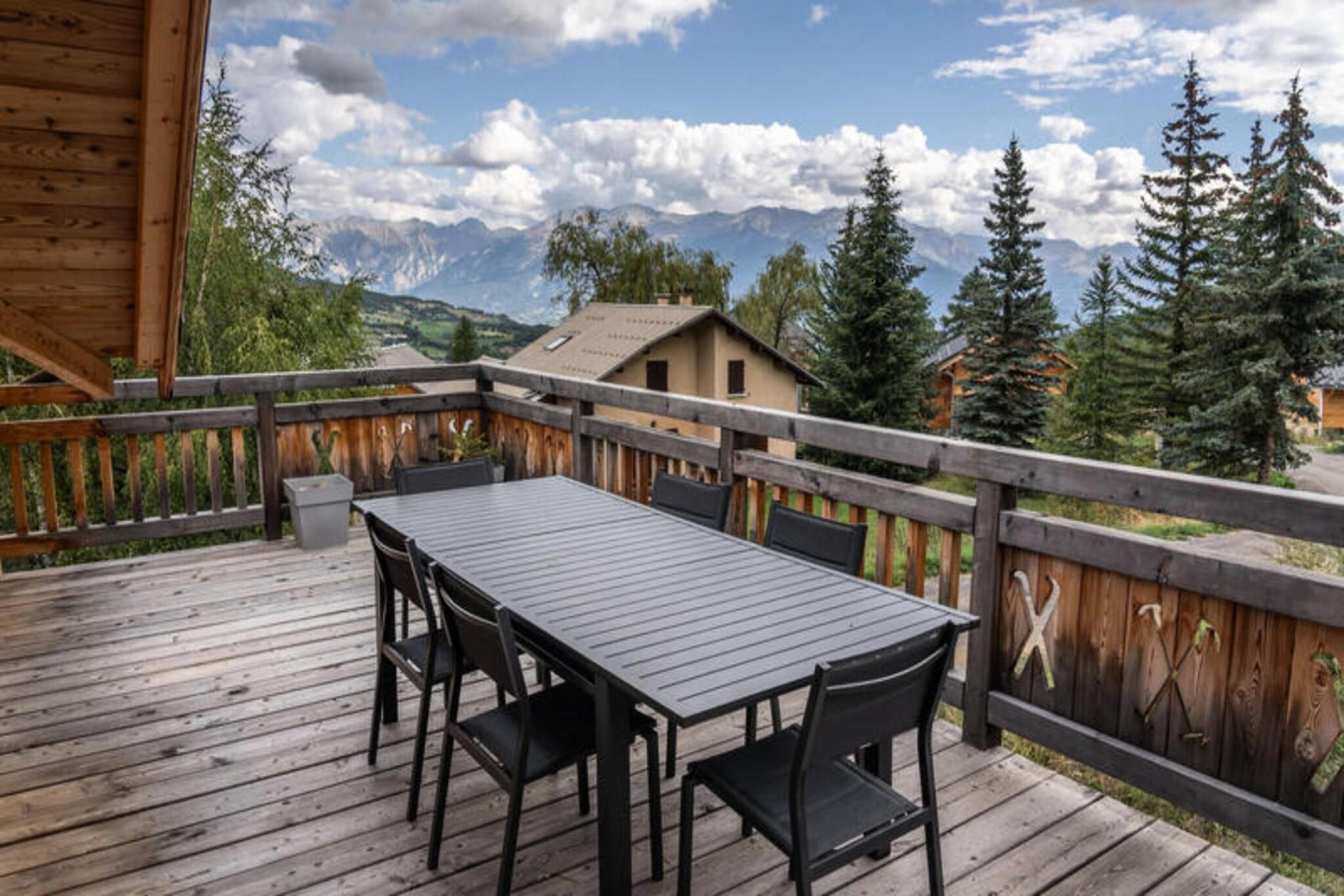 Property, along with its spacious design, offers a luxurious 205 m² mountain chalet that comfortably accommodates up to 15 guests. The chalet features a variety of sleeping arrangements across multiple levels, including double beds, single beds, and bunk beds. There is a large living room equipped with a television, fiber Wi-Fi, and Bluetooth speaker, as well as a dining area that can seat 15 guests. The chalet boasts a south and west-facing balcony with stunning views, perfect for relaxing during summer evenings. While pets are not allowed, additional services such as linen, bed-making on arrival, and end-of-stay cleaning are included in the rental. The property does not mention free activities, but it offers a free shuttle service to the resort center every 10 minutes. Located at 1,550 meters in the peaceful Pramouton district, this chalet is ideally positioned for both winter and summer activities. The Les Orres ski area is easily accessible with ski lifts just 350 meters away, while a free shuttle will take you to the heart of the resort, where you can enjoy a variety of activities, entertainment, and local amenities such as bakeries, restaurants, and bars. In summer, the nearby heated outdoor swimming pool offers panoramic views of the Embrunais Valley and Lake Serre-Ponçon. The location also offers picturesque views of the surrounding mountains, making it a perfect destination year-round. The chalet’s kitchen is fully equipped for preparing large family meals, with a dishwasher, wine cellar, oven, microwave, washing machine, and various small appliances such as a coffee maker, kettle, toaster, and mixed coffee maker. The open kitchen seamlessly connects to the spacious living area, making it perfect for socializing while cooking. The chalet also features a cozy reading corner, darts, and a chessboard for added entertainment. For added convenience, three bathrooms with showers and three separate toilets are available. The property’s interior is designed with natural light and LED lighting, creating a warm, inviting atmosphere throughout the chalet.