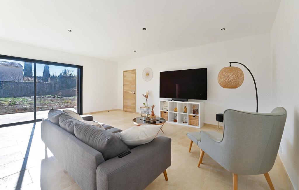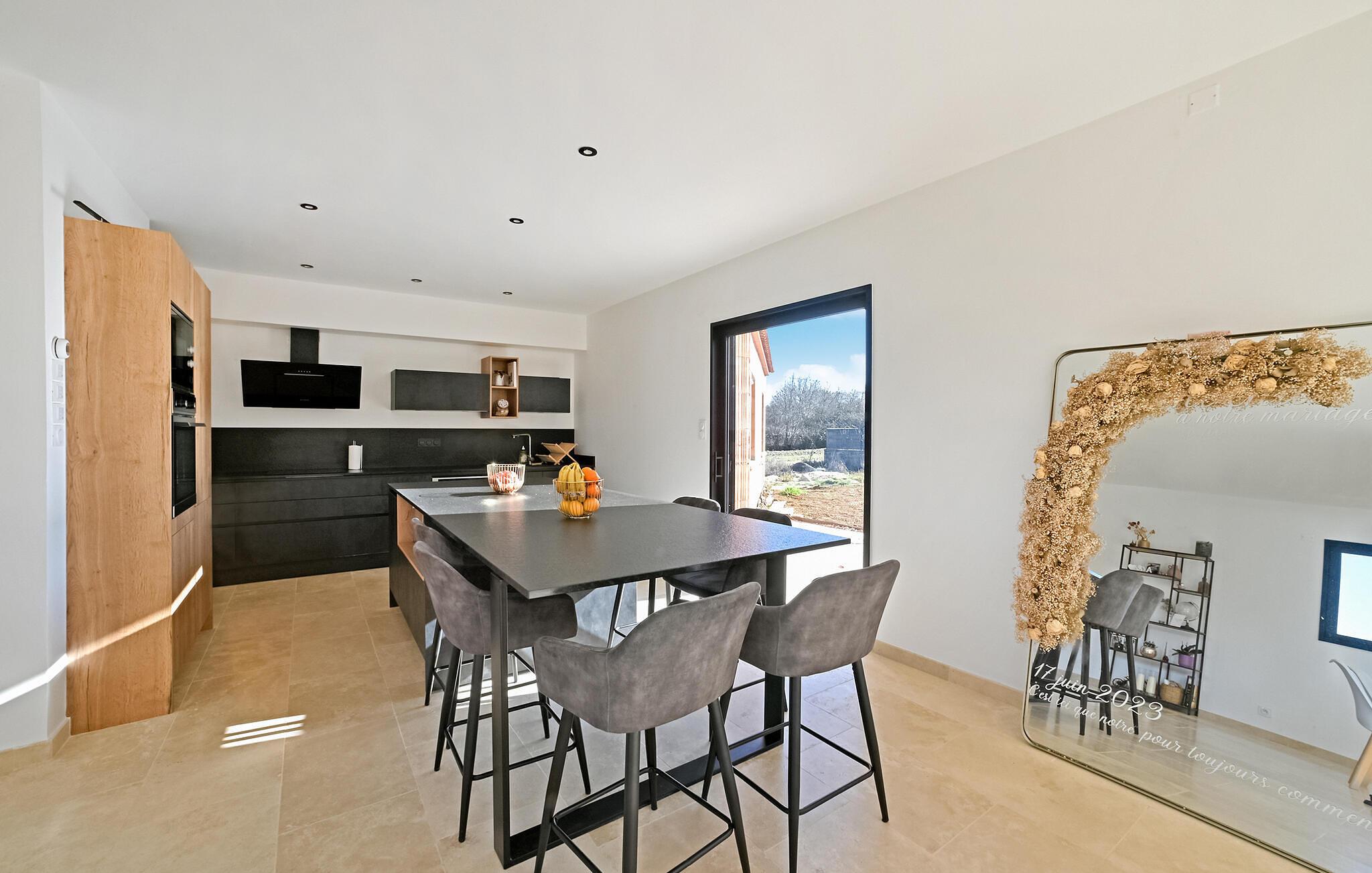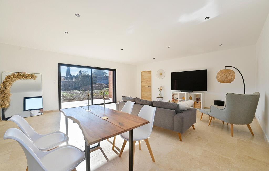 Dieses großzügige und moderne Ferienhaus in ländlicher Idylle wird Sie mit seinem hellen und stilvoll eingerichteten Interieur begeistern. Zaubern Sie in fröhlicher Runde kulinarische Highlights, planen Sie Ihre Unternehmungen bei ausgedehnten Mahlzeiten und machen Sie es sich für gemütliche Spieleabende oder ruhige Lesestunden im einladenden Wohnzimmer bequem.