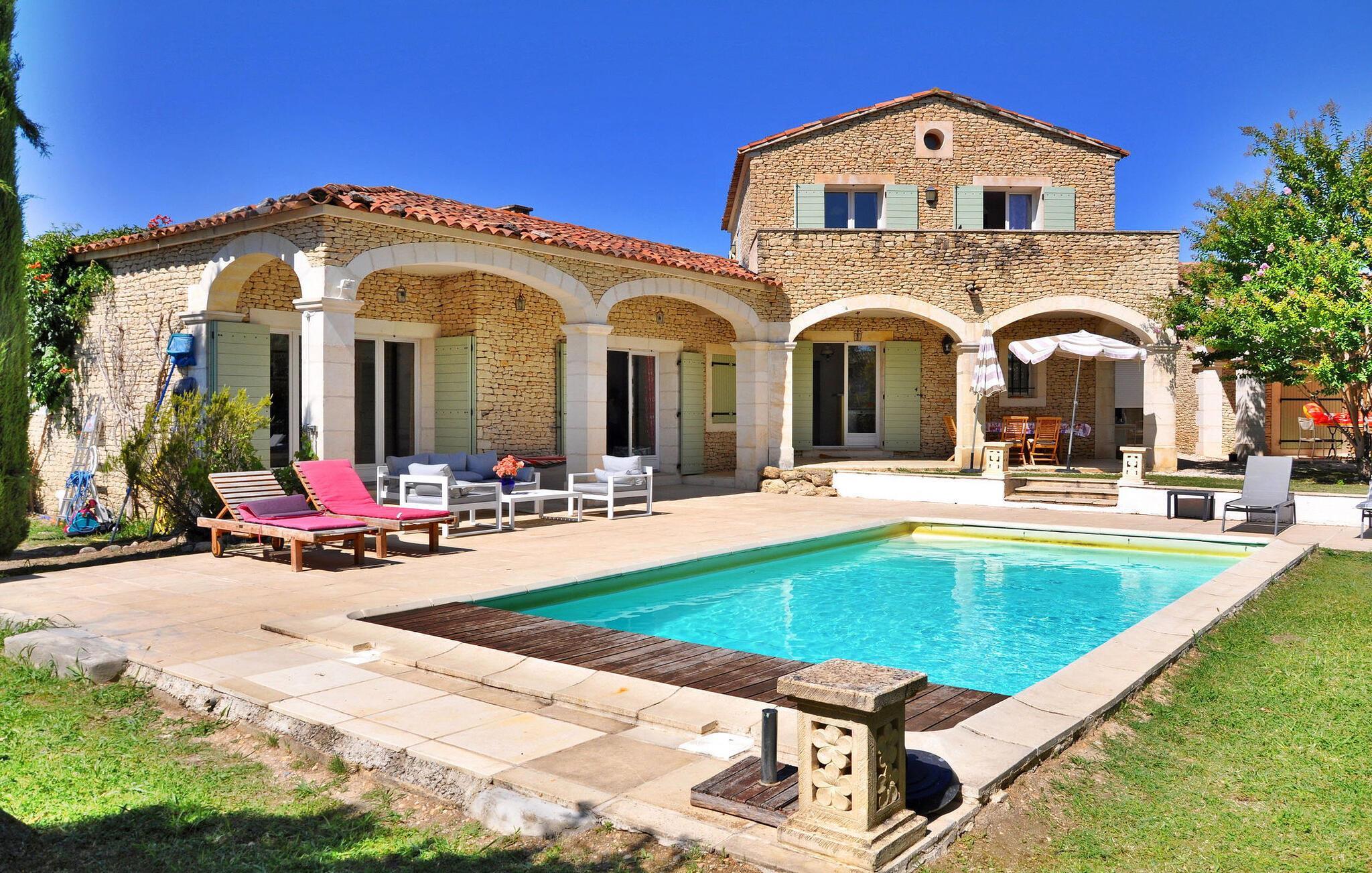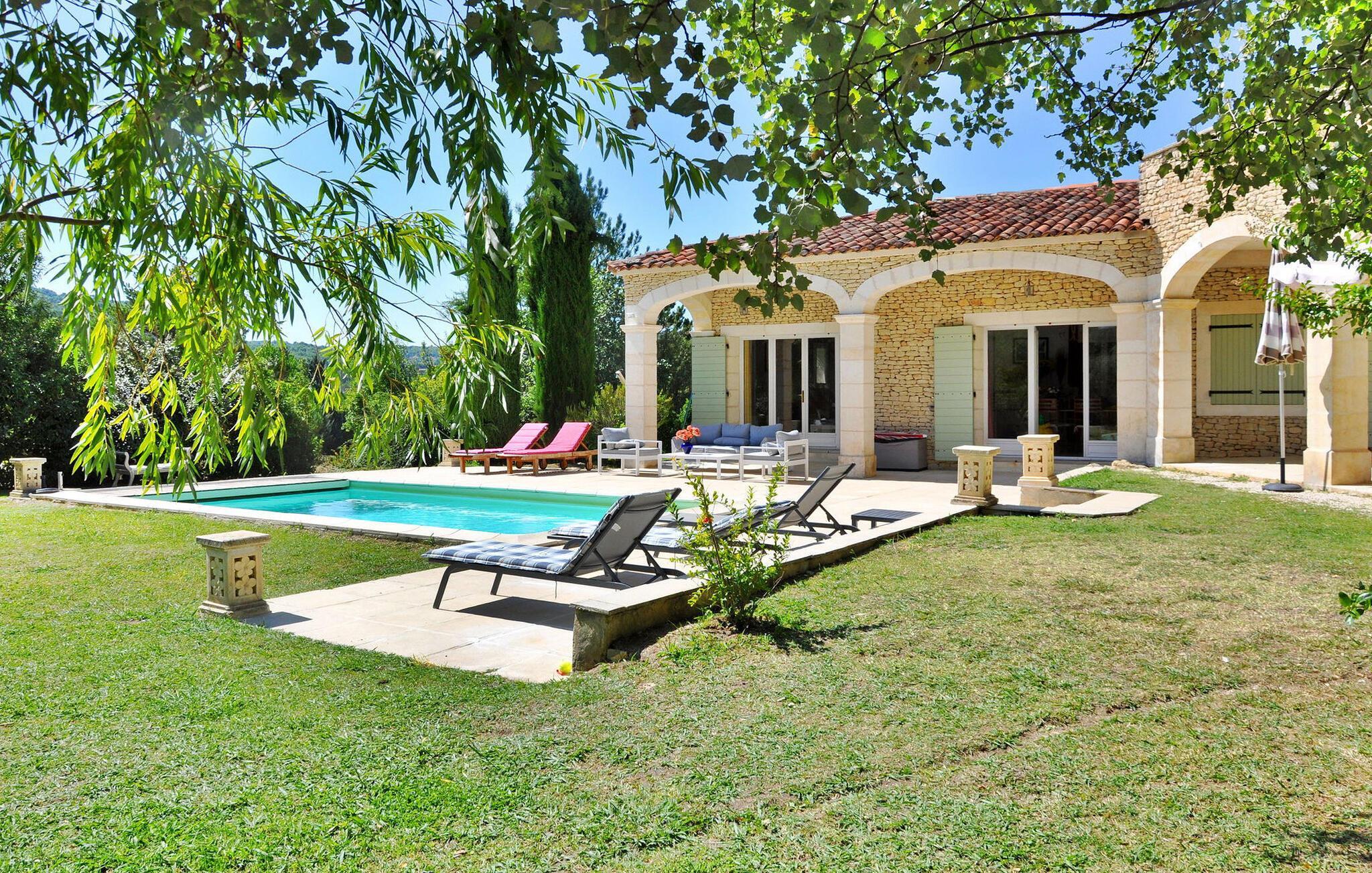 Diese geräumige Ferienvilla liegt 4 km außerhalb des lebhaften Dorfes Gordes und bietet einen idealen Rahmen für einen Familienurlaub in der bezaubernden Region Luberon. Die Villa erstreckt sich über einen weitläufigen Wohnraum und bietet eine einladende Aufteilung: Im Erdgeschoss befindet sich eine voll ausgestattete Küche. An diesen Raum schließt sich ein kombinierter Ess- und Wohnbereich an. Zwei Schlafzimmer auf dieser Etage bieten komfortable Schlafgelegenheiten und einfachen Zugang zum Garten. Wenn Sie nach oben gehen, entdecken Sie zwei weitere Schlafzimmer, jedes mit französischen Fenstern, die auf die Sonnenterrasse führen. Draußen verfügt das Anwesen über ein weitläufiges, teilweise umzäuntes Grundstück mit atemberaubender Aussicht. Eine überdachte Terrasse lädt zu Zusammenkünften im Freien ein und bietet einen einladenden Raum zum Essen und Entspannen. Der private, durch einen elektrischen Sicherheitsverschluss gesicherte Pool misst 8 x 4 m und verfügt über eine gepflasterte Terrasse mit Sonnenliegen, die den idealen Ort zum Sonnenbaden und erfrischenden Schwimmen bietet. Genießen Sie die Schönheit der Umgebung, entspannen Sie sich in dieser charmanten Villa und schaffen Sie wertvolle Erinnerungen inmitten der ruhigen Landschaften von Gordes und der verführerischen Region Luberon. Die Villa liegt unterhalb des Dorfes Gordes, in Richtung Goult. Nächste Geschäfte: Bäckerei, Post, Restaurant in Gordes, 4 km entfernt. In der Nähe können Sie im Luberon und in den Monts du Vaucluse wandern und die berühmten malerischen Dörfer des Luberon besuchen: Village des Bories, die Bergdörfer Roussillon und seine Ocker, Bonnieux, Ménerbes, Lacoste, Oppède.