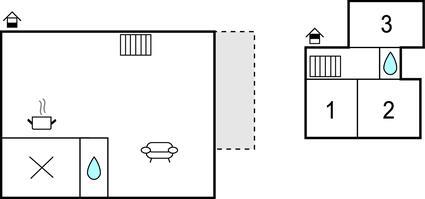 Badezimmer 4m2 (nr. 1) - WC. Warmes und kaltes Wasser. Dusche