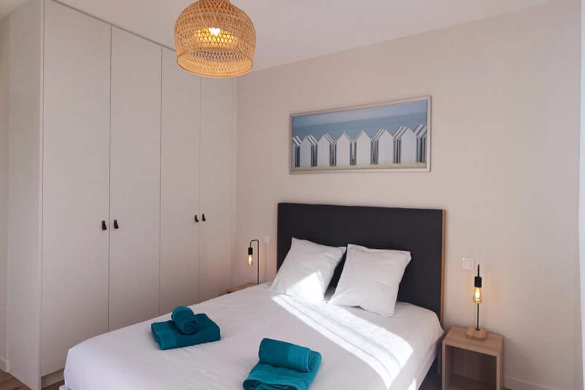 Imagine waking up to the gentle sound of the ocean breeze and the promise of a relaxing day in Les Sables d'Olonne. This charming single-story house offers the perfect blend of modern comfort and coastal tranquility, situated in a peaceful residential area close to shops and the iconic Grande Plage. Whether you're here for the Vendée Globe or simply to unwind, this property is designed to make your stay unforgettable. Step into the bright, south-facing living room where natural light pours in, creating a warm and inviting atmosphere. The open kitchen is fully equipped, allowing you to prepare delicious meals with ease. From the living room, you can access the private wooden terrace, complete with garden furniture, lounge chairs, and the option of a soothing jacuzzi for ultimate relaxation. The sleeping area includes a cozy bedroom with a queen-size bed and another with two single beds that can be joined to form a king-size bed. The sleek bathroom features a walk-in shower and modern amenities for your convenience. With private parking and thoughtful touches throughout, this home is ideal for couples or small families seeking a serene getaway. Just 4 km from the Grande Plage, 1.7 km from local shops, and 3 km from the train station, you'll find everything you need within easy reach. Whether you're exploring the vibrant town, enjoying the beach, or simply relaxing on the terrace, this property offers a perfect base for your holiday. Book now and experience the charm of Les Sables d'Olonne in style.