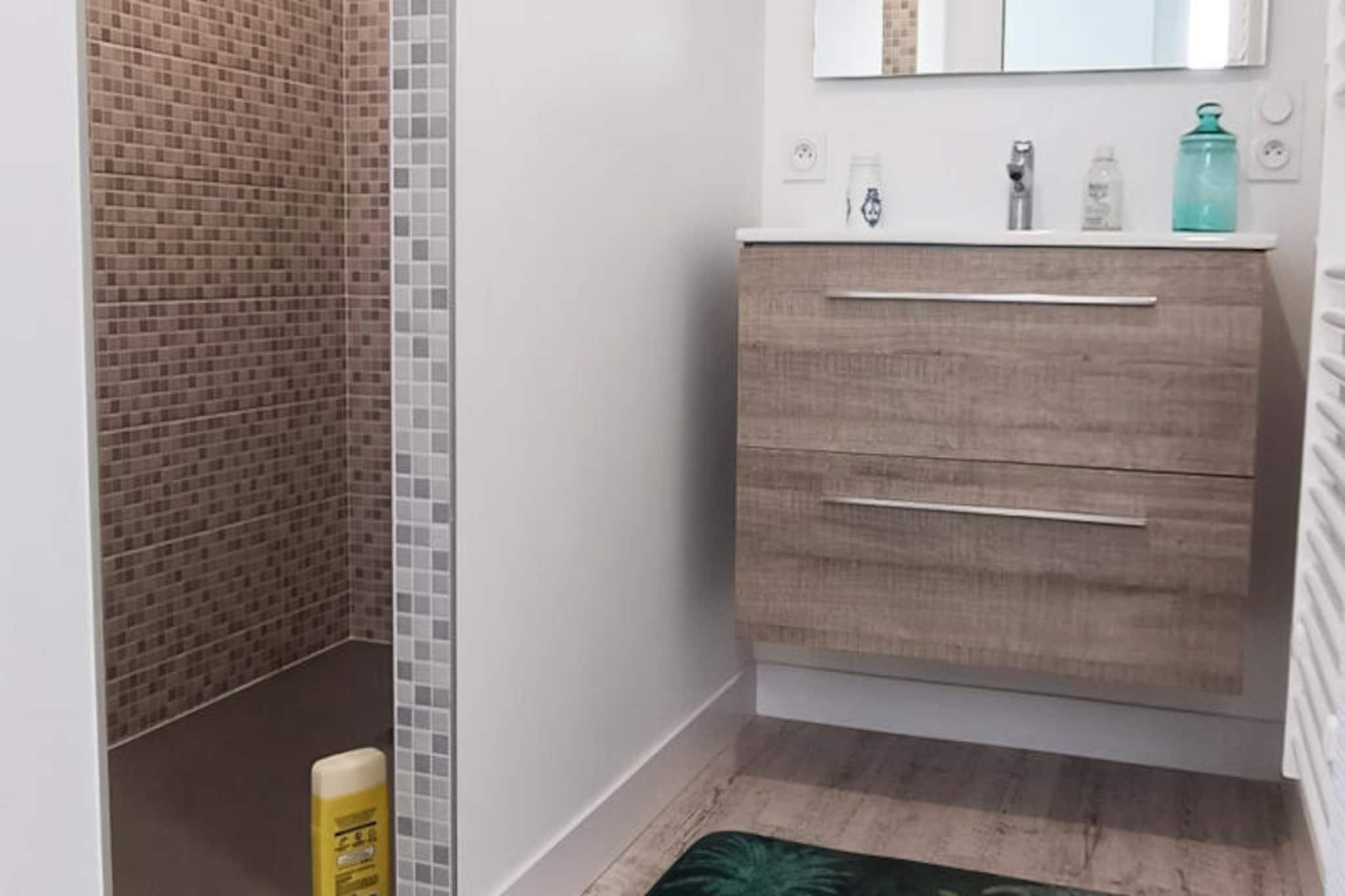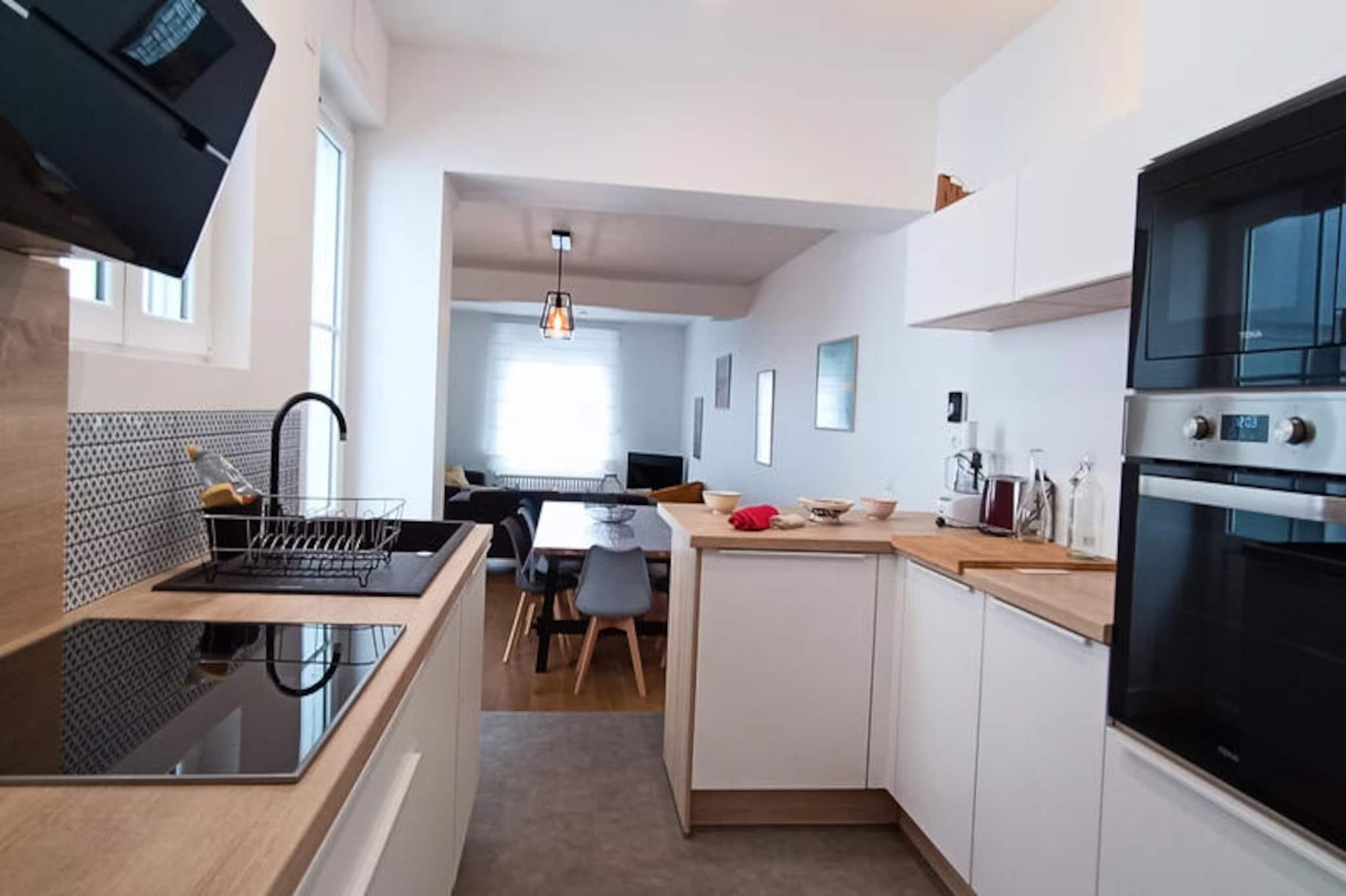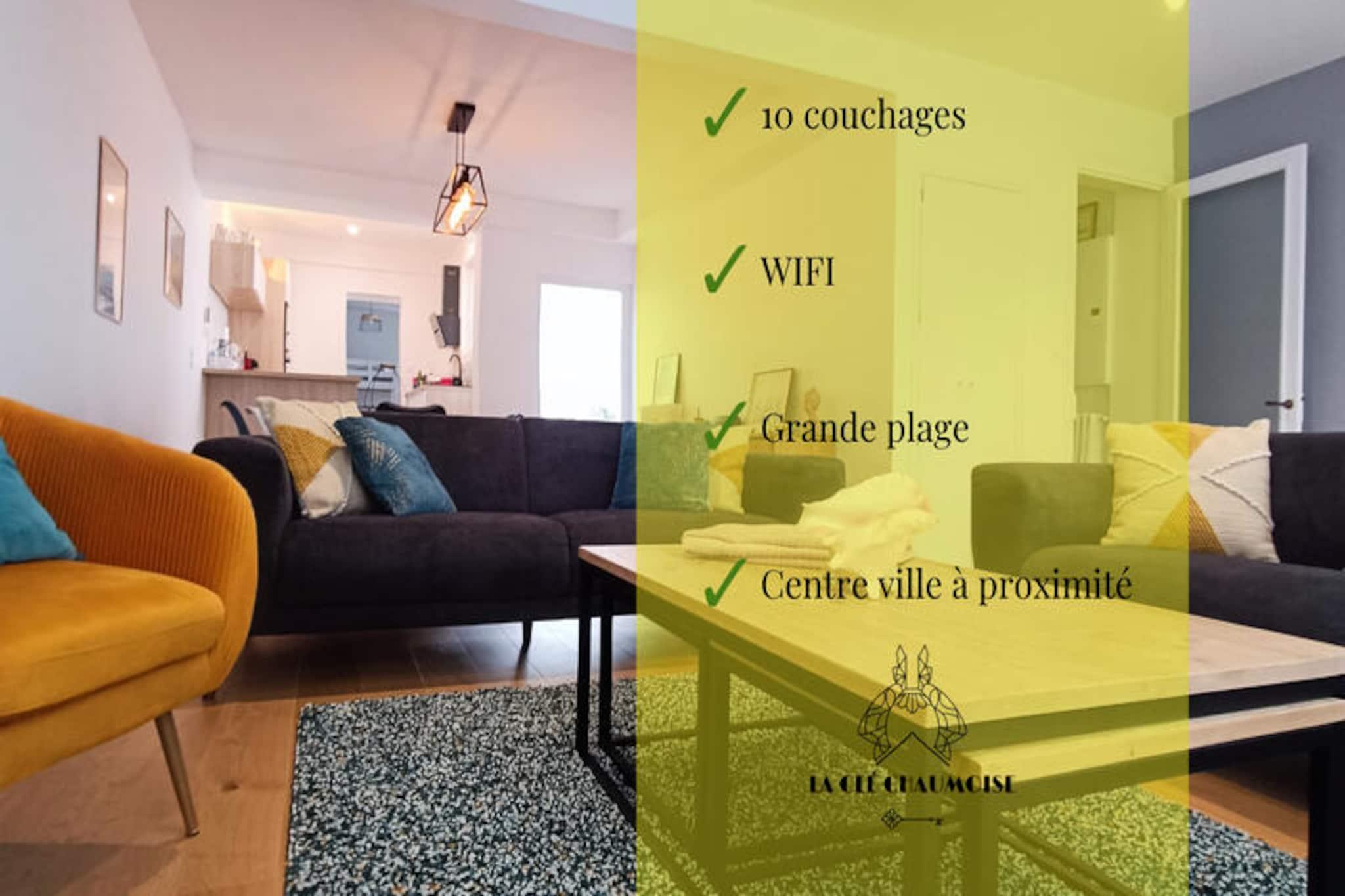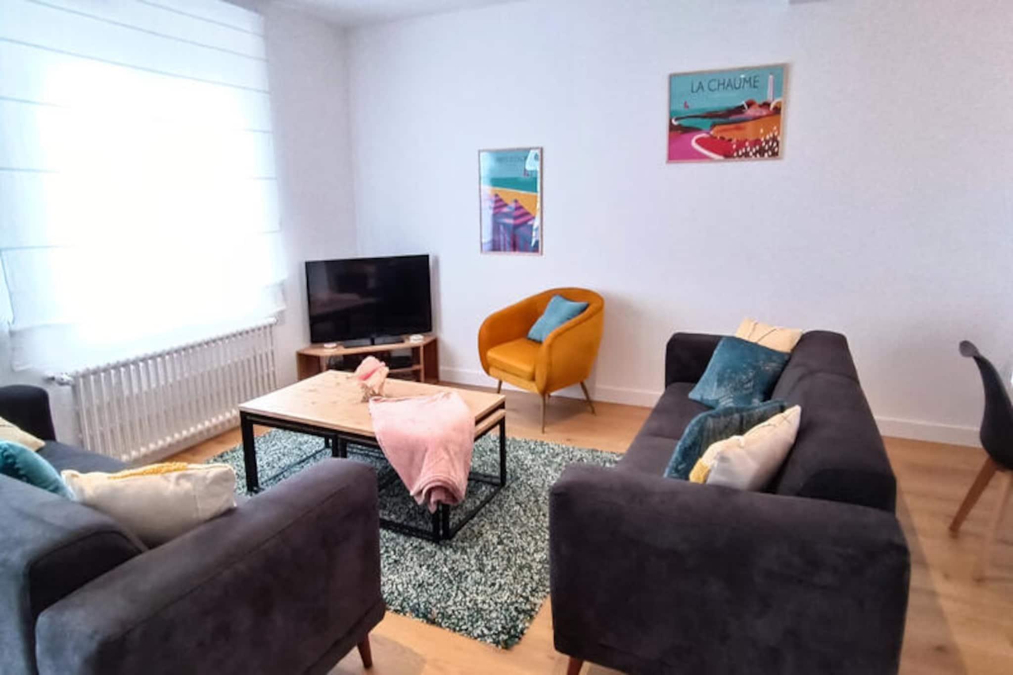 Just moments from the golden sands of Les Sables d'Olonne, this charming family home offers the perfect coastal retreat in the Presidents' district. Imagine waking up to the sound of waves and enjoying your morning coffee in the sunny courtyard before strolling just 230 meters to the main beach. The vibrant Arago market, brimming with local delicacies and fresh produce, is only 500 meters away, while nearby shops, bakeries, and restaurants add to the convenience of this idyllic location. Whether you're seeking relaxation or adventure, this home places you in the heart of it all. \n\nCompletely renovated in 2022, the house seamlessly blends modern comfort with authentic charm across its 140m² of living space. The ground floor features a spacious living area with a lounge, dining room, and fully equipped open kitchen, perfect for gathering with loved ones. Two bedrooms, one with a double bed and bunk beds and another with a double bed, offer direct access to the courtyard. A laundry area, a stylish bathroom with a walk-in shower, and two separate toilets complete the ground floor. Upstairs, the antique staircase leads to a luxurious bathroom with a shower, bathtub, and double sink, as well as a queen-size bedroom and a twin bedroom. \n\nThe outdoor courtyard is a delightful oasis for al fresco dining, relaxing, or soaking up the sun. With Wi-Fi and Orange TV throughout the property, you'll have all the modern amenities needed for a comfortable stay. Free public parking is available nearby, ensuring easy access for your adventures in Les Sables d'Olonne. \n\nWhether you're exploring the vibrant markets, enjoying the pristine beaches, or simply unwinding in this beautifully restored home, your stay promises unforgettable memories in one of France's most beloved coastal destinations.