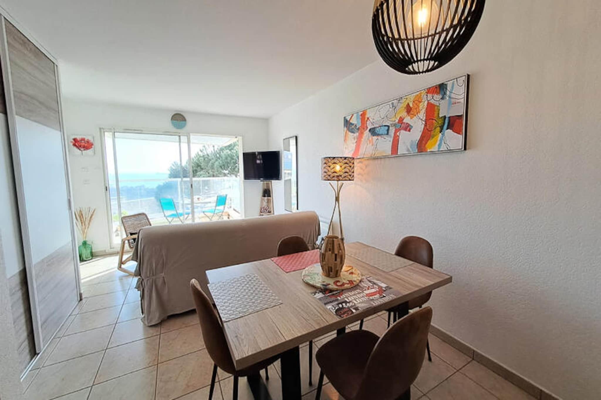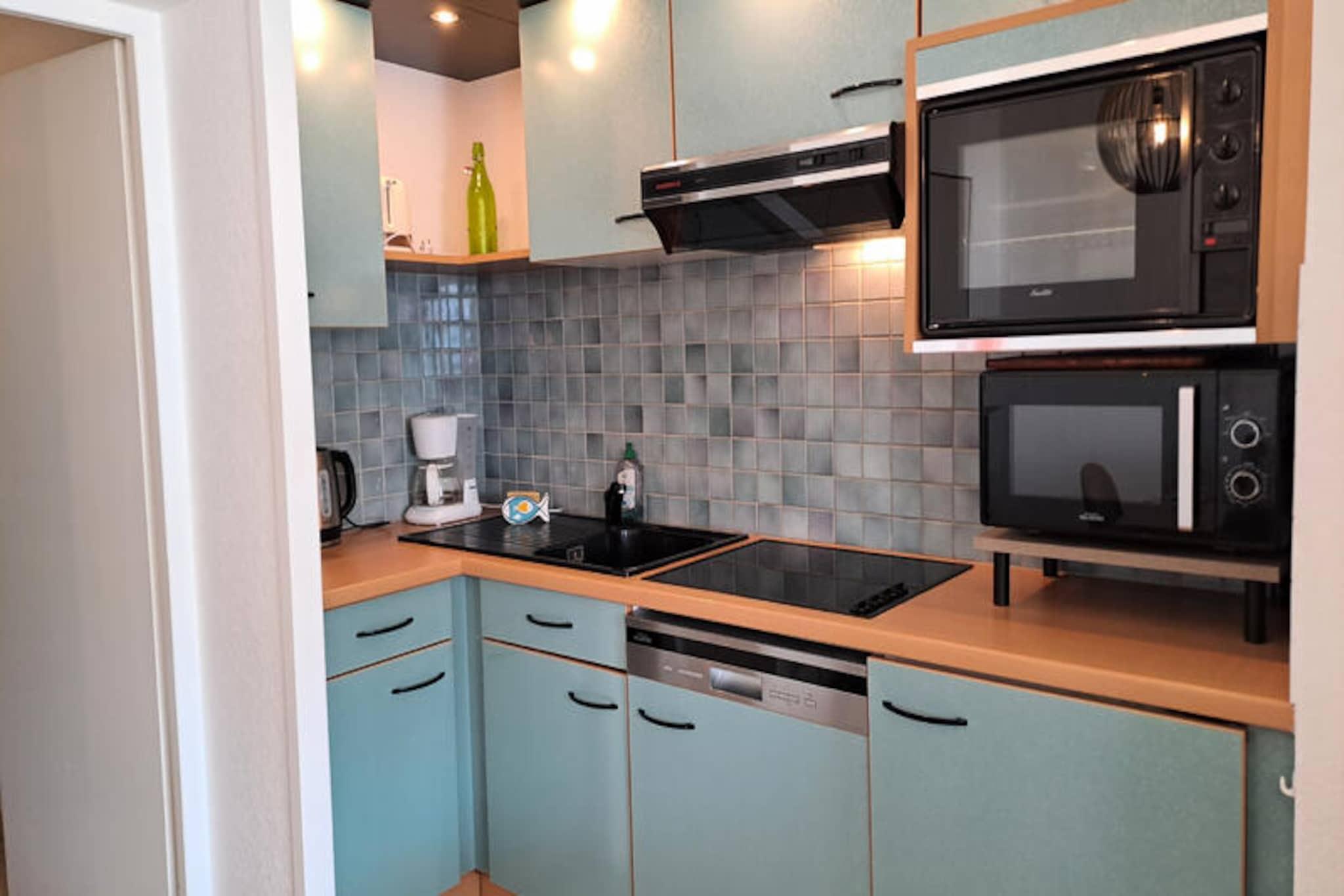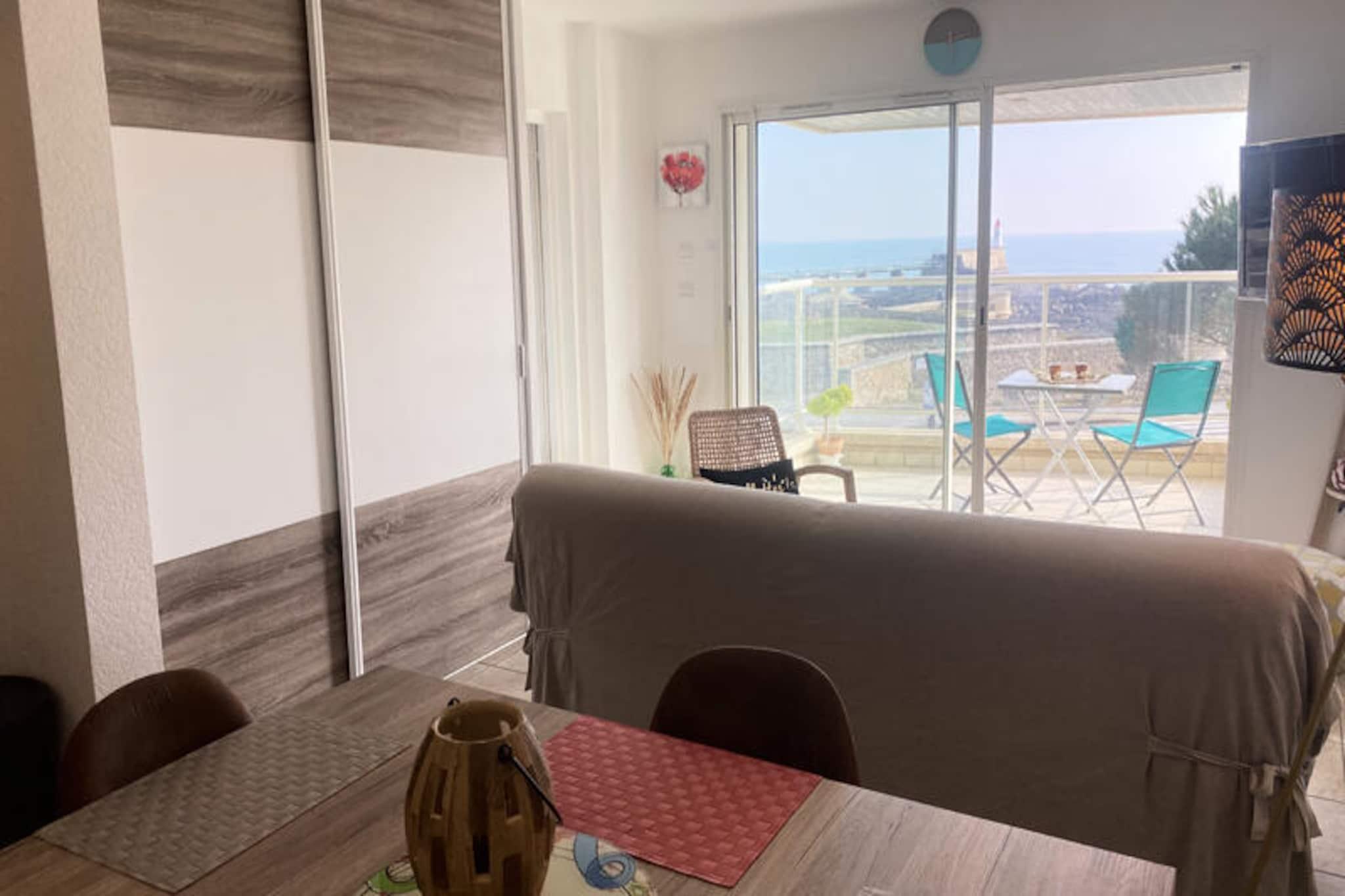 Awaken your senses to the soothing rhythm of the Atlantic Ocean in this charming apartment located in the heart of La Chaume, Les Sables-d'Olonne. With sweeping views of the sea and the historic Saint-Nicolas Priory, this 3-star retreat offers a perfect blend of tranquility and coastal charm, ideal for a rejuvenating getaway. Imagine sipping your morning coffee on the balcony as the waves lap against the shore and the Grand Jetty stretches into the horizon. \n\nInside, the apartment is thoughtfully designed to provide comfort and convenience. The spacious living room, bathed in natural light, offers stunning sea views, while the open-plan kitchen is fully equipped with modern appliances, including a dishwasher, microwave, and hob, making meal preparation a breeze. The cozy bedroom, also overlooking the ocean, features a comfortable double bed, and an additional alcove with a bunk bed ensures ample sleeping space for families. The bathroom is fitted with a shower, washing machine, and plenty of storage, complemented by a separate toilet for added privacy. \n\nStep outside, and you'll find yourself immersed in the vibrant yet peaceful La Chaume district. The Pointe du Prieuré Saint Nicolas and its rugged coastline are just 150 meters away, perfect for scenic walks and exploring hidden coves. Stroll 290 meters to the Quai de la Chaume, where charming shops and restaurants await, or visit the Bassin Dombret for a unique natural swimming experience. The lively Place Maraud market, just 550 meters away, offers fresh local produce and regional delights. For a touch of adventure, hop on the small ferry, only 350 meters away in summer, to reach the bustling town center and Grand Beach. \n\nWith a private parking space, direct bus access to the train station, and a host of optional services to enhance your stay, this apartment is your gateway to the best of Les Sables-d'Olonne. Whether you're seeking a romantic escape, a family holiday, or a serene retreat, this coastal gem promises unforgettable memories by the sea.