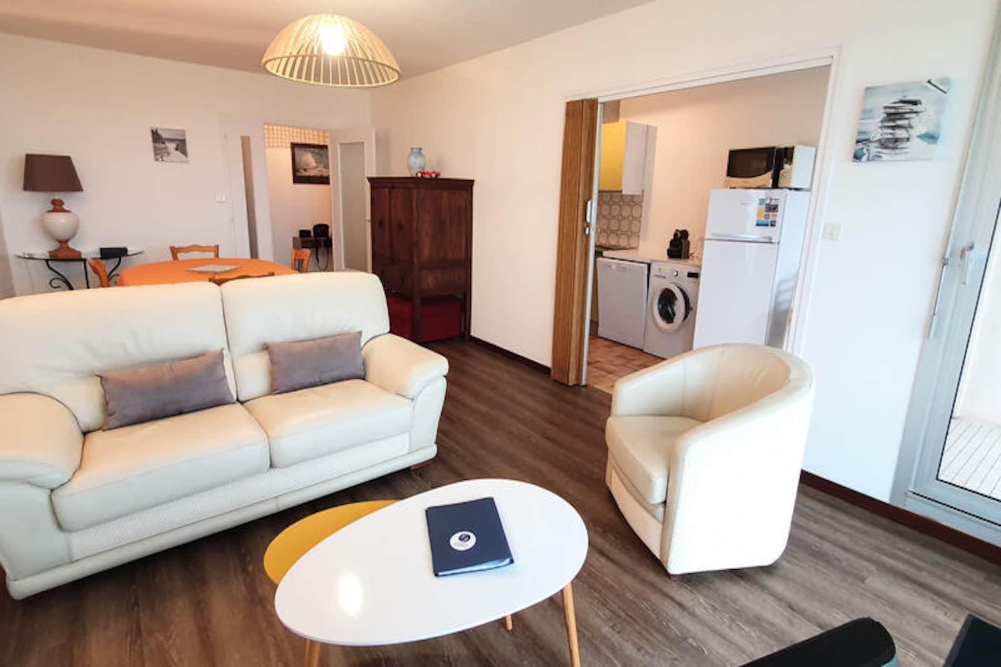 Awaken your senses to the soothing rhythm of the Atlantic Ocean at this charming apartment in the La Chaume district of Les Sables-d'Olonne. With panoramic sea views, a peaceful ambiance, and proximity to the town’s vibrant attractions, this retreat offers the perfect balance of relaxation and exploration. Imagine sipping your morning coffee on the balcony as you gaze at the Saint-Nicolas Priory, the Grand Jetty, and the endless blue horizon. This is coastal living at its finest. \n\nSpanning 73m², the apartment is designed with comfort and convenience in mind. The spacious living room, complete with a lounge and dining area, invites you to unwind while enjoying the mesmerizing sea views. The fully equipped kitchen, featuring modern appliances such as a dishwasher and washing machine, ensures a hassle-free stay. Two cozy bedrooms provide restful nights, with flexible bedding arrangements to suit your needs. A sleek bathroom with a bathtub and a separate toilet add to the apartment’s functionality. High-speed Orange Fiber Wi-Fi keeps you connected, while the private underground garage and shared bicycle storage offer practical solutions for your transportation needs.\n\nStep outside, and you’ll find yourself just 100 meters from the rugged beauty of the wild coast and the Pointe du Prieuré Saint Nicolas. A short stroll will take you to the lively Quai de la Chaume, bustling with shops and restaurants, or to the Dombret Basin, a natural swimming spot. The nearby ferry provides easy access to the town center and the Grand Beach, while a free bus service connects you to the train station, local markets, and more. \n\nWhether you’re seeking a romantic getaway, a family adventure, or a serene escape, this apartment in Les Sables-d'Olonne is your gateway to unforgettable coastal memories. Let the charm of La Chaume and the allure of the Atlantic make your holiday truly special.