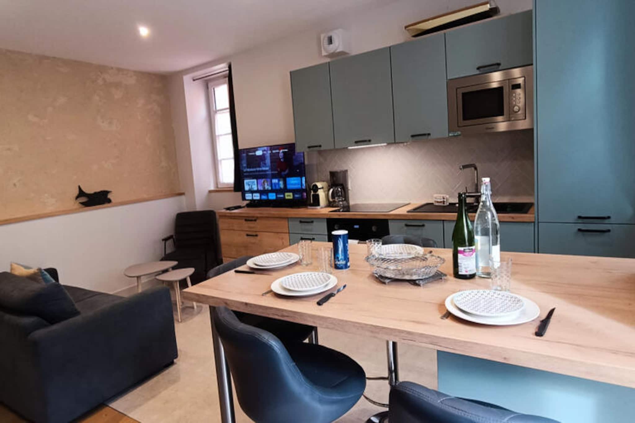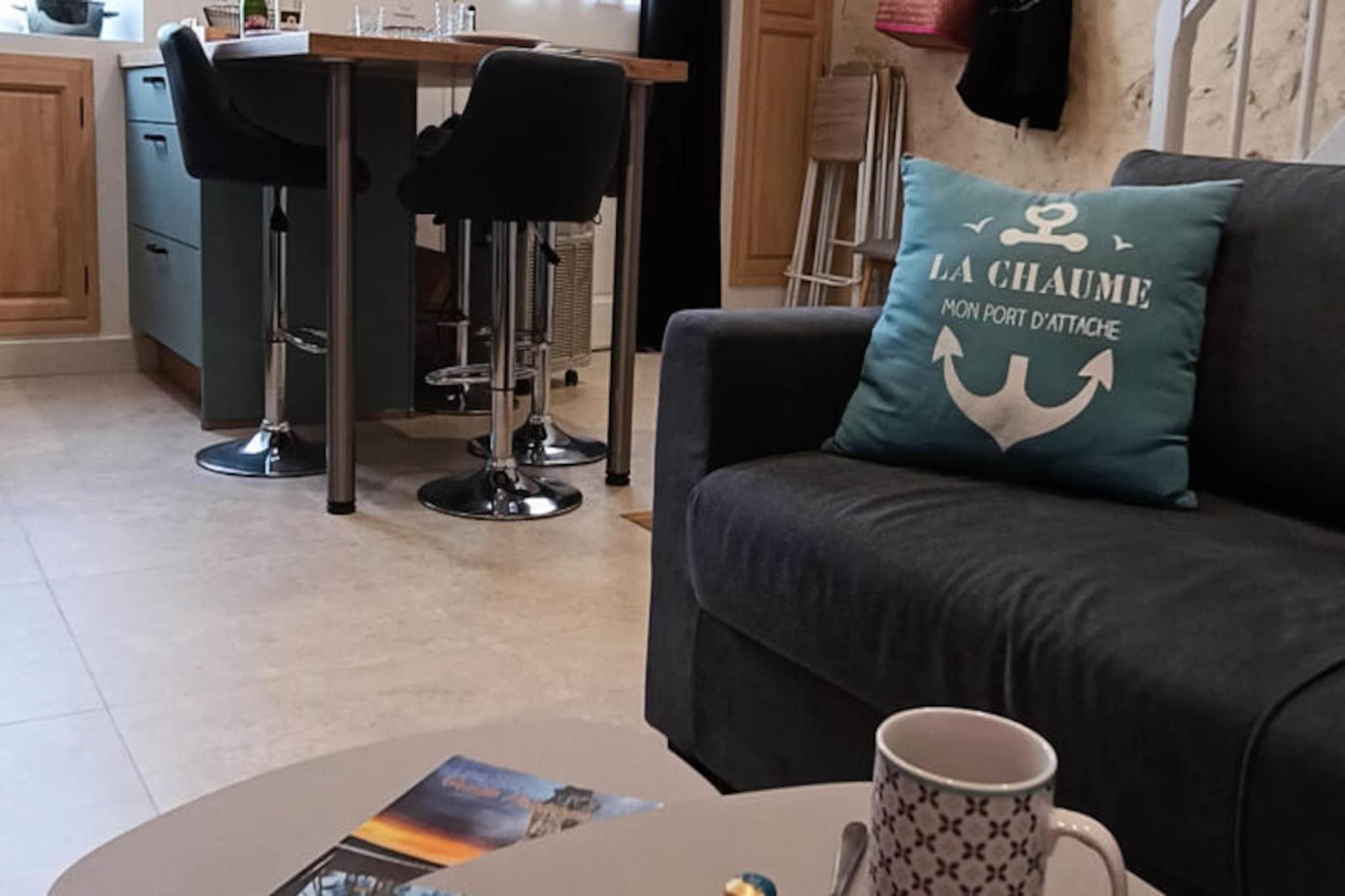 In the heart of La Chaume, the historic fishing district of Les Sables-d'Olonne, this charming 3-star stone cottage invites you to experience the perfect blend of coastal charm and modern comfort. Just steps from the legendary Vendée Globe Channel and surrounded by local shops, bakeries, and restaurants, this home is an ideal retreat for couples or small families seeking a relaxing seaside escape. With its prime location, you can enjoy the vibrant atmosphere of the town while still savoring the tranquility of this picturesque neighborhood. \n\nInside, the newly renovated cottage combines rustic character with contemporary amenities. The ground floor features a cozy living room with a TV, a dining area, and a fully equipped kitchen, along with a separate toilet. Upstairs, you’ll find two thoughtfully designed bedrooms: one with a comfortable 160x200cm bed, a desk, and a television, and another with bunk beds, perfect for children (note: the top bunk is not suitable for children under six). A modern bathroom connects the two bedrooms and includes a shower, washing machine, and toilet. High-speed fiber internet ensures a seamless teleworking experience, making this home as practical as it is charming.\n\nThe location is unbeatable. A private garage is available just 300 meters away, but with everything within walking distance, a car is hardly necessary. The nearby boat shuttle provides quick access to the main beach and the bustling town center, while a bike rental shop, just a 7-minute walk away, offers a fun way to explore the area. Les Sables-d'Olonne train station, served by the TGV, is only 4 km away, with convenient bus connections and optional transfer services available. \n\nWhether you’re here for a romantic getaway, a family holiday, or simply to soak up the coastal ambiance, this delightful cottage offers the perfect base for unforgettable memories. Contact us to personalize your stay with special touches like a romantic dinner or a relaxing massage.
