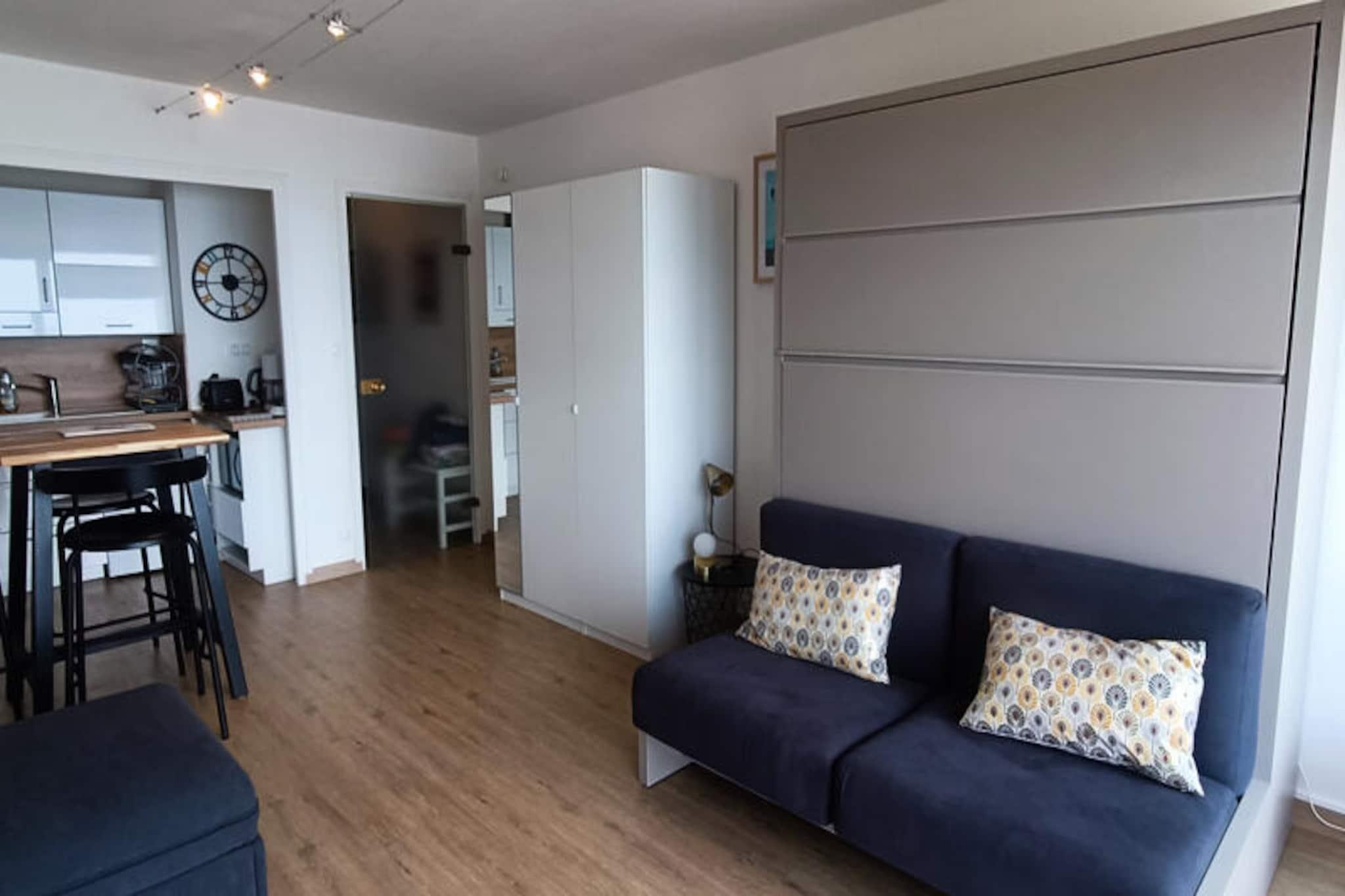 High above the shimmering waters of Les Sables-d’Olonne, this elegant studio apartment offers a front-row seat to one of the world’s most stunning bays. Located on the 8th floor of a well-maintained building, this retreat combines modern comfort with breathtaking views, making it the perfect choice for a romantic getaway or a peaceful escape. Imagine waking up to the sun rising over the ocean, stepping onto your private balcony, and feeling the gentle sea breeze as you sip your morning coffee. The embankment at the foot of the building invites you to stroll along the coastline and soak in the vibrant atmosphere of this charming seaside town. Inside, the apartment is thoughtfully designed to maximize space and comfort. The spacious 30m² layout includes an entrance hall for convenient storage, a bright living area with a newly installed Murphy bed that ensures restful nights, and a fully equipped kitchen with everything you need to prepare delicious meals. From ceramic hobs to a Senseo coffee maker, every detail has been considered to enhance your stay. For added flexibility, a convertible ottoman with a mattress topper provides a third sleeping option, making this studio ideal for couples or small families. Step outside and discover the delights of Les Sables-d’Olonne. The town center, bustling with shops and cafes, is just a short 10-minute walk away, while the famous Arago market and a Carrefour supermarket are even closer. Indulge in fresh pastries from the bakery next door or treat yourself to a refreshing ice cream from the parlor just steps away. In summer, the embankment comes alive with beachfront restaurants offering local specialties and stunning sunset views. Whether you’re here to celebrate a special occasion or simply unwind by the sea, this apartment offers a unique blend of comfort, convenience, and coastal charm. Let the beauty of Les Sables-d’Olonne inspire unforgettable memories during your stay.