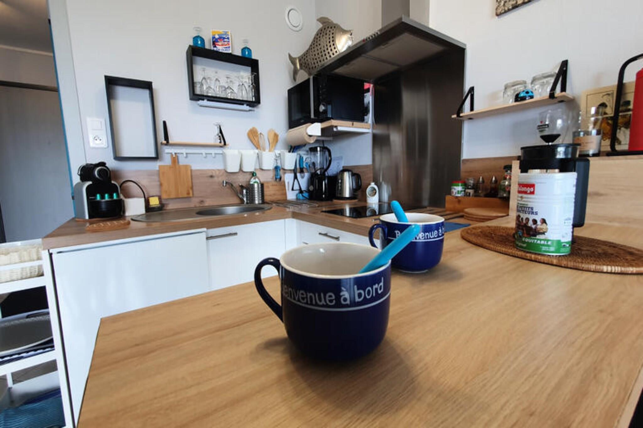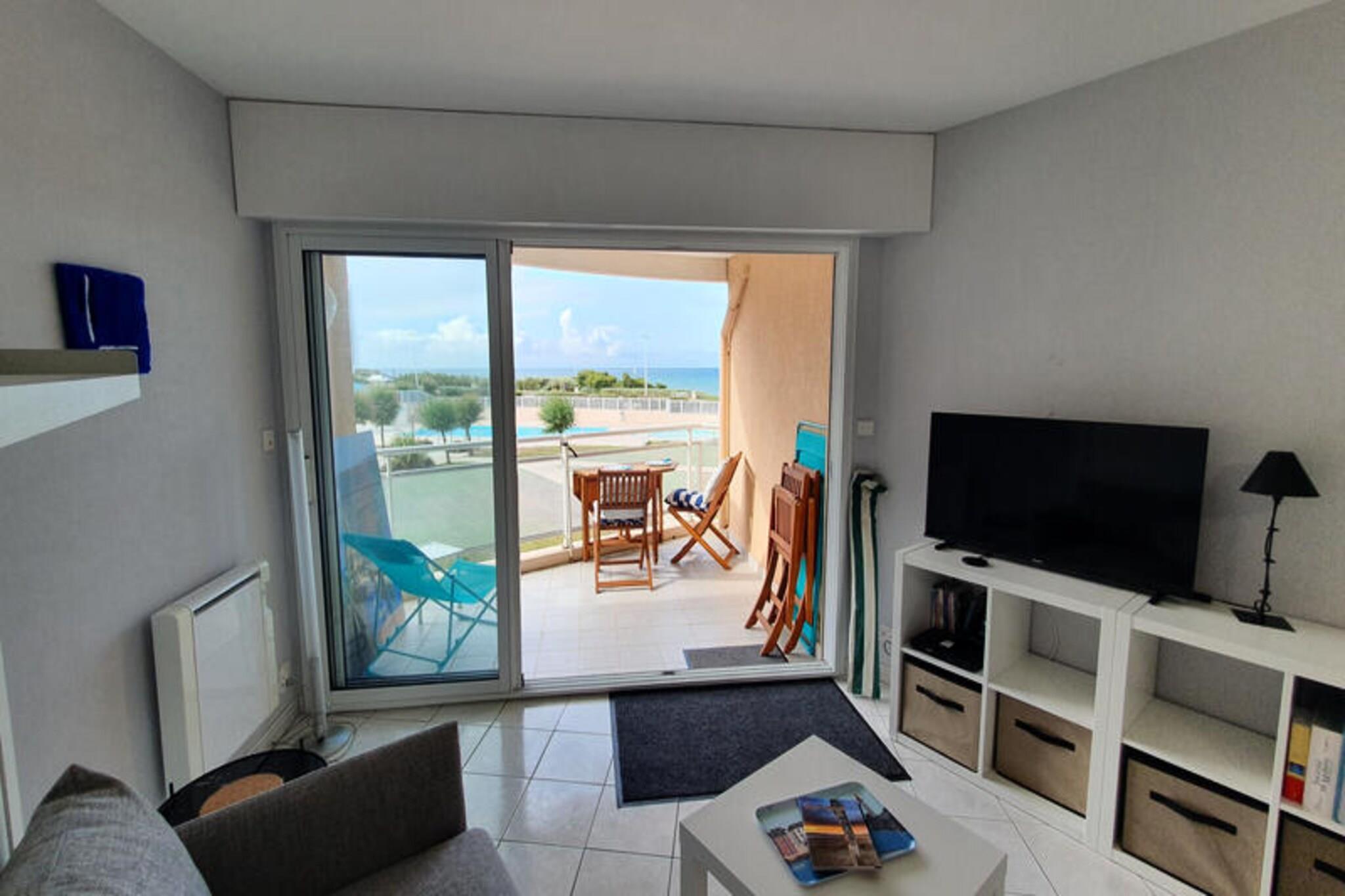 Wake up to the soothing sound of waves and breathtaking views of the Atlantic Ocean in this charming studio located in the historic La Chaume district of Les Sables d'Olonne. Perfectly situated on the wild coast, this property offers a serene retreat where the rugged beauty of the rocky shoreline meets the vibrant charm of a seaside town. Whether you're seeking a romantic getaway or a peaceful escape, this studio is your gateway to the best of coastal living. Located on the first floor of the Grand Bleu residence, the studio is thoughtfully designed to maximize comfort and practicality. The living space features a cozy Murphy bed (160x200 cm), a television, and a DVD player for your entertainment. The fully equipped kitchenette allows you to prepare meals with ease, while the balcony provides a tranquil spot to enjoy your morning coffee or a glass of wine as you take in the panoramic views of the ocean and the shared heated pool. Wi-Fi is available throughout the apartment, ensuring you stay connected during your stay. Step outside, and you'll find yourself just 60 meters from the ocean and its scenic pedestrian paths. The Ombret Basin, a natural swimming pool and beach, is only 650 meters away, while the lively quay with its shops and restaurants is an easy 850-meter stroll. For those looking to explore further, the main beach and a variety of activities are just 1 kilometer away, offering endless opportunities for adventure and relaxation. With its unbeatable location, modern amenities, and stunning views, this studio is the perfect choice for your next coastal escape. Whether you're exploring the historic streets of La Chaume, lounging by the pool, or walking along the wild coast, every moment here is sure to be unforgettable. Book your stay today and experience the magic of Les Sables d'Olonne.
