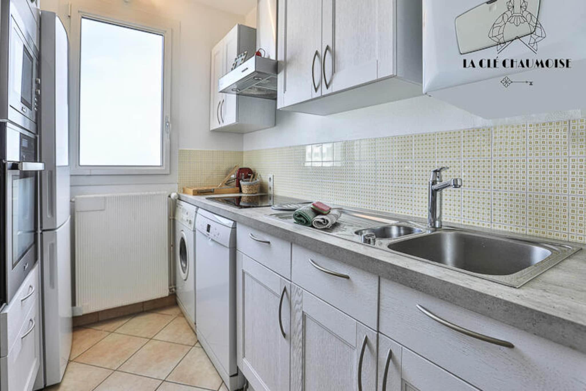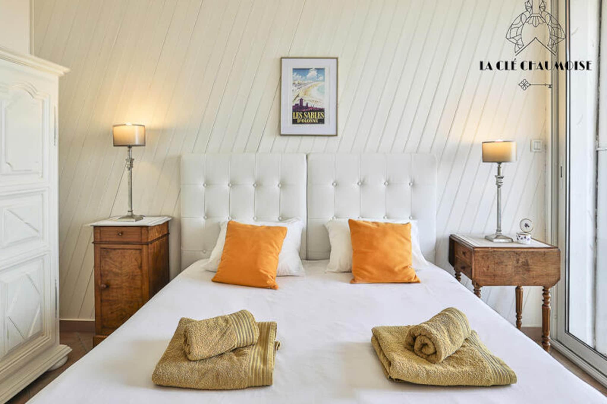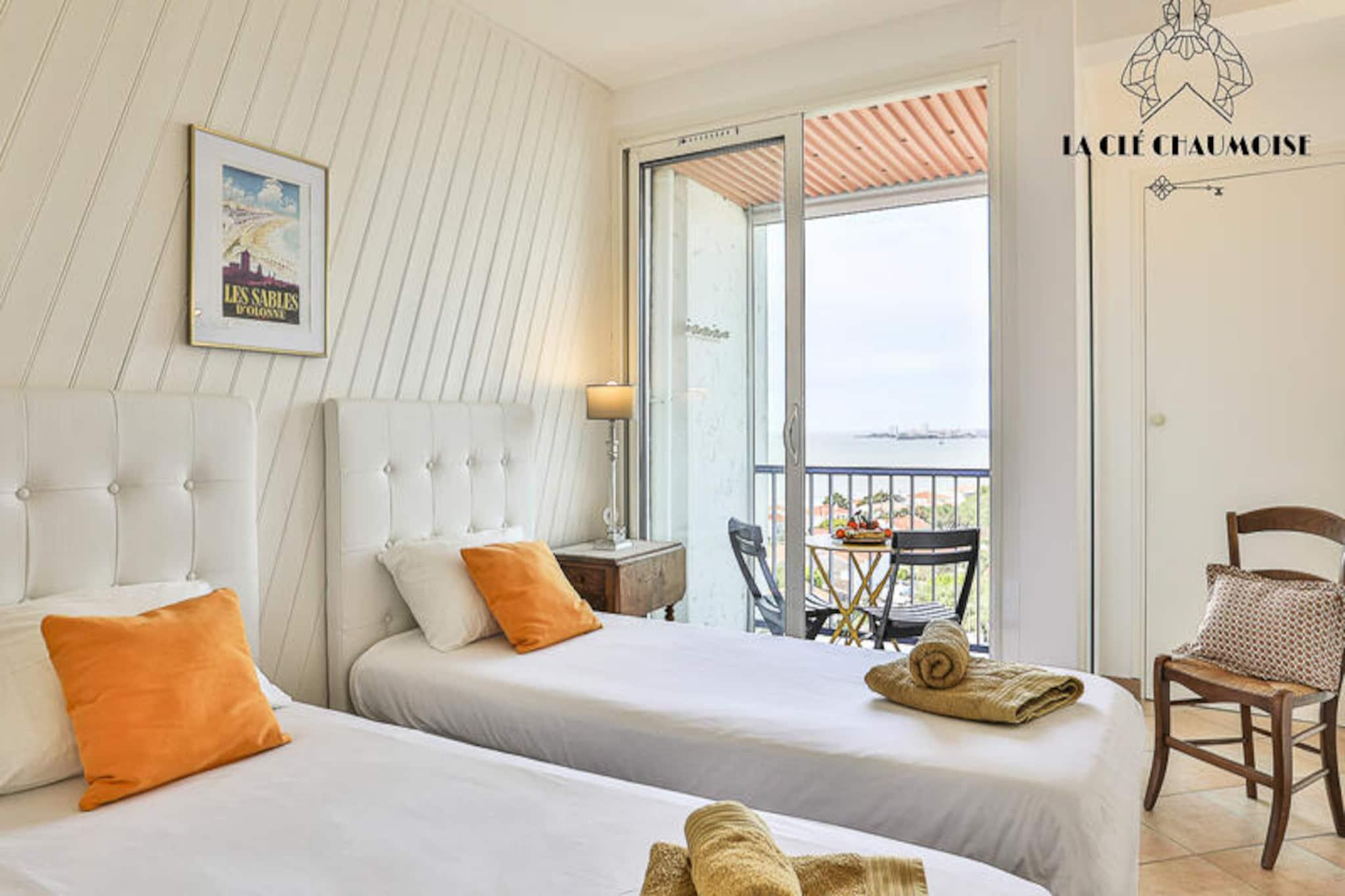 Perched on the 8th and top floor of a delightful residence, this 3-star apartment offers a serene retreat with breathtaking views of the bay of Les Sables d'Olonne. Whether you're traveling with family or friends, this 70m² haven is designed to provide a perfect blend of comfort and coastal charm. Just 500 meters from the golden sands of Tanchet Beach and its tranquil lake, you'll find yourself immersed in the natural beauty of the Vendée coastline. The nearby thalassotherapy center adds a touch of wellness to your stay, making it an ideal destination for relaxation and rejuvenation. Step inside to discover a thoughtfully designed space that caters to your every need. The apartment features a bright living and dining area that opens onto a balcony, where you can savor the stunning sea views over a morning coffee or an evening glass of wine. The fully equipped kitchen is a culinary enthusiast's dream, complete with modern appliances such as a refrigerator-freezer, dishwasher, washer-dryer, oven, microwave, and more. The sleeping arrangements are equally inviting, with one bedroom overlooking the serene pine forest and another offering a sea-facing balcony and two electric single beds that can be joined for added flexibility. A bathroom with a bathtub and a separate toilet ensure convenience for all guests. For those blending work and leisure, the office area provides a quiet space with inspiring ocean views. The residence offers practical amenities, including an outdoor parking space and a private cellar for storing bicycles, perfect for exploring the scenic surroundings. The concierge service ensures a smooth check-in and check-out experience, and optional extras like linens and towels can be arranged for your convenience. With its unbeatable location near the beach, lake, and wellness facilities, this apartment invites you to unwind and create lasting memories. Whether you're soaking in the panoramic views, cycling along coastal trails, or indulging in local seafood delicacies, your stay promises to be as relaxing as it is unforgettable.