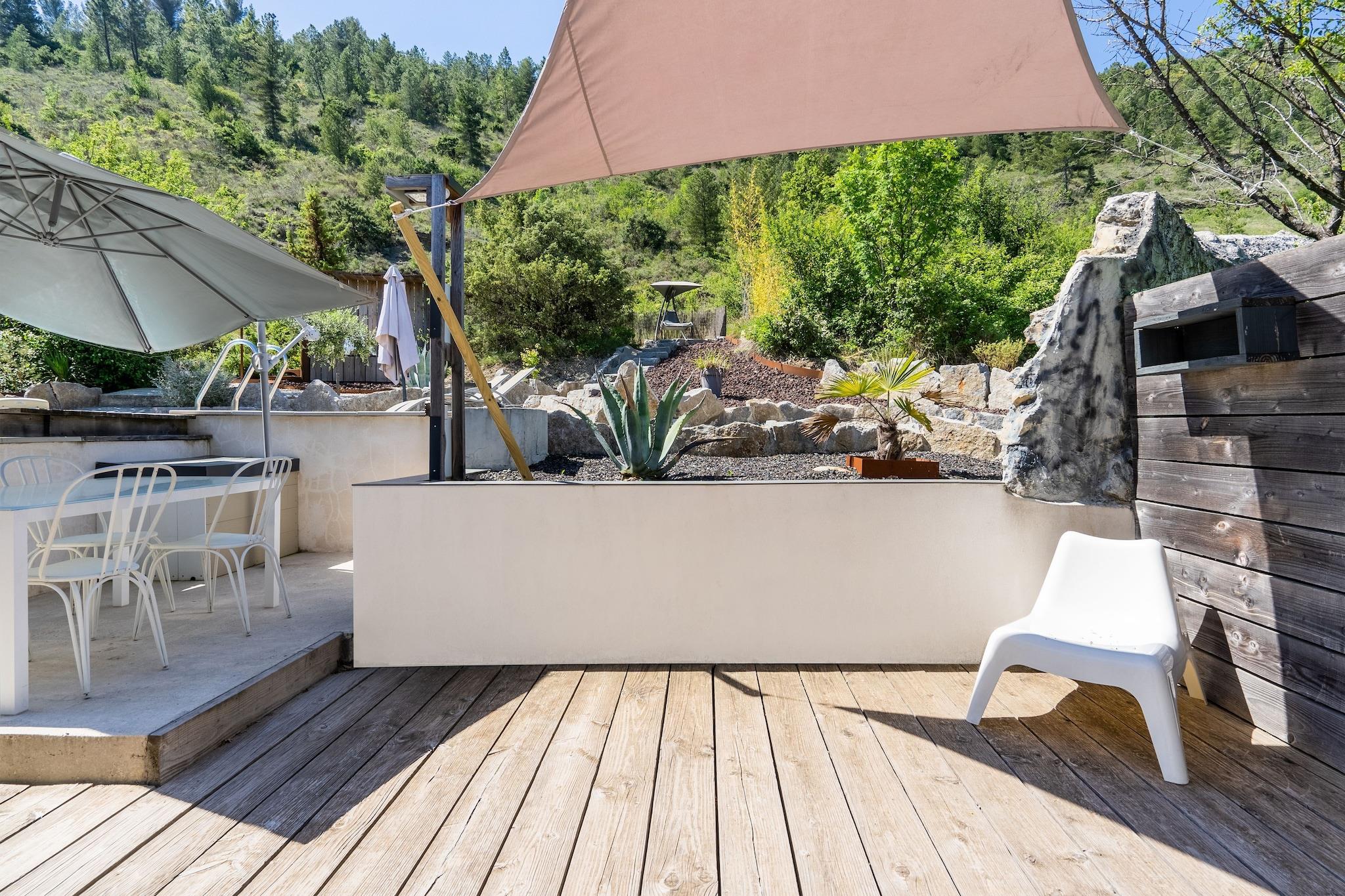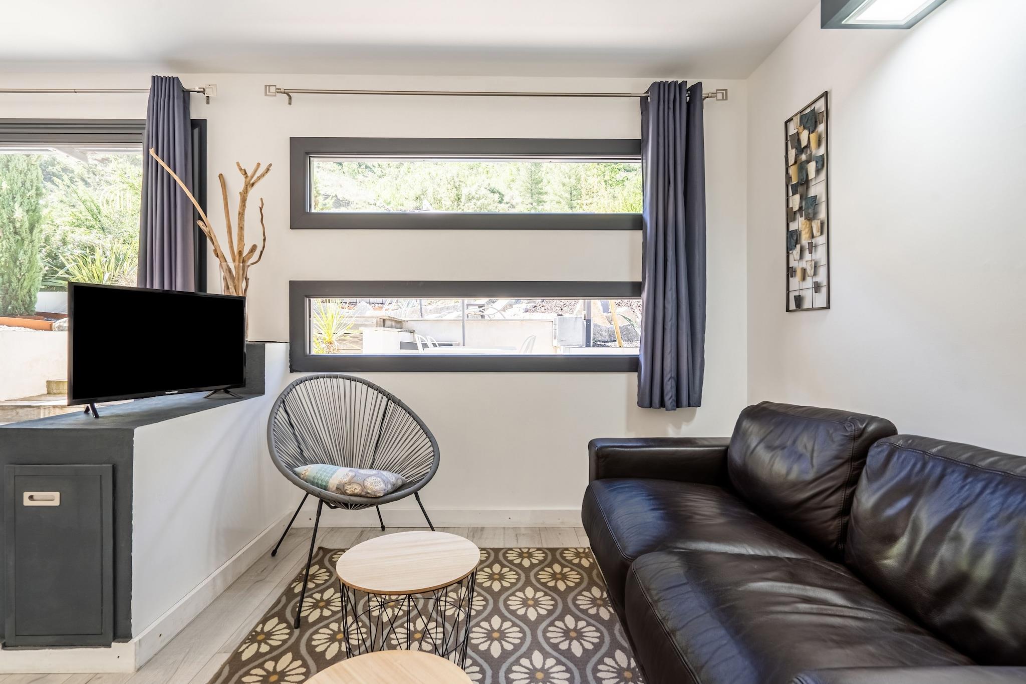 This charming adults-only villa for 4 guests is tucked just 2 km from Les Vans Centre, offering a peaceful holiday with a private pool, panoramic terrace, and bright, air-conditioned living spaces. The south-facing layout fills the home with light, while the terrace—with stone barbecue and garden furniture—makes it ideal for relaxed meals and poolside lounging. Les Vans itself bustles with life in the summer, its narrow streets revealing 16th-century gables, inviting restaurants, and local entertainment. For adventure seekers, the nearby Gorges du Chassezac offers fishing, climbing, and even paragliding. Tennis courts are close by (2 km), while those wanting to explore further can visit the scenic lake (25 km) or enjoy a round at the golf course (27 km). Only infants under 1 year are allowed. No children or teenagers aged 1–17 are permitted. Whether you’re diving into nature or unwinding under the stars, this villa balances quiet comfort with outdoor excitement. Essentials like groceries and restaurants are easily accessible, and the combination of privacy and proximity makes it an ideal base in the heart of Ardèche.