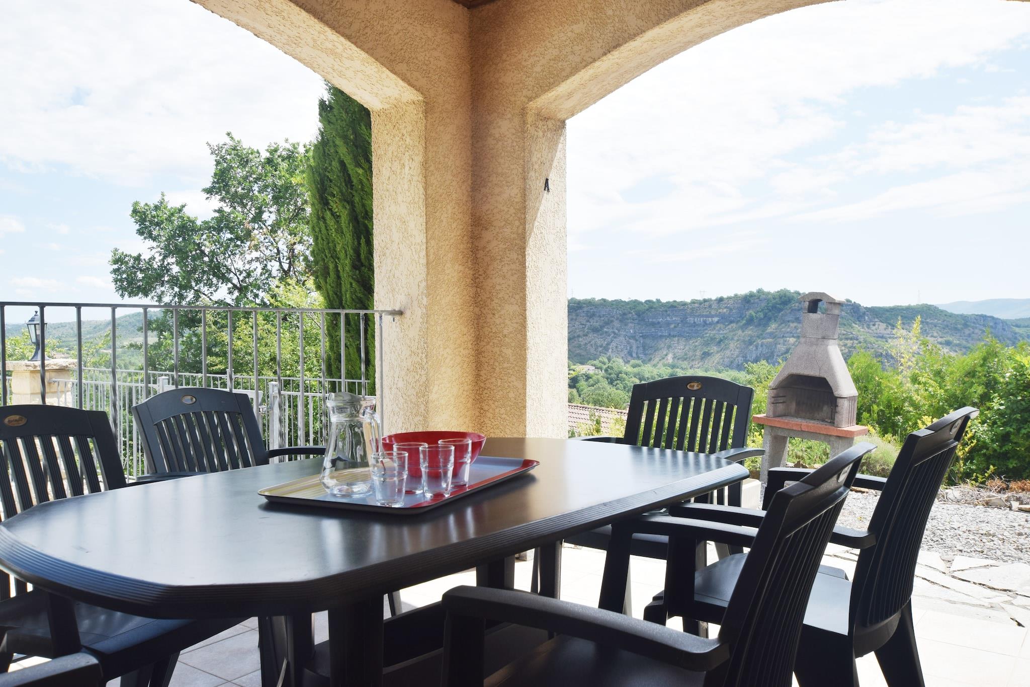 This 4-bedroom holiday home in Chassagnes, just 2 km from Les Vans Centre, is ideal for families or groups of up to 12 guests. It features a private fenced pool (10×4 m), a lush garden with mountain views, and a terrace with a barbecue and sun loungers. Indoors, you'll find two kitchens, two living/dining rooms with TVs and radios, and bedrooms with double and bunk beds. Baby essentials like a cot and high chair are provided free of charge, and there's air conditioning, electric heating, and private parking. Nature lovers can explore the nearby Gorges de l’Ardèche, chestnut forests, and rivers—perfect for hiking, canoeing, kayaking, and fishing. Water sports and the river are just 1 km away, while tennis courts are 5 km from the villa. Les Vans offers charming squares, markets, and restaurants like La Récré, Don Camillo, and Côté Jardin, all within 2 km. The nearest airport, Aérodrome Aubenas Ardèche Méridionale, is 29.3 km away. With scenic surroundings and easy access to outdoor adventures, this villa is a comfortable and well-equipped base for a memorable Ardèche getaway.