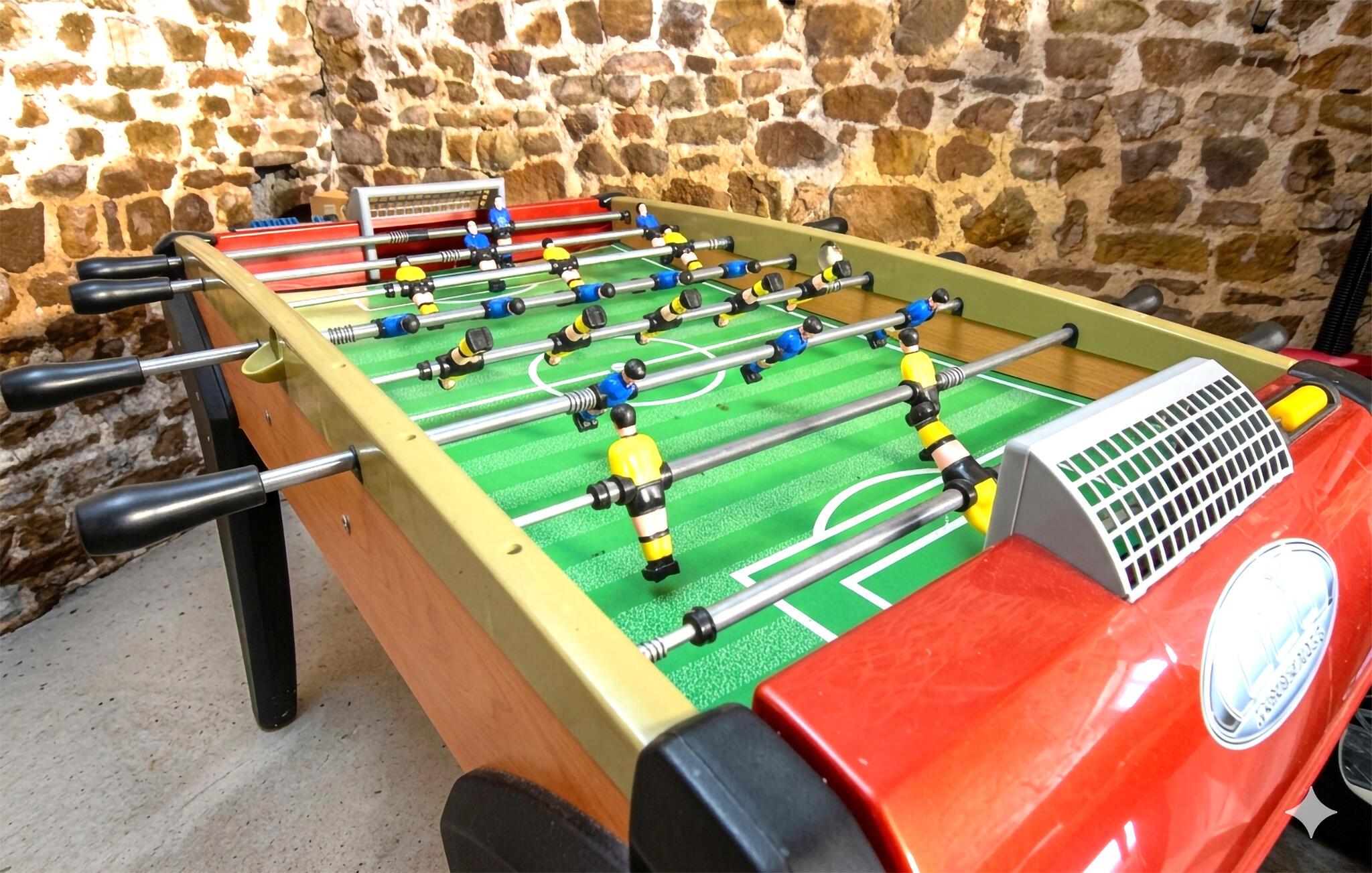 Dieses ehemalige Gehöft liegt inmitten einer ruhigen Landschaft und ist ideal für Familien oder Freunde, die Erholung in der Natur suchen. Verbringen Sie entspannte Stunden beim Plaudern und Kaffeetrinken auf der herrschaftlich anmutende Sitzgruppe und kommen Sie langsam in den Urlaubsmodus. Wenn Sie Lust auf sportliche Betätigung haben, werden Tischfußball, Darts und Airhockey für gute Laune und Lachen sorgen.