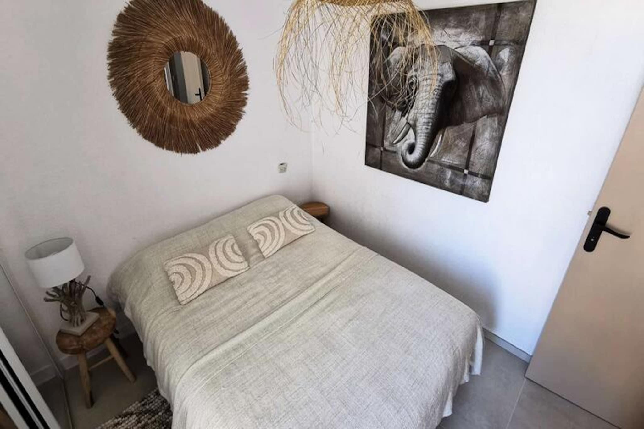 Overlooking the serene marina, this charming two-room apartment offers a delightful retreat for up to four guests. With its west-facing orientation, you can bask in the golden hues of the setting sun as you unwind in the comfort of your private space. The tranquil atmosphere of the marina, combined with the gentle sea breeze, creates the perfect backdrop for a relaxing getaway. Whether you're planning a romantic escape or a small family holiday, this apartment promises a cozy and memorable stay. Inside, the apartment is thoughtfully designed to maximize comfort and functionality. The living room features a comfortable double sofa bed, while the separate bedroom offers a plush double bed for restful nights. The well-equipped kitchen includes an electric stovetop, mini-oven, microwave, refrigerator-freezer, and even a washing machine, ensuring all the conveniences of home. With air conditioning and a TV, your stay will be as comfortable as it is enjoyable. The 38 m² space is perfectly suited for a relaxing holiday by the sea. Located just 600 meters from the beach and a mere 200 meters from the town center, the apartment offers the best of both worlds: easy access to sandy shores and vibrant local life. Enjoy leisurely strolls along the marina, explore charming shops, or indulge in delicious regional cuisine at nearby restaurants. For added convenience, the property includes a private, gated parking space, ensuring peace of mind throughout your stay. Whether you're drawn by the allure of the Mediterranean or the charm of the marina, this apartment is your gateway to an unforgettable holiday experience. Let the beauty of the coast and the comfort of this inviting retreat create lasting memories for you and your loved ones.