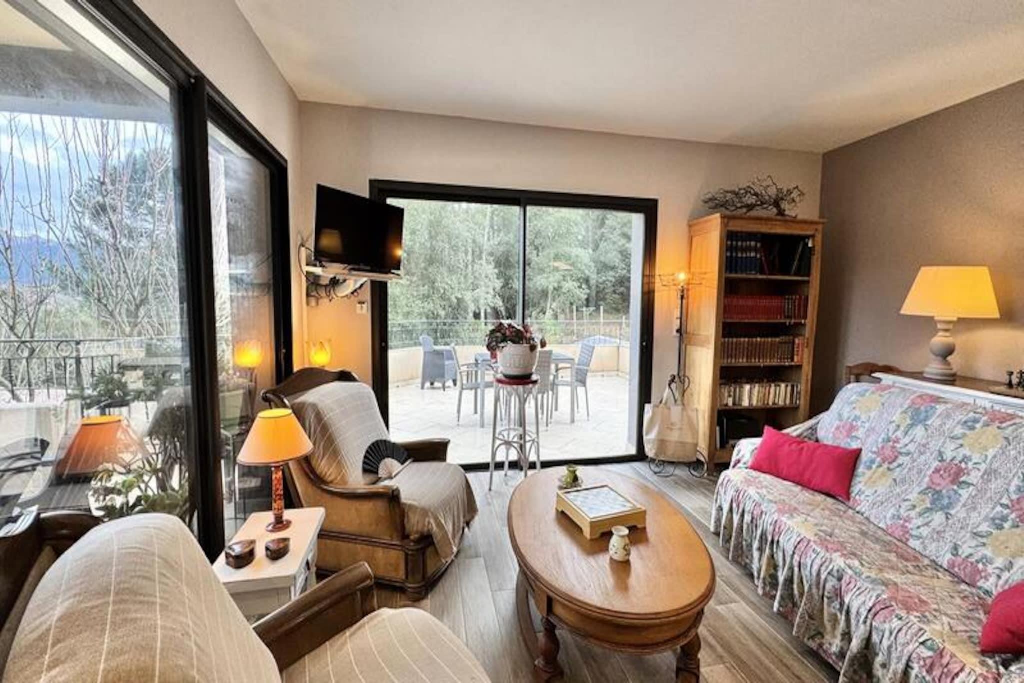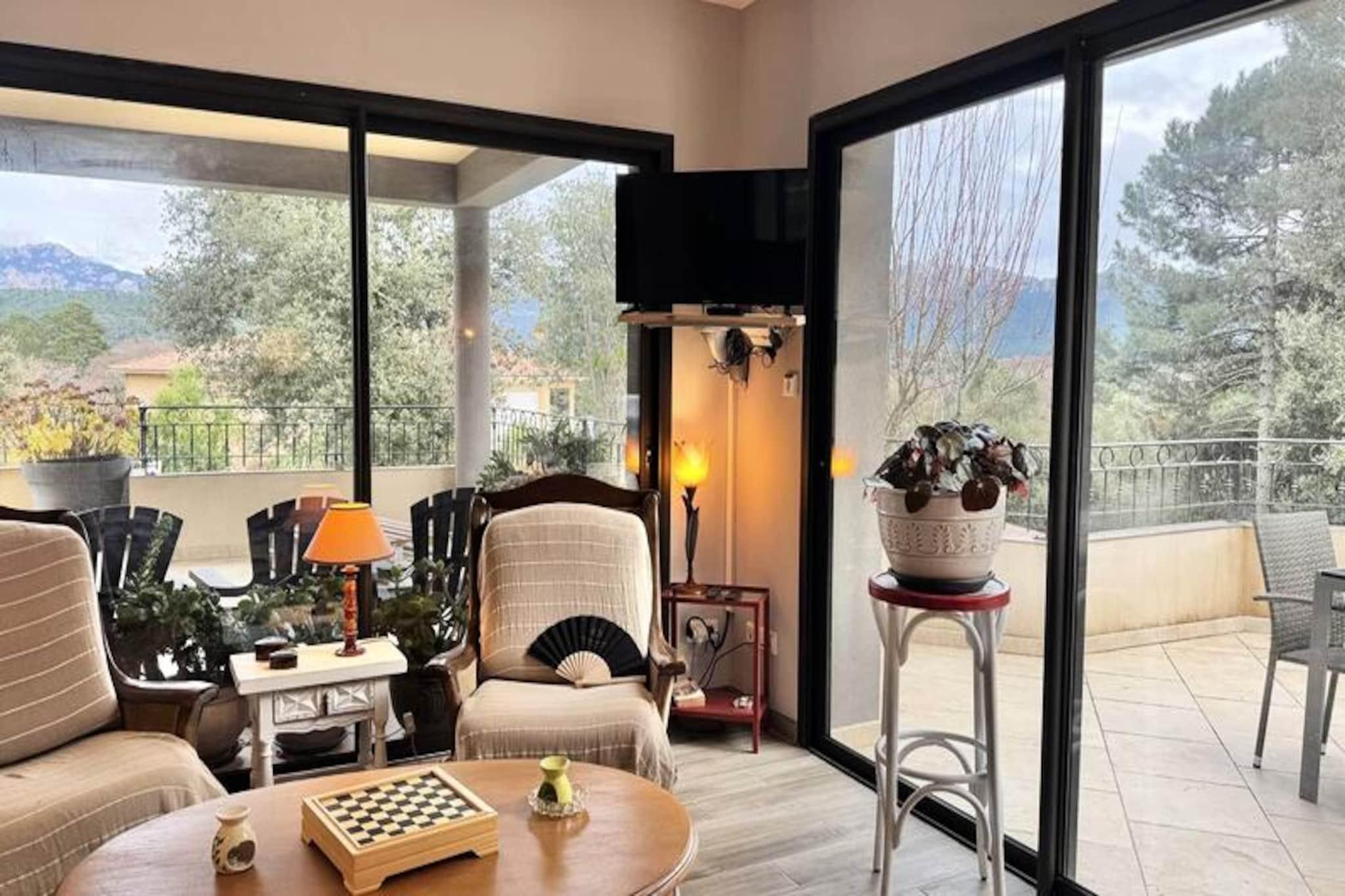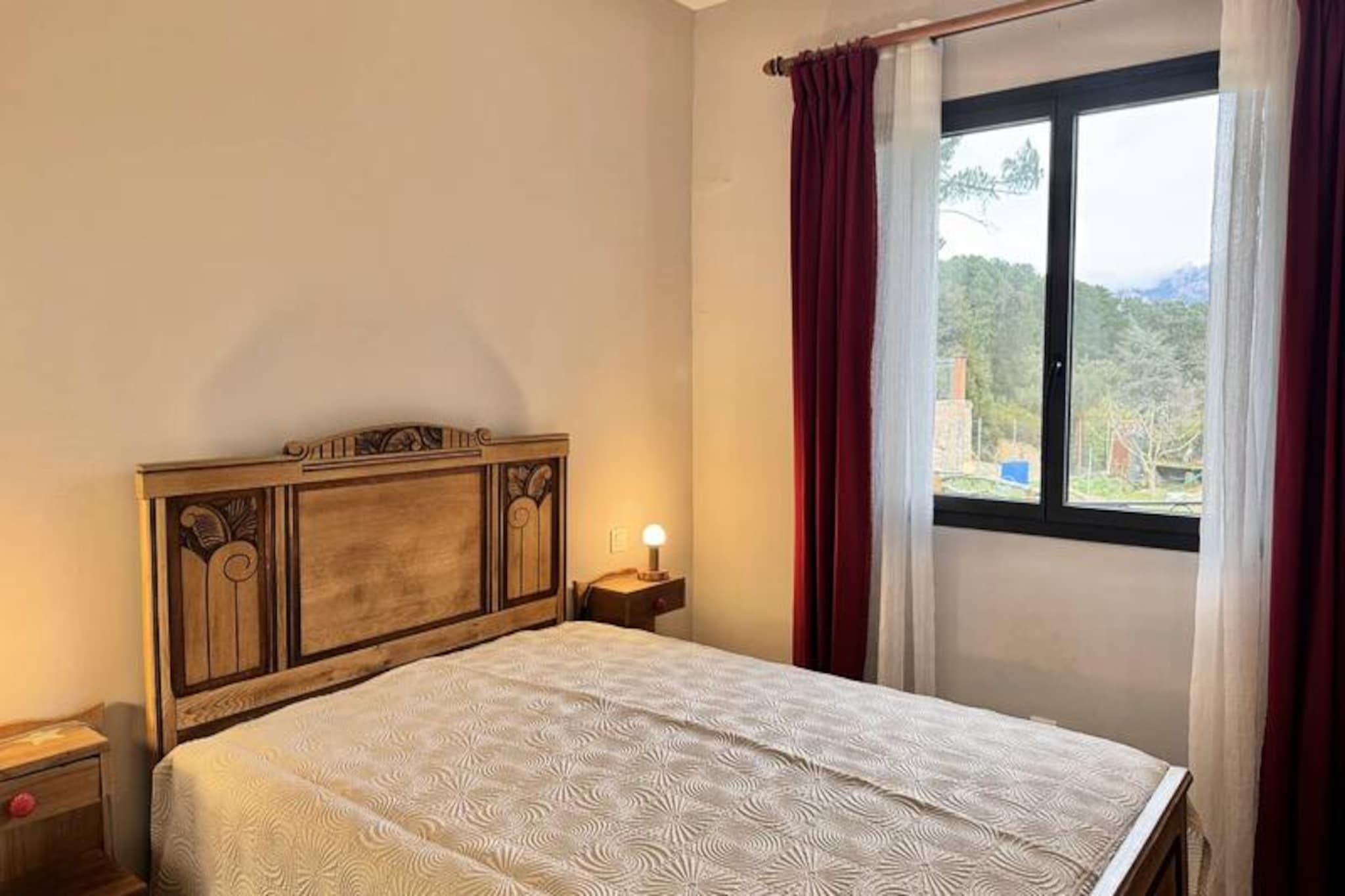 Amidst a lush landscape of greenery and majestic mountains, this delightful village house offers a tranquil retreat for those seeking peace and rejuvenation. Tucked away in a serene setting yet conveniently close to the renowned Cucuruzzu-Capula archaeological site, it perfectly balances seclusion with accessibility. Here, the beauty of nature surrounds you, inviting you to unwind and reconnect in an idyllic environment. Designed to host up to four guests, the house is bright and welcoming, featuring a spacious living room with panoramic mountain views that will take your breath away. Two cozy bedrooms with double beds (140 cm) ensure restful nights, while a modern bathroom and separate toilet add to the convenience. The property is equipped with all the essentials, including air conditioning, high-speed fiber optic Wi-Fi, and private parking, ensuring a comfortable and connected stay. Step outside to discover two expansive furnished terraces, ideal for savoring meals al fresco with the barbecue or simply soaking up the serene atmosphere. The outdoor spaces are perfect for relaxing moments, whether you're enjoying the crisp mountain air or gazing at the starry night sky. Nature enthusiasts will love the proximity to hiking trails, offering endless opportunities for exploration and adventure. Whether you're planning a peaceful family getaway or a memorable trip with friends, this house is the perfect base to recharge and immerse yourself in the beauty of the Corsican mountains. Pets are welcome under certain conditions, so feel free to bring your furry companions along. Don’t miss the chance to experience this haven of tranquility. Book your stay now and treat yourself to an unforgettable escape in this corner of paradise.