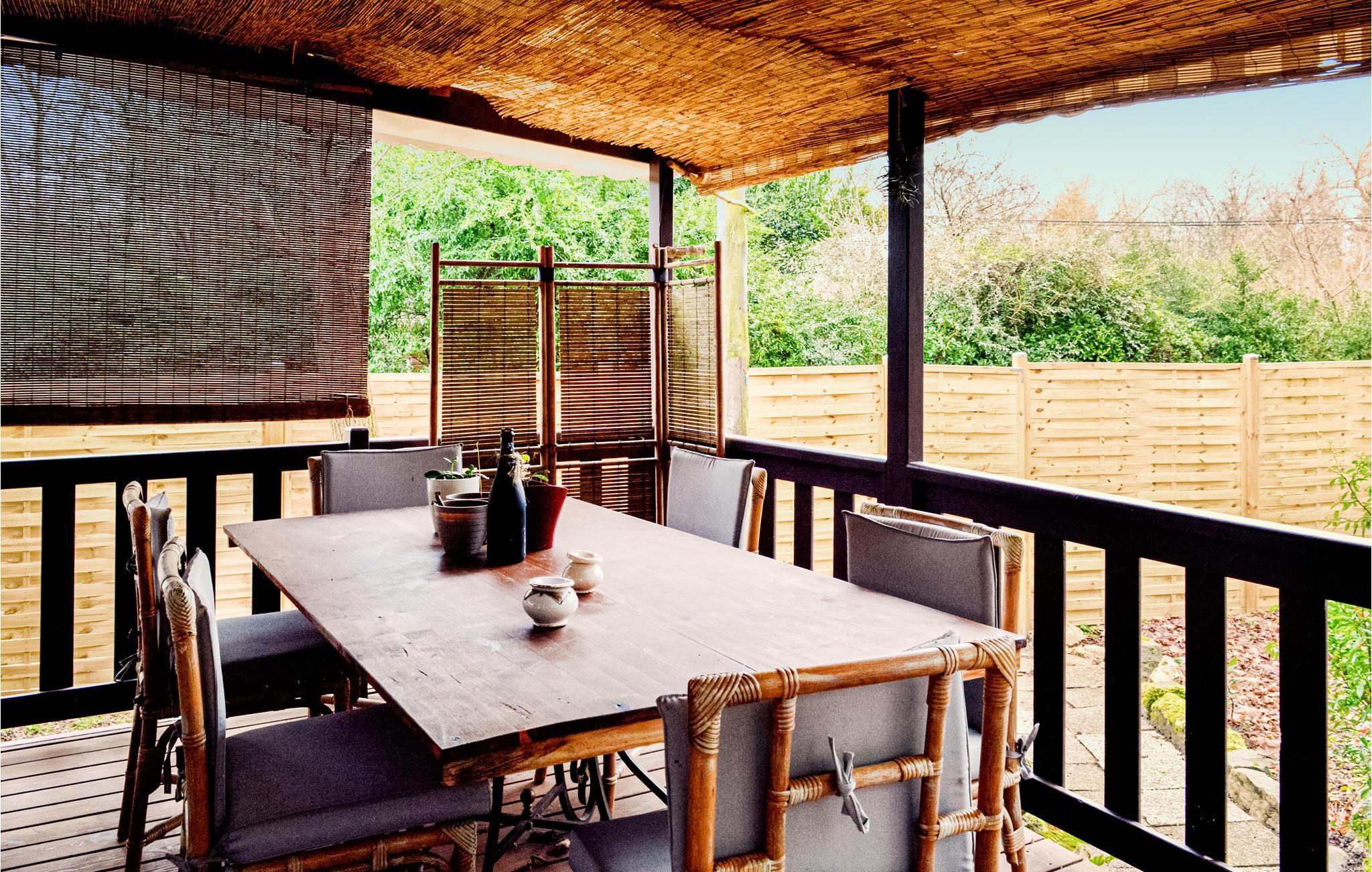 Auf Ihrer schönen Veranda können Sie bei einem ausgedehnten Frühstück die frische Waldluft genießen. Lassen Sie die Kinder im eingezäunten Garten spielerisch die Natur erkunden und gönnen Sie sich bei einem stimmungsvollen Grillabend ein Glas Wein.